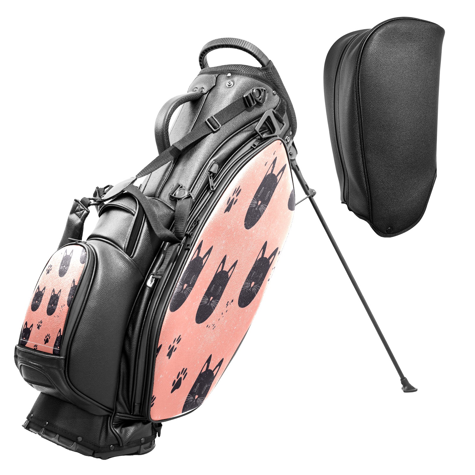 Lightweight Golf Stand Bag - 5-Way Top Divider, Golf Club Carry Bag with Adjustable Double Shoulder Straps, Zipper Storage Pockets + Rain Cover, Ideal for Golfers Black Cat Pattern