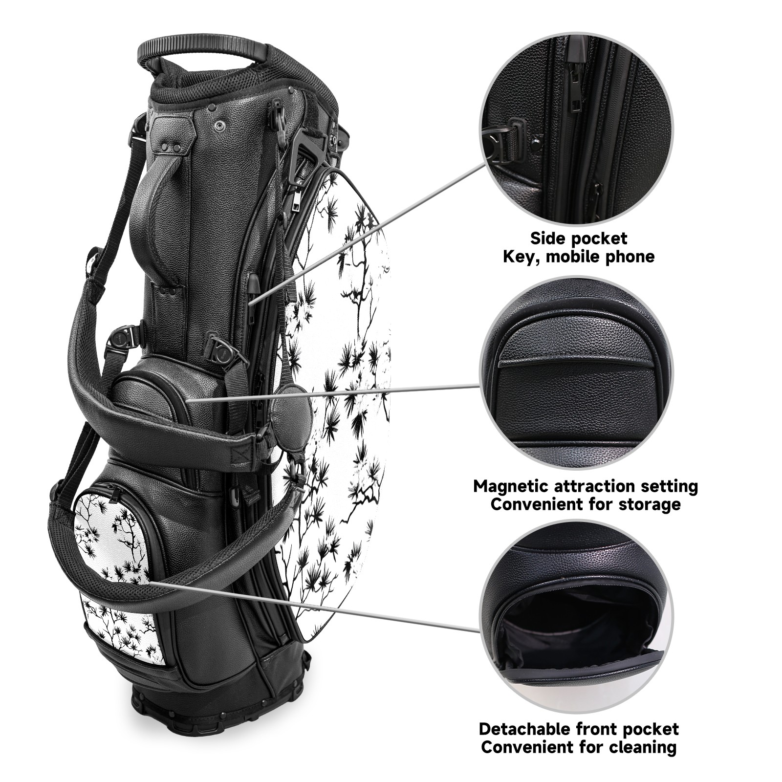 Lightweight Golf Stand Bag - 5-Way Top Divider, Golf Club Carry Bag with Adjustable Double Shoulder Straps, Zipper Storage Pockets + Rain Cover, Ideal for Golfers Black Branch Pattern