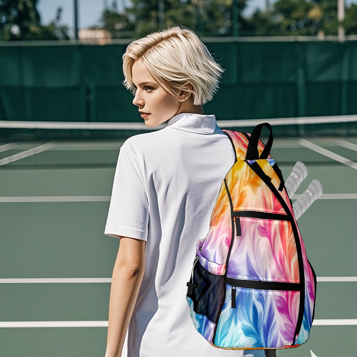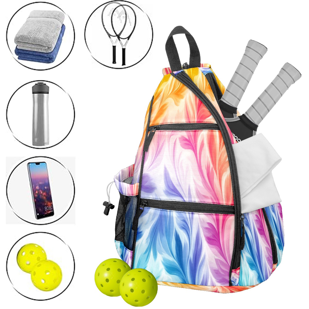 Counullo Pickleball Bag for Women & Men – Lightweight Sports Backpack with Paddle Compartments, Dual Carry Modes, Detachable Zippered Strap, Fluffy Rainbow, Perfect Gift for Players