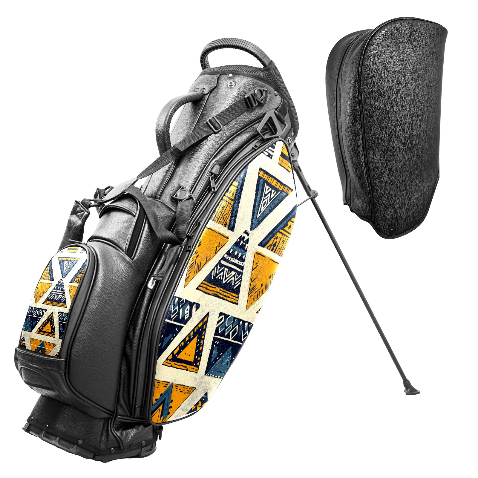 Lightweight Golf Stand Bag - 5-Way Top Divider, Golf Club Carry Bag with Adjustable Double Shoulder Straps, Zipper Storage Pockets + Rain Cover, Ideal for Golfers Yellow Triangle Pattern