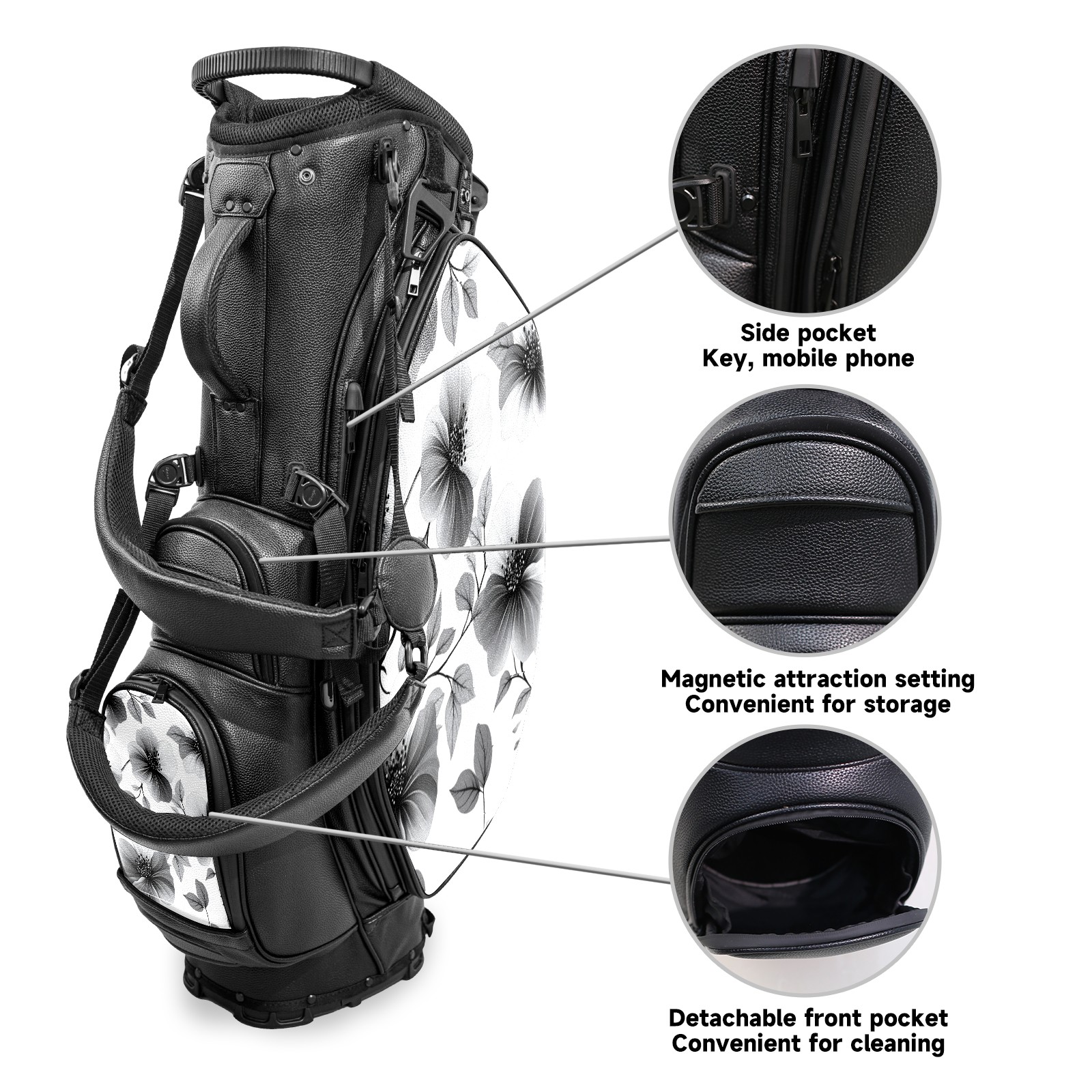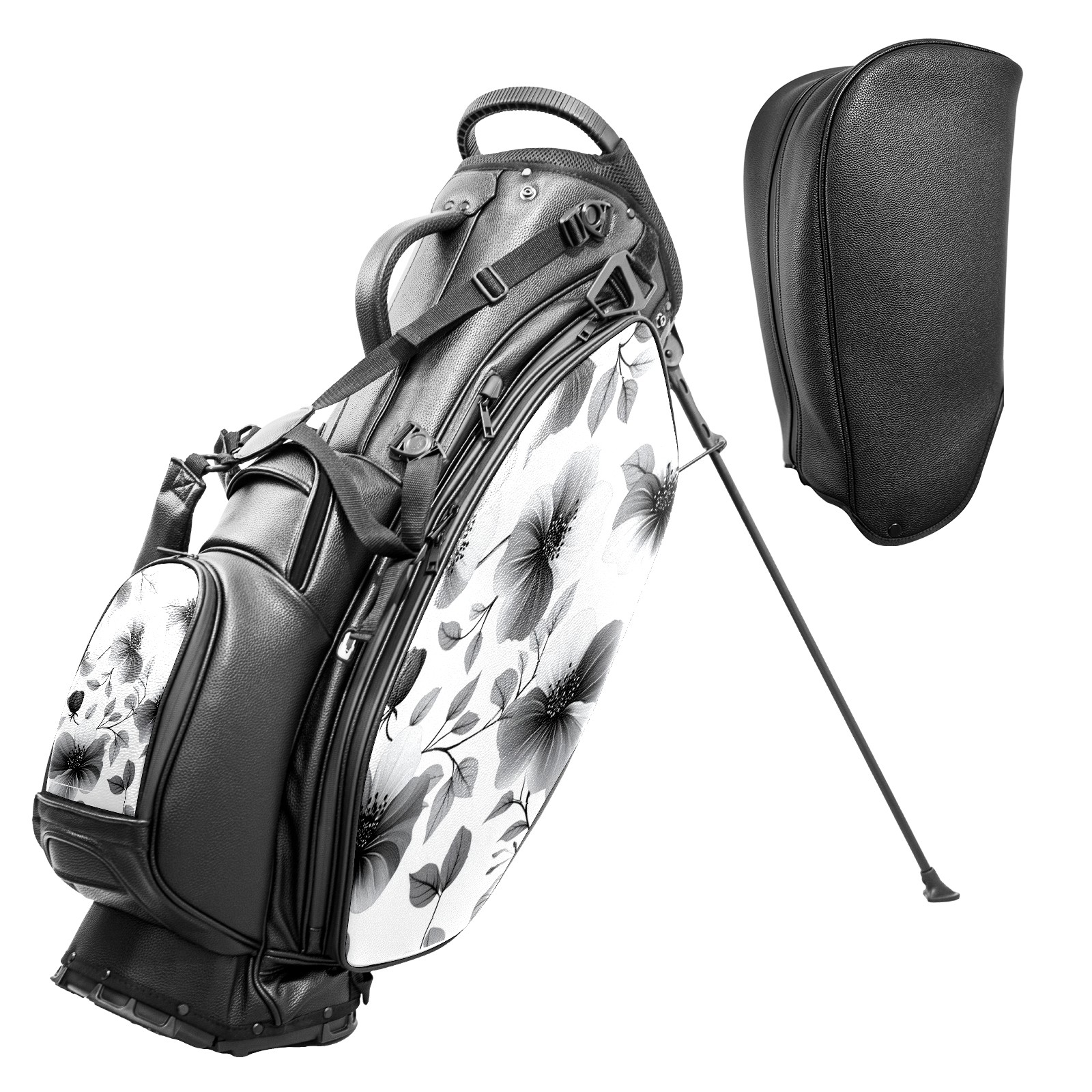 Lightweight Golf Stand Bag - 5-Way Top Divider, Golf Club Carry Bag with Adjustable Double Shoulder Straps, Zipper Storage Pockets + Rain Cover, Ideal for Golfers Black Flower Pattern