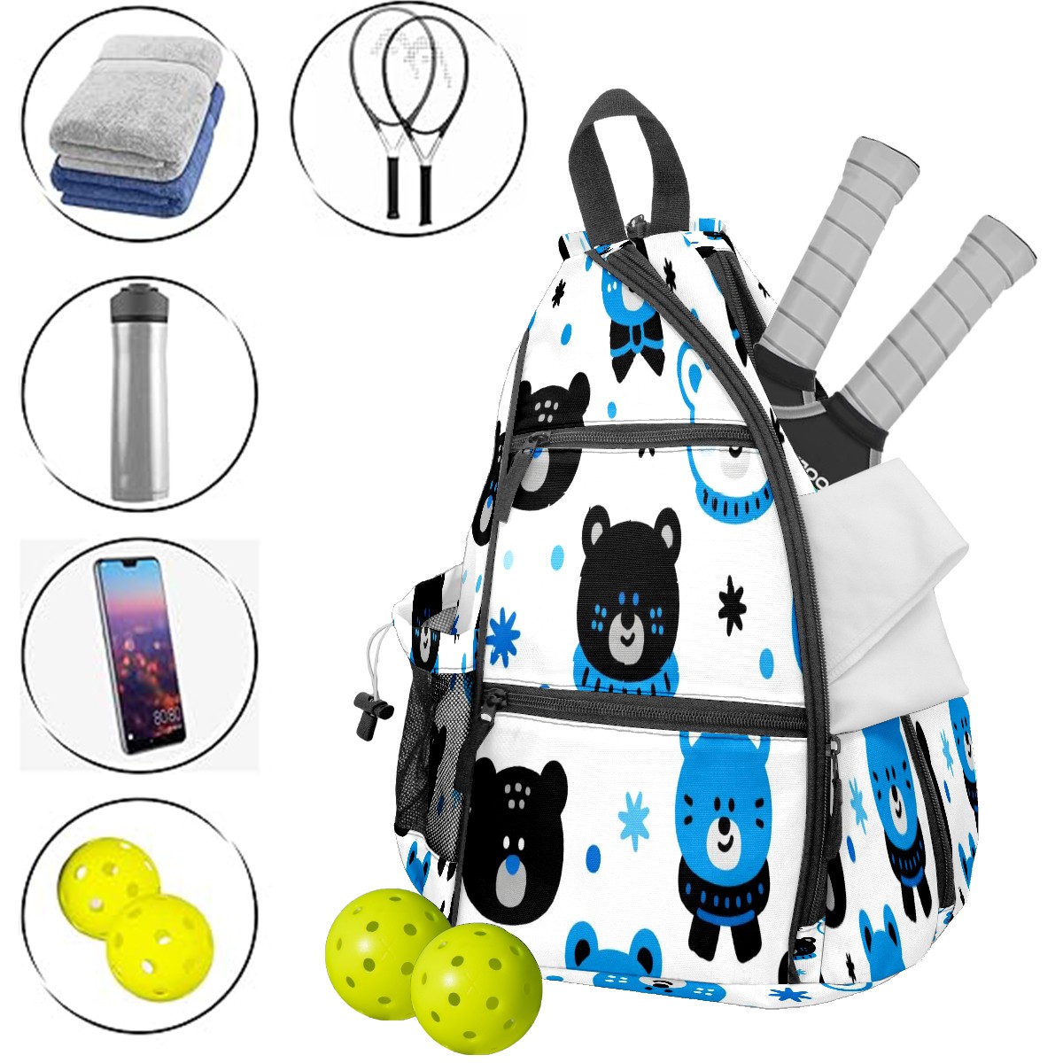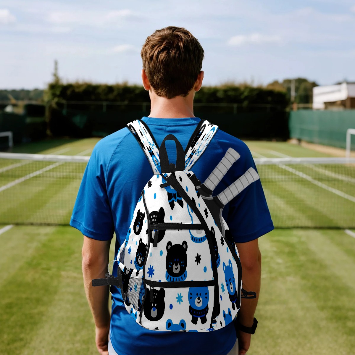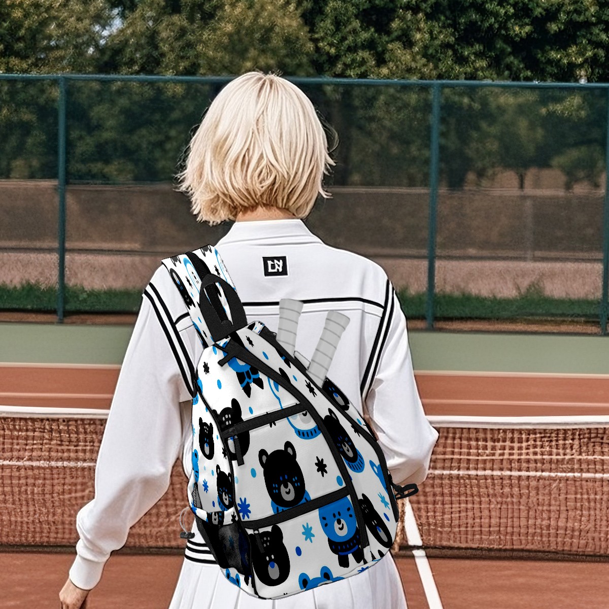 Counullo Pickleball Bag for Women & Men – Lightweight Sports Backpack with Paddle Compartments, Dual Carry Modes, Detachable Zippered Strap, Blue Bear, Perfect Gift for Players