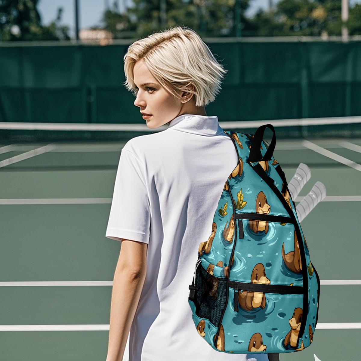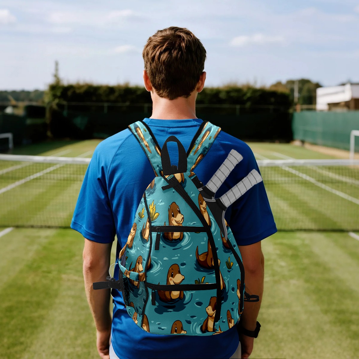 Counullo Pickleball Bag for Women & Men – Lightweight Sports Backpack with Paddle Compartments, Dual Carry Modes, Detachable Zippered Strap, Sky Blue Platypus, Perfect Gift for Players