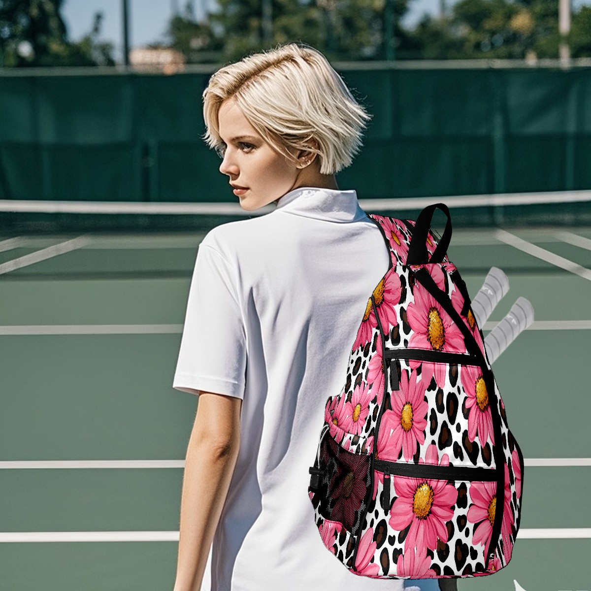 Counullo Pickleball Bag for Women & Men – Lightweight Sports Backpack with Paddle Compartments, Dual Carry Modes, Detachable Zippered Strap, Flower Pink, Perfect Gift for Players