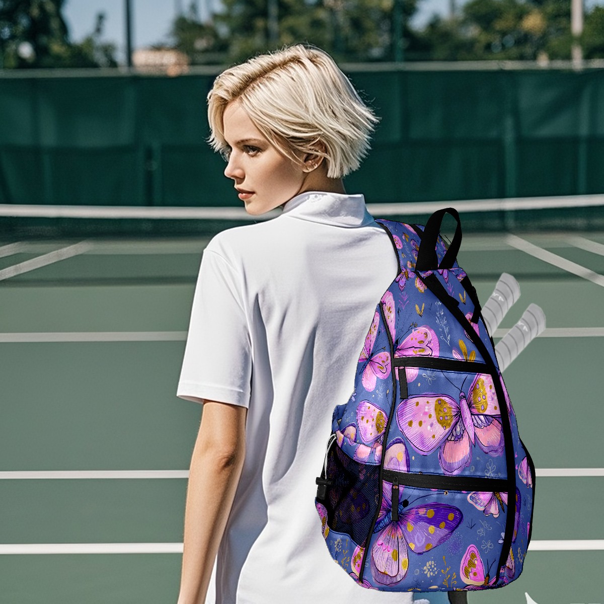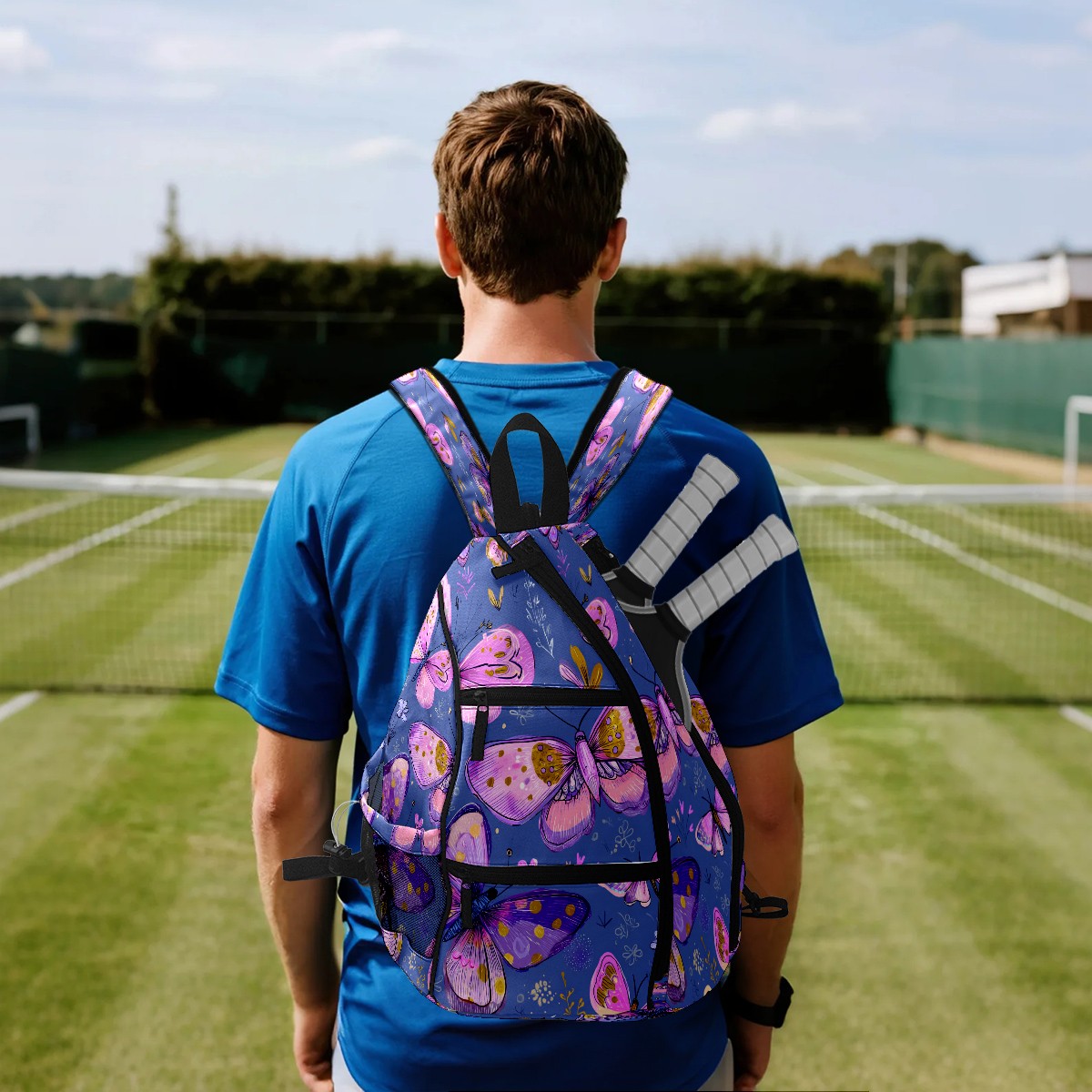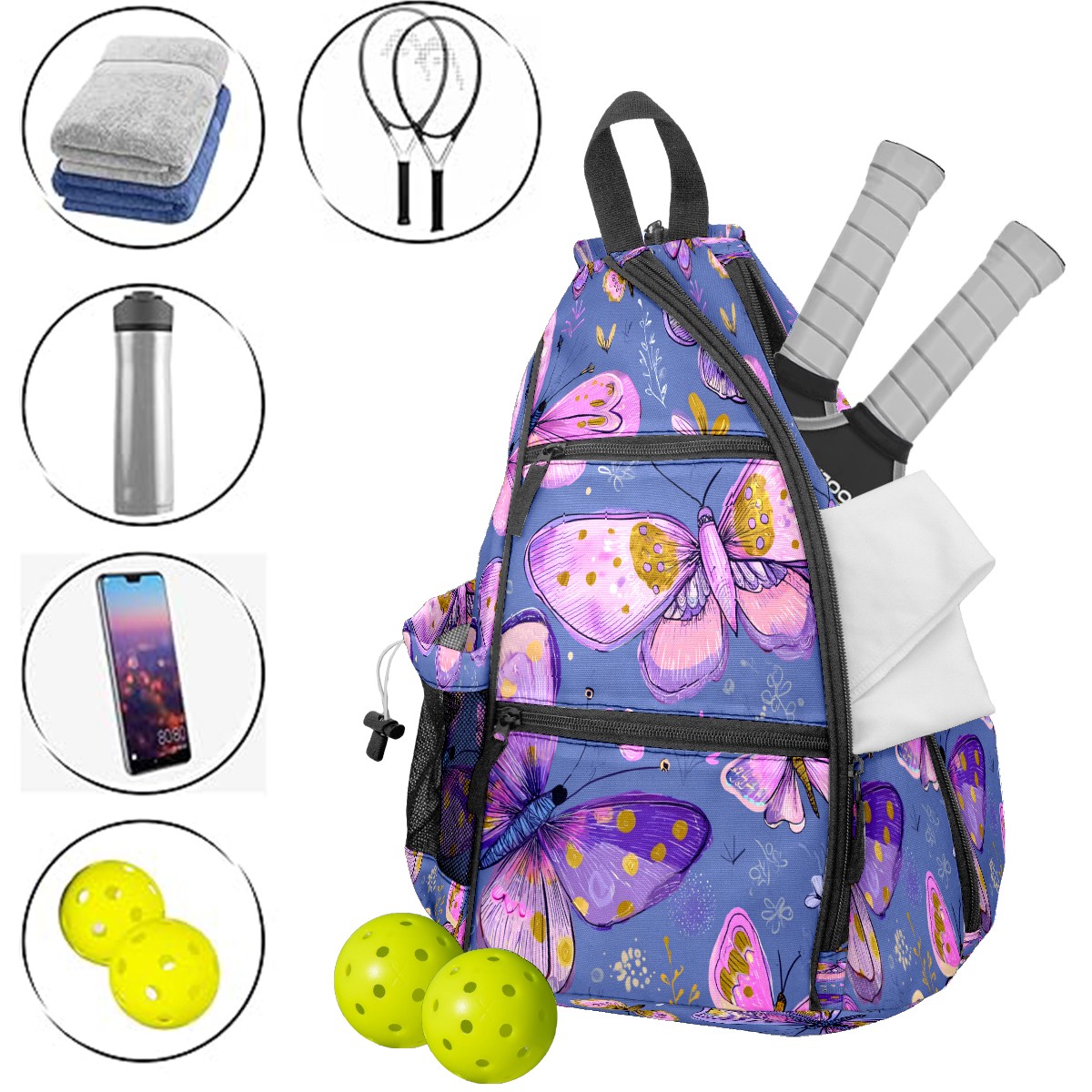 Counullo Pickleball Bag for Women & Men – Lightweight Sports Backpack with Paddle Compartments, Dual Carry Modes, Detachable Zippered Strap, Purple Butterfly, Perfect Gift for Players