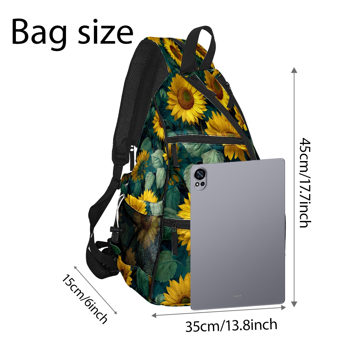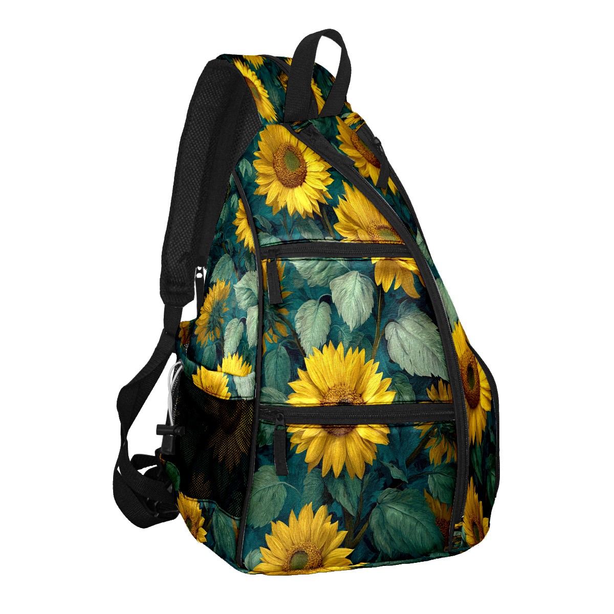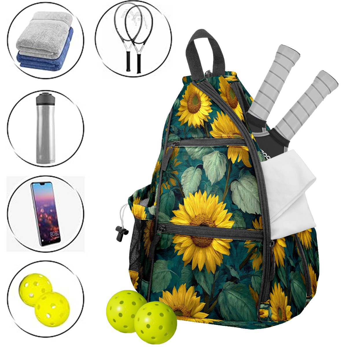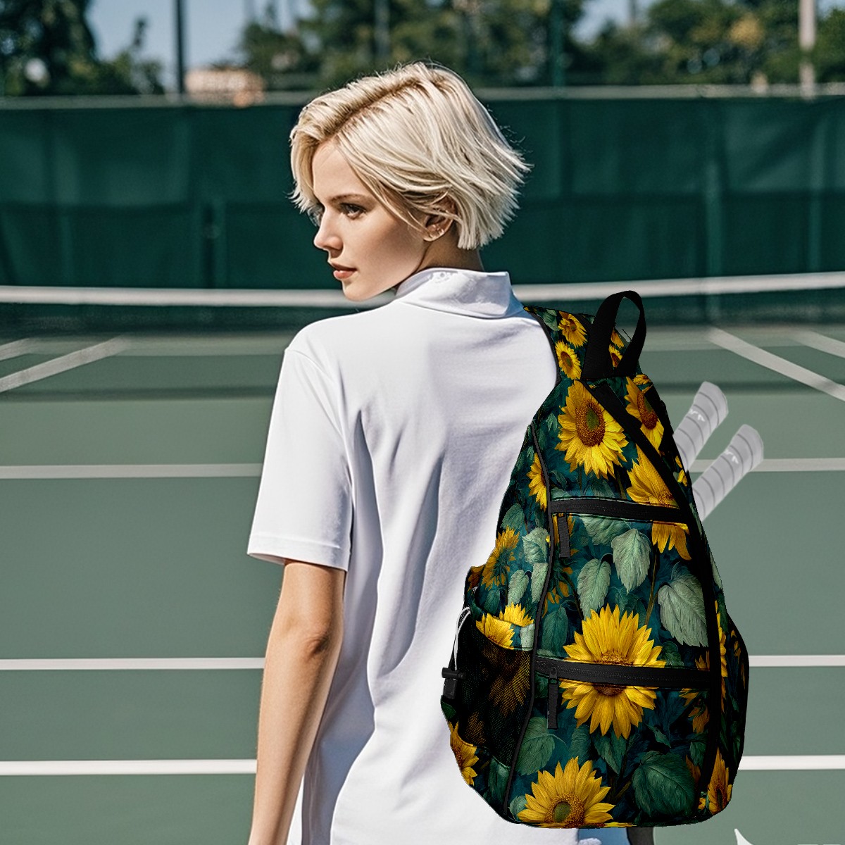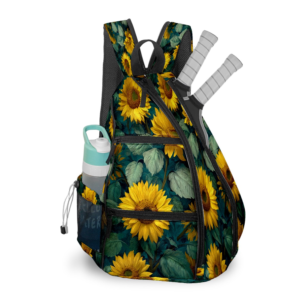 Counullo Pickleball Bag for Women & Men – Lightweight Sports Backpack with Paddle Compartments, Dual Carry Modes, Detachable Zippered Strap, Green Sunflower, Perfect Gift for Players