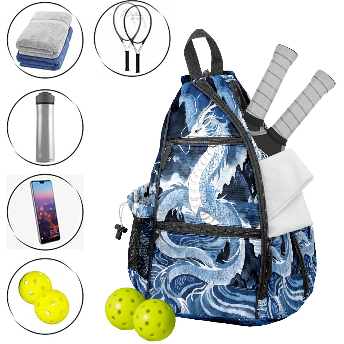 Counullo Pickleball Bag for Women & Men – Lightweight Sports Backpack with Paddle Compartments, Dual Carry Modes, Detachable Zippered Strap, Shan Hailong, Perfect Gift for Players