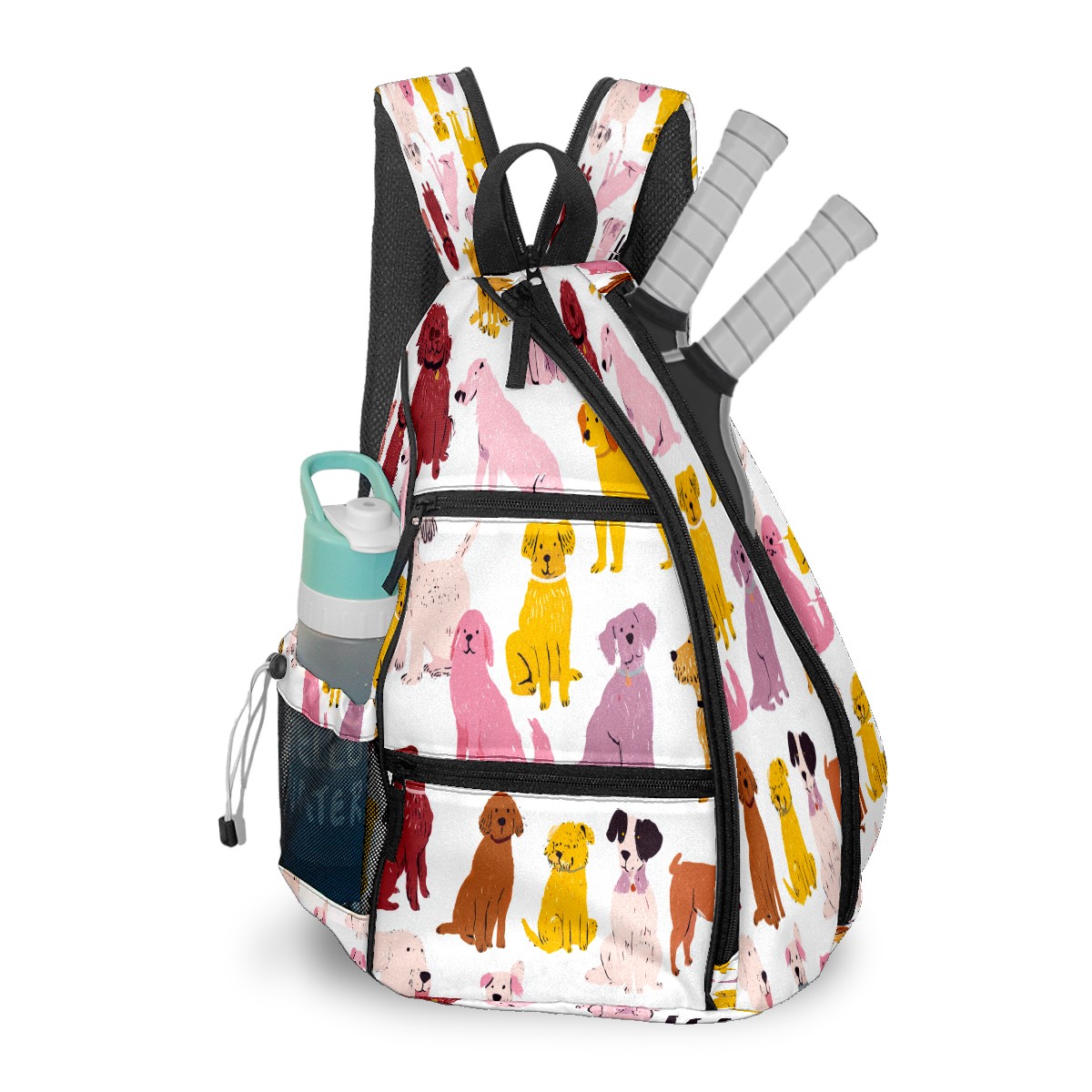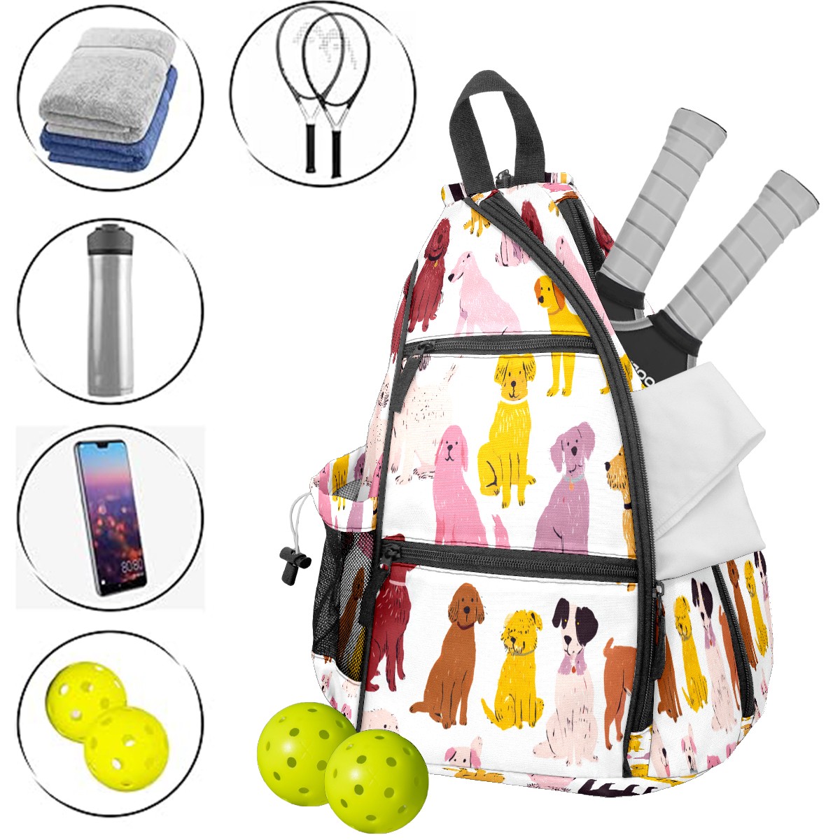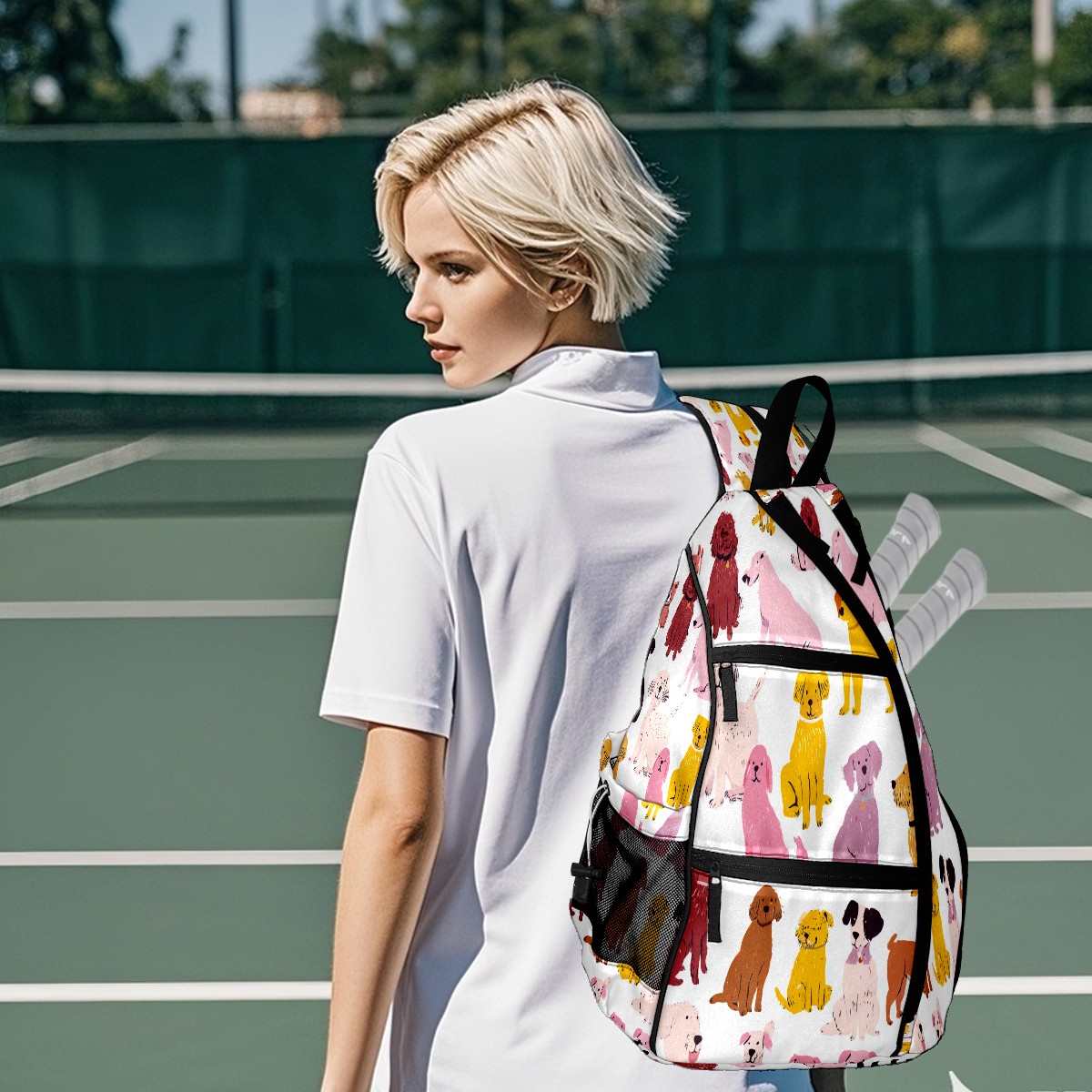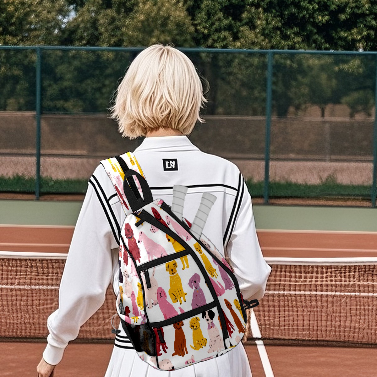 Counullo Pickleball Bag for Women & Men – Lightweight Sports Backpack with Paddle Compartments, Dual Carry Modes, Detachable Zippered Strap, Cute Dog White, Perfect Gift for Players