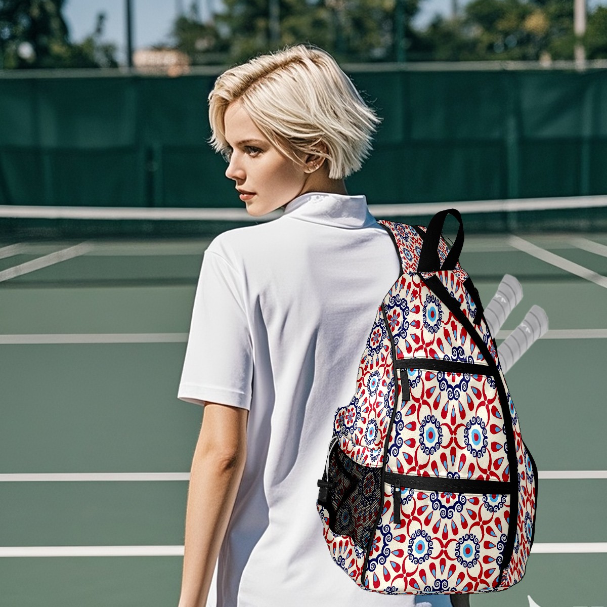 Counullo Pickleball Bag for Women & Men – Lightweight Sports Backpack with Paddle Compartments, Dual Carry Modes, Detachable Zippered Strap, Flowers Red, Perfect Gift for Players