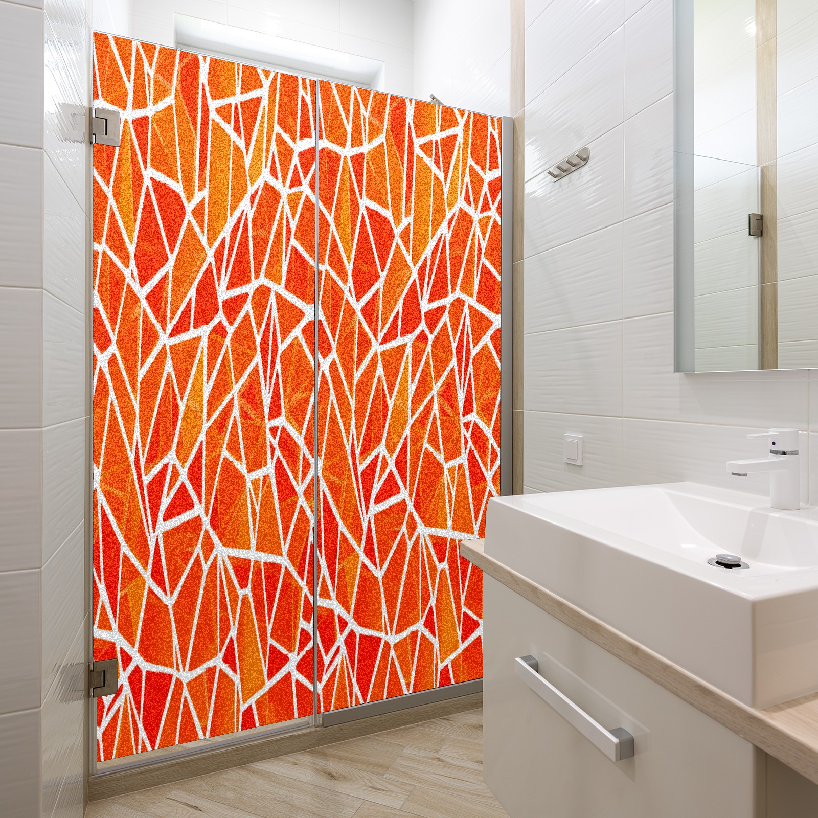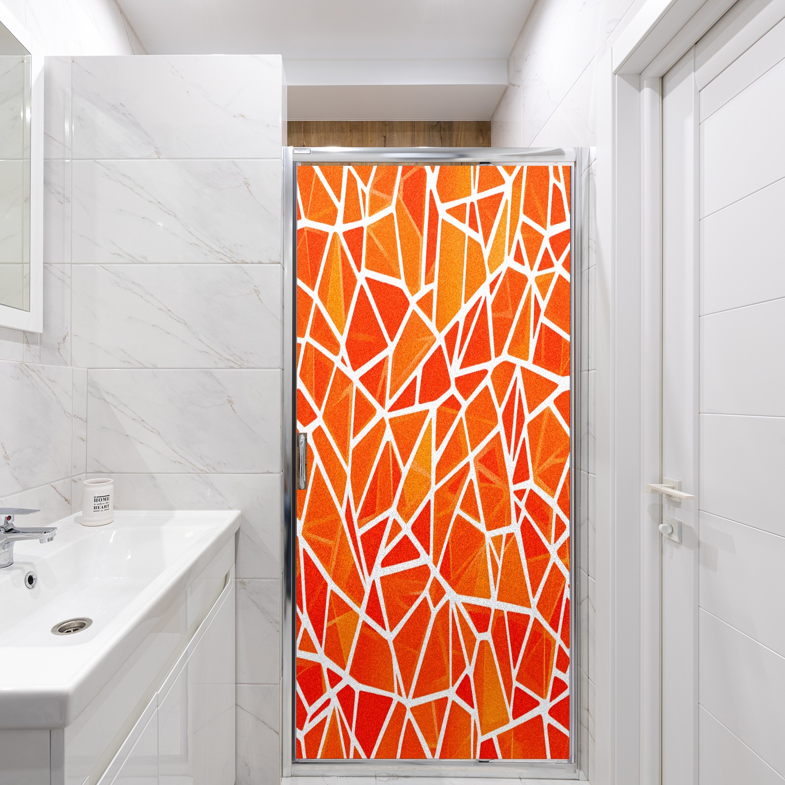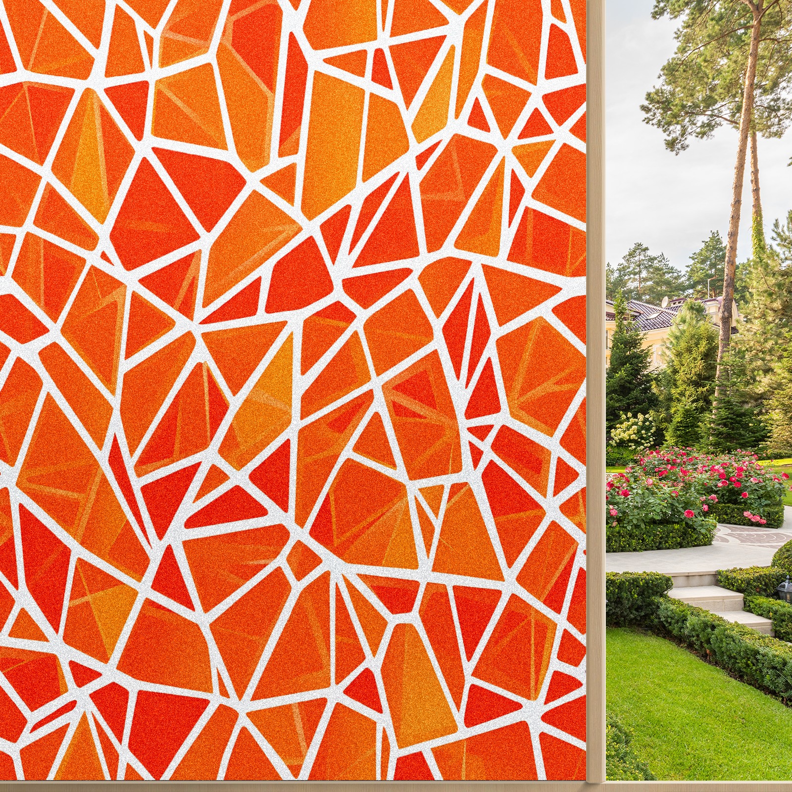 Frosted Glass Window Film Privacy Film Stained Glass Decals for Bathroom Shower Door Geometric Orange(1) Design Non Adhesive