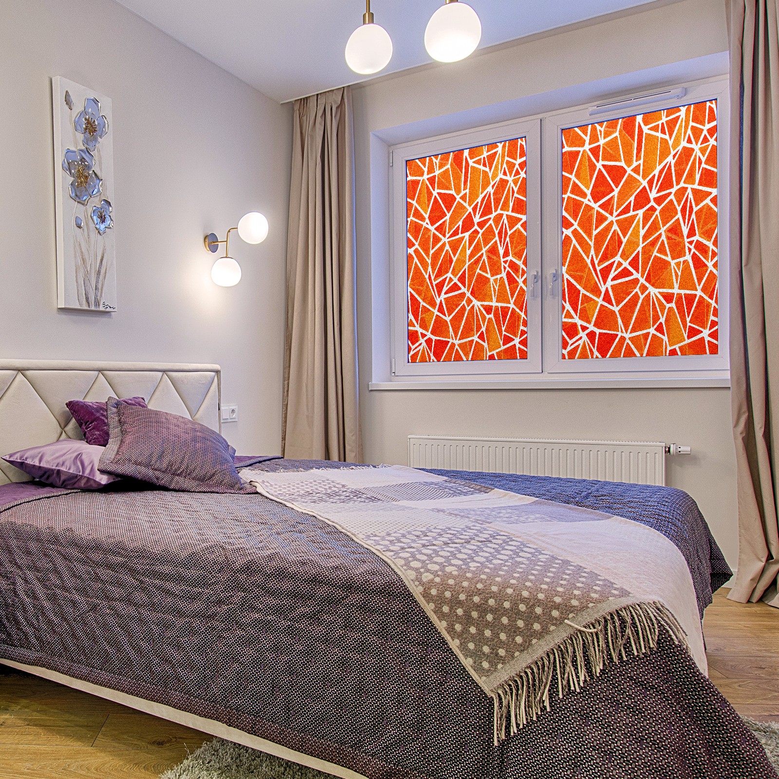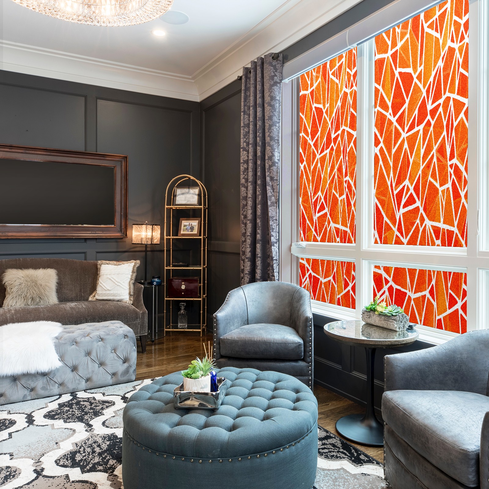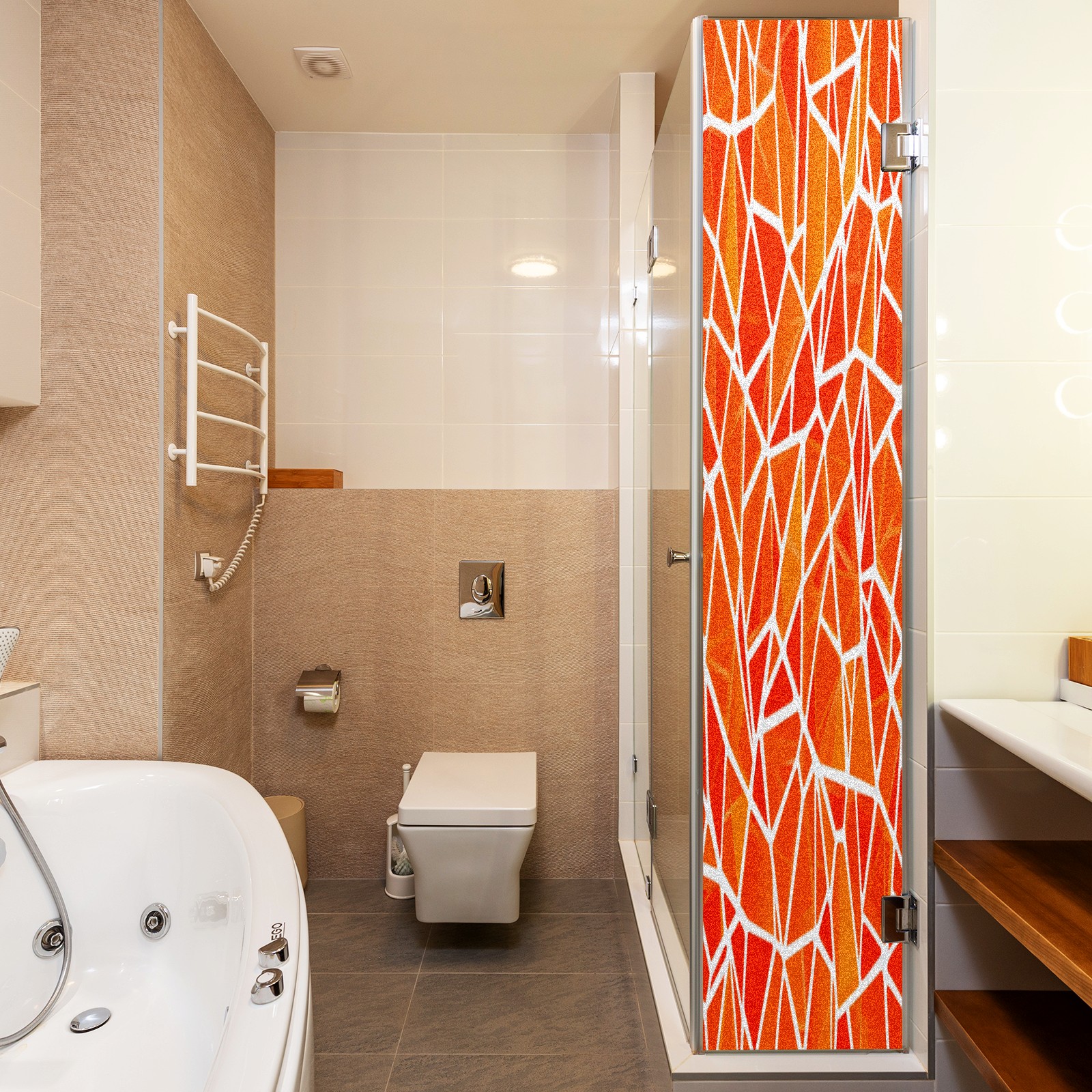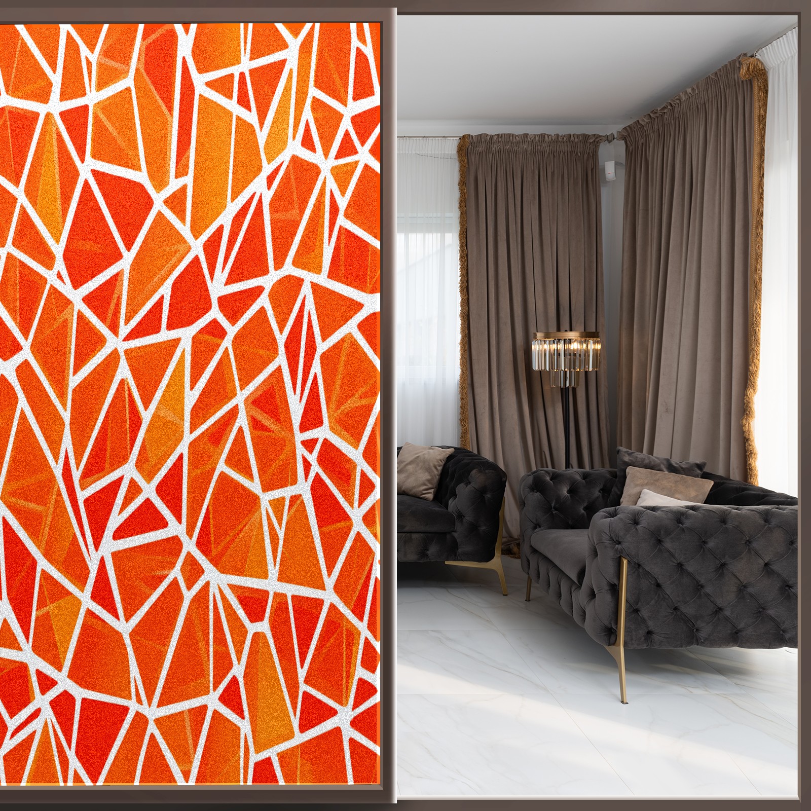 Frosted Glass Window Film Privacy Film Stained Glass Decals for Bathroom Shower Door Geometric Orange(1) Design Non Adhesive