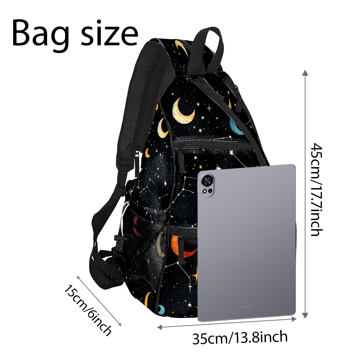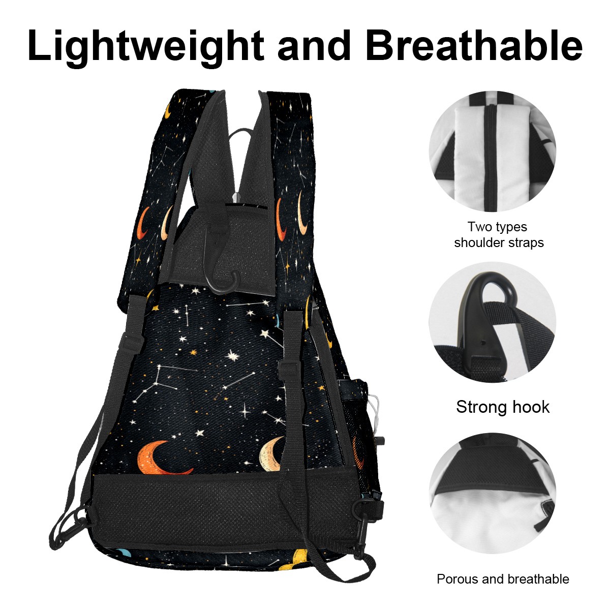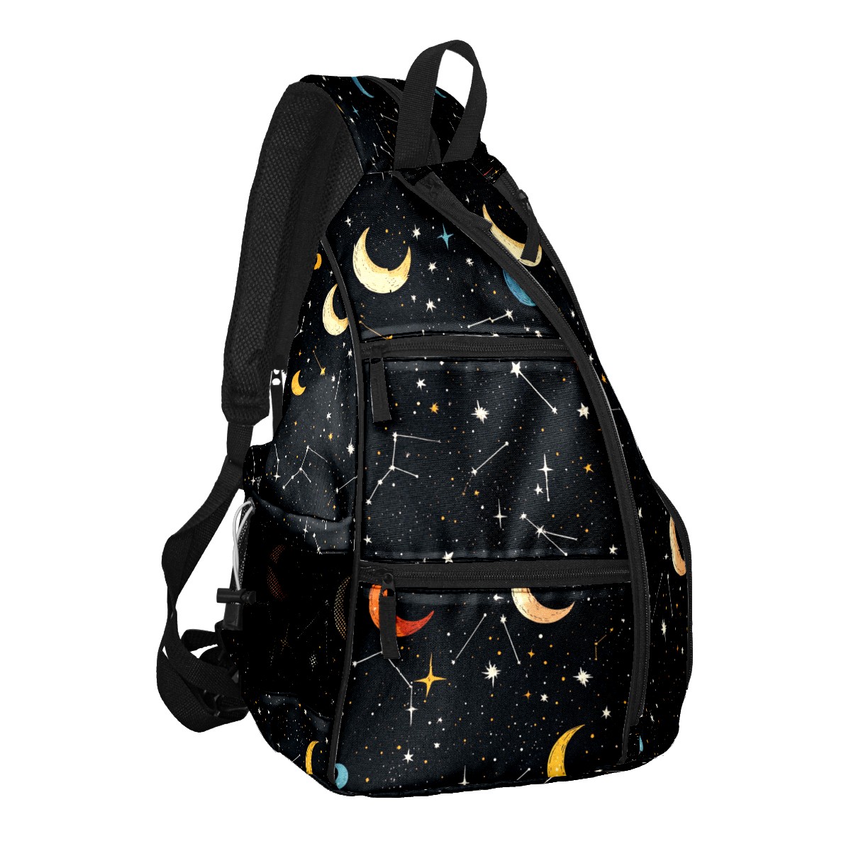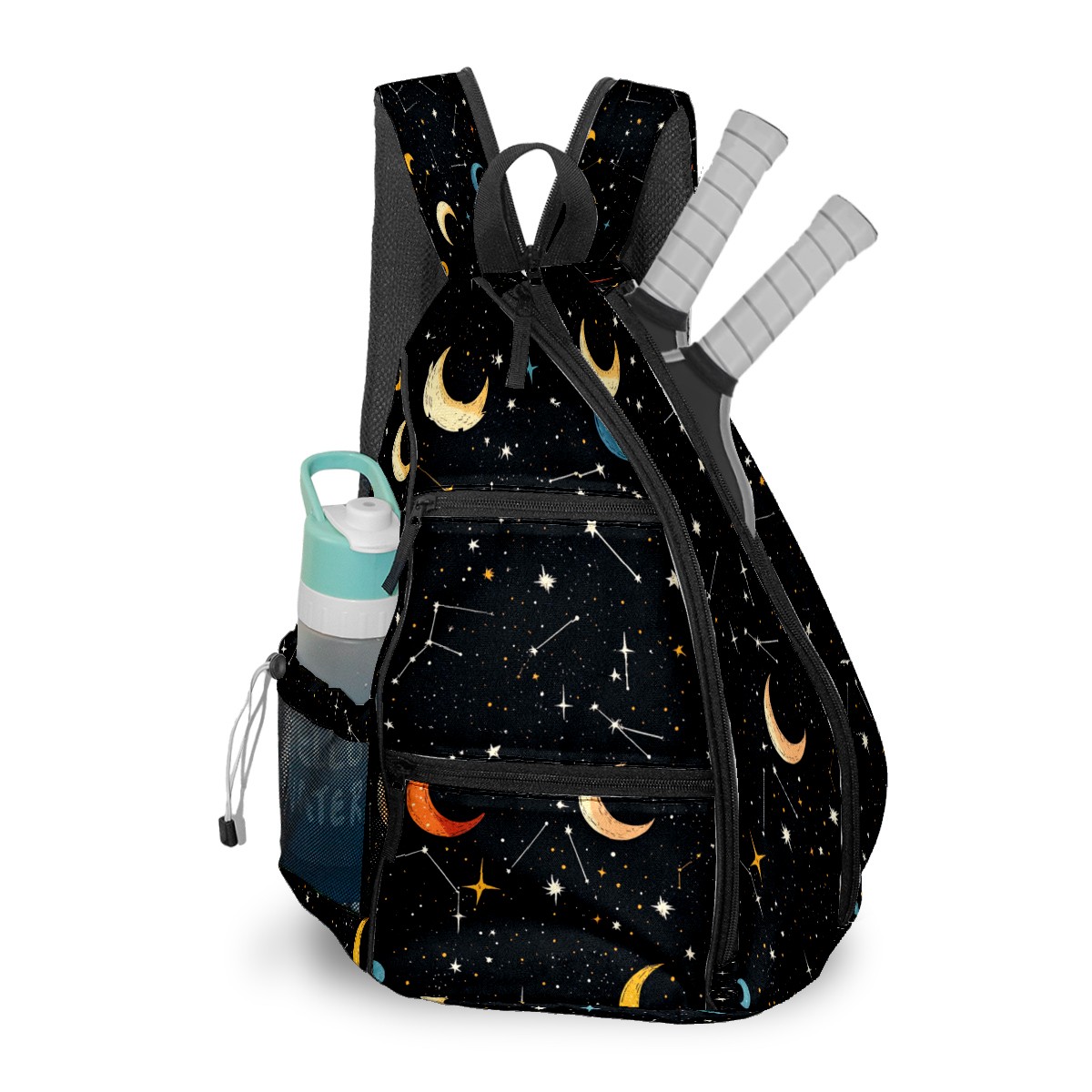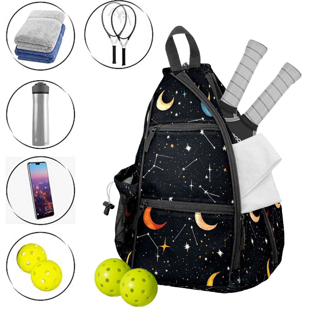 Pickleball Sling Bag for Women and Men - Backpack with Nylon Fabric/Woven Strap/Mesh Pocket/Fence Hook/Adjustable Bag Star Moon Pattern