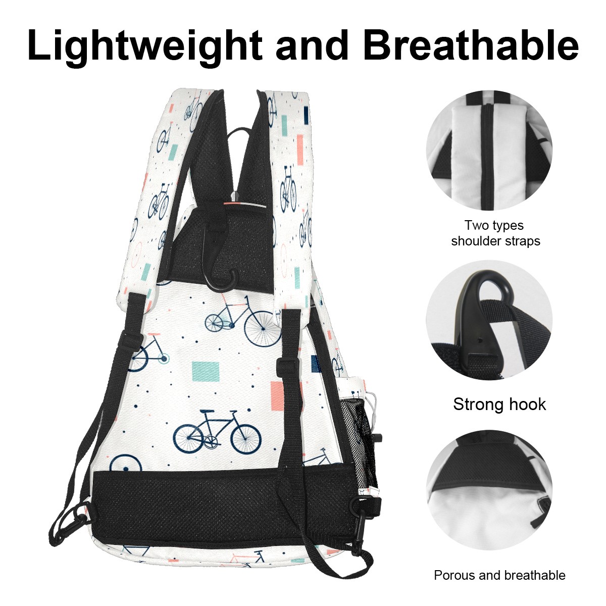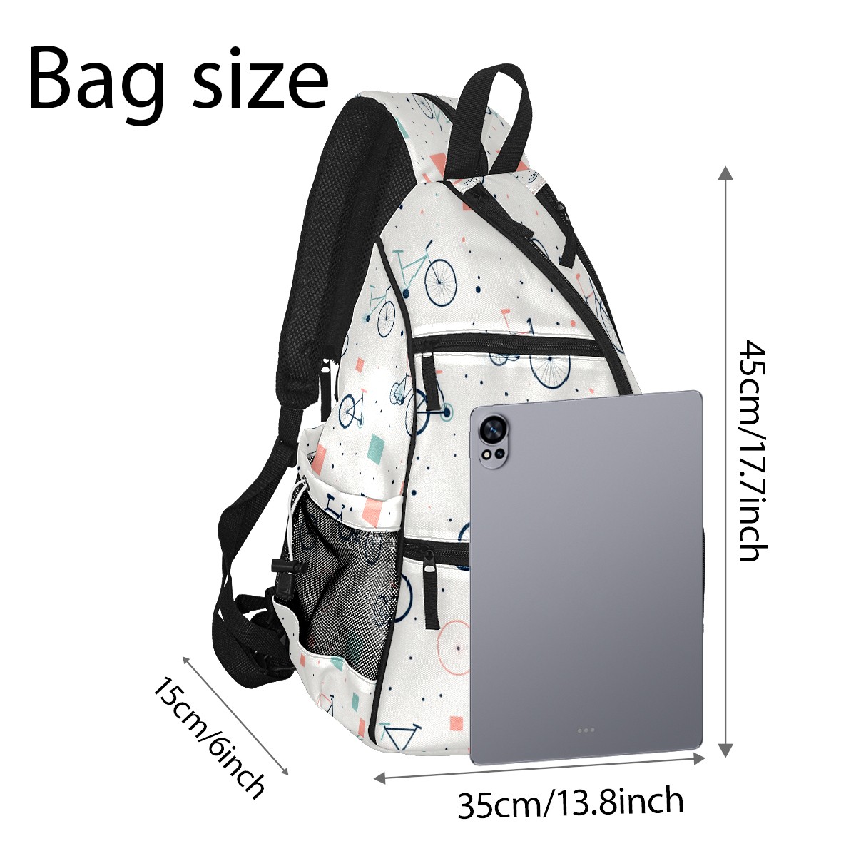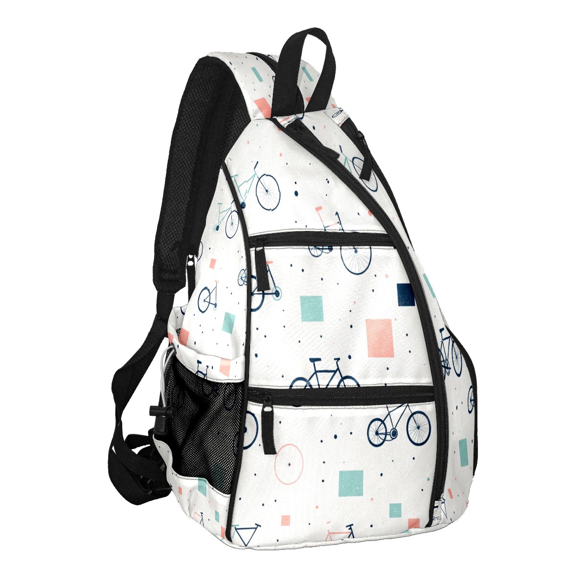 Pickleball Sling Bag for Women and Men - Backpack with Nylon Fabric/Woven Strap/Mesh Pocket/Fence Hook/Adjustable Bag Bike Pattern