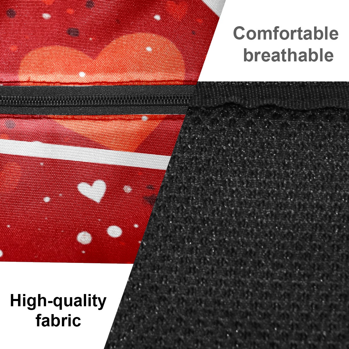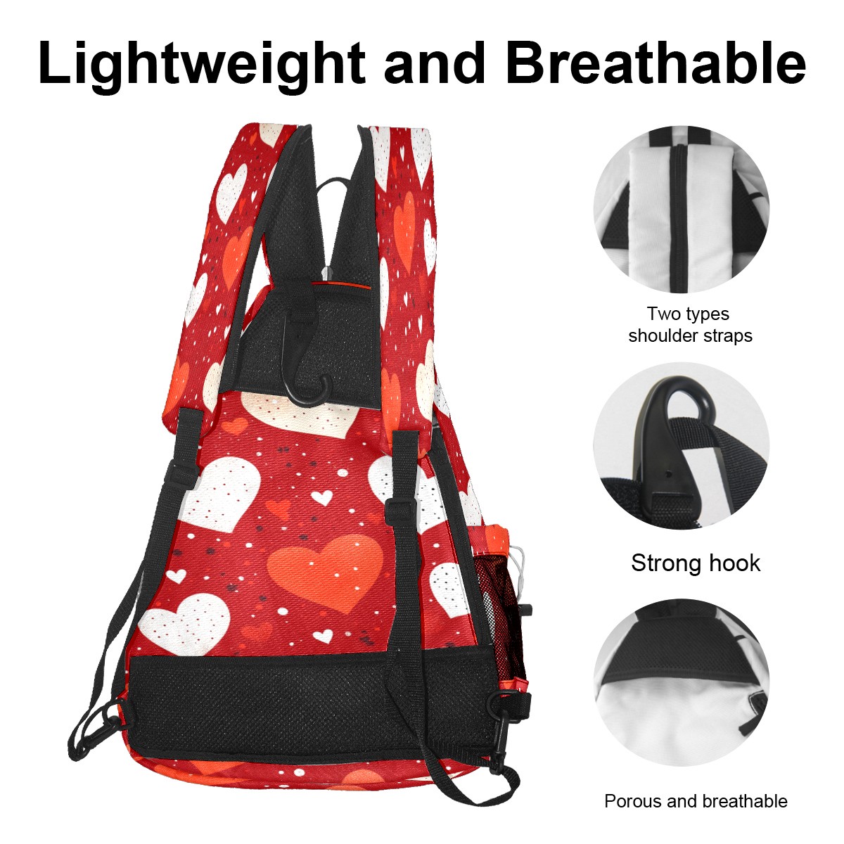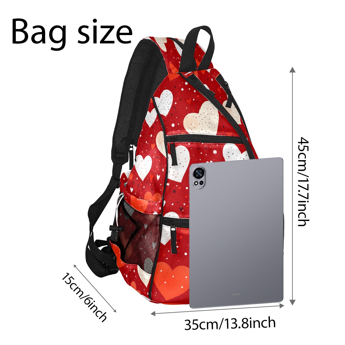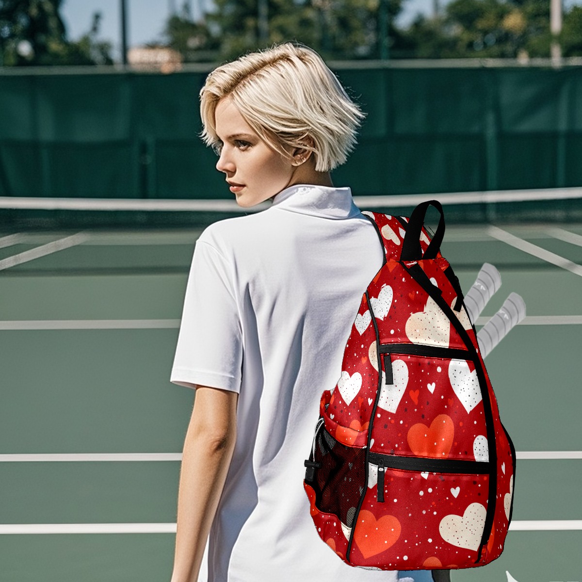 Pickleball Sling Bag for Women and Men - Backpack with Nylon Fabric/Woven Strap/Mesh Pocket/Fence Hook/Adjustable Bag Red Heart Pattern