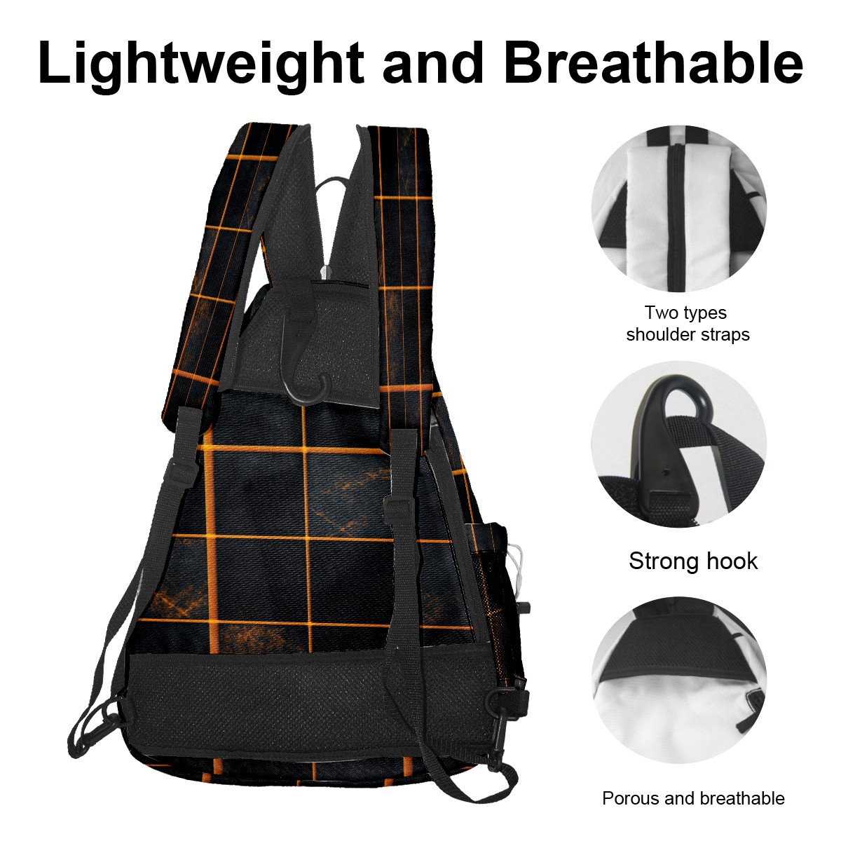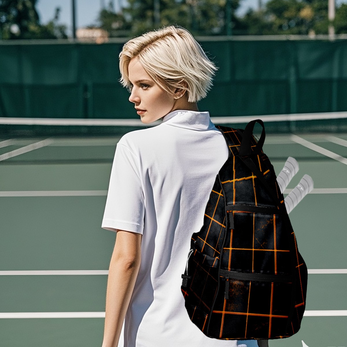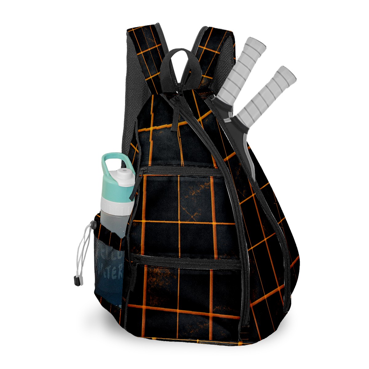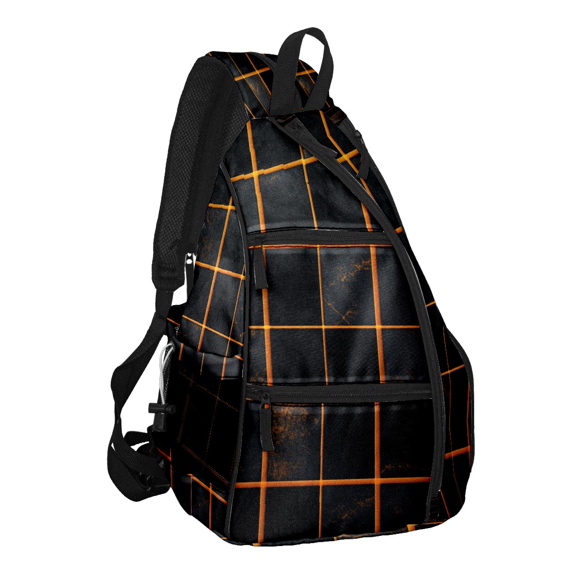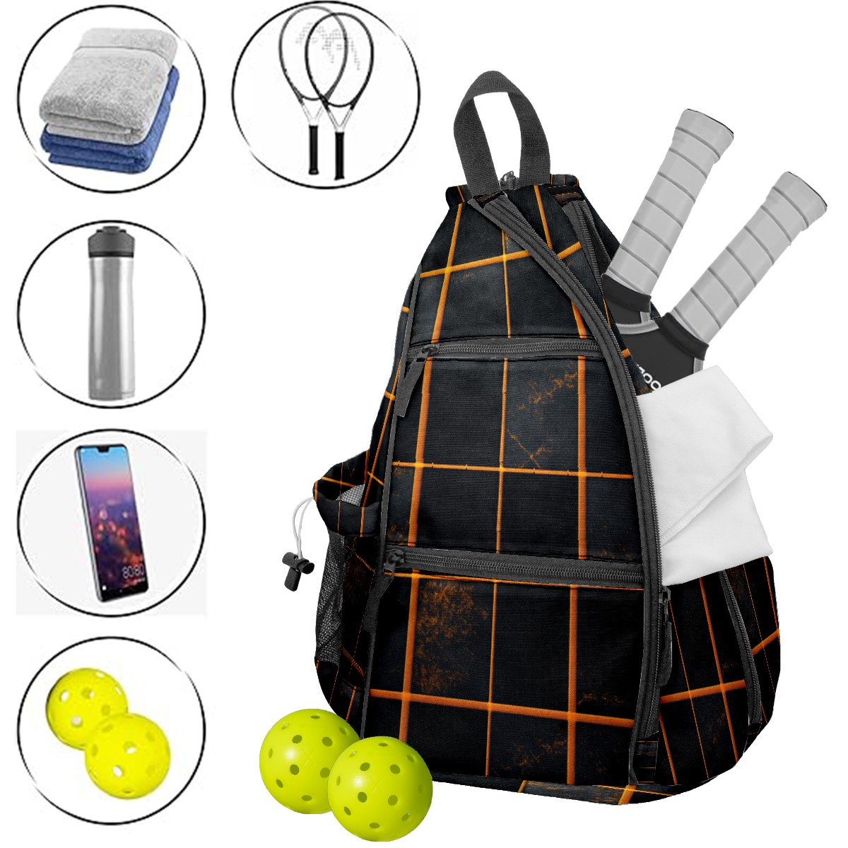 Pickleball Sling Bag for Women and Men - Backpack with Nylon Fabric/Woven Strap/Mesh Pocket/Fence Hook/Adjustable Bag Orange Striped Pattern