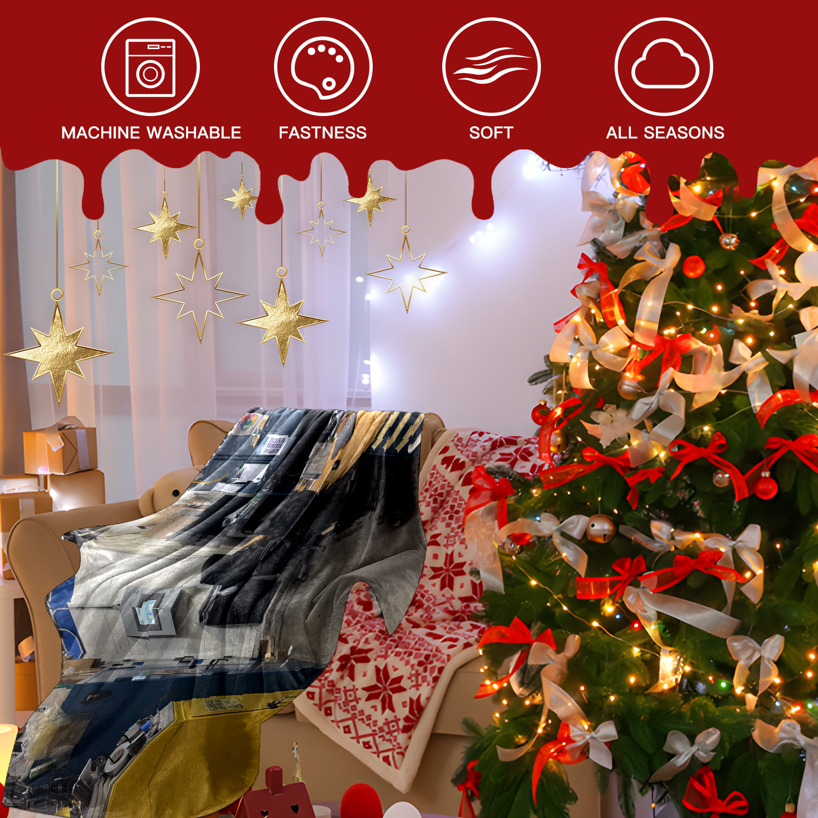 • Эта шаль изготовлена из высококачественного сверхмягкого флиса с коротким ворсом, обладает нежной и приятной на ощупь текстурой, легка, но при этом отлично сохраняет тепло. Будь то уютное сидение на диване во время сериала, небольшая дневная сонливость или использование в качестве накрывающего одеяла у изголовья кровати — она подарит вам комфорт, подобный объятиям.