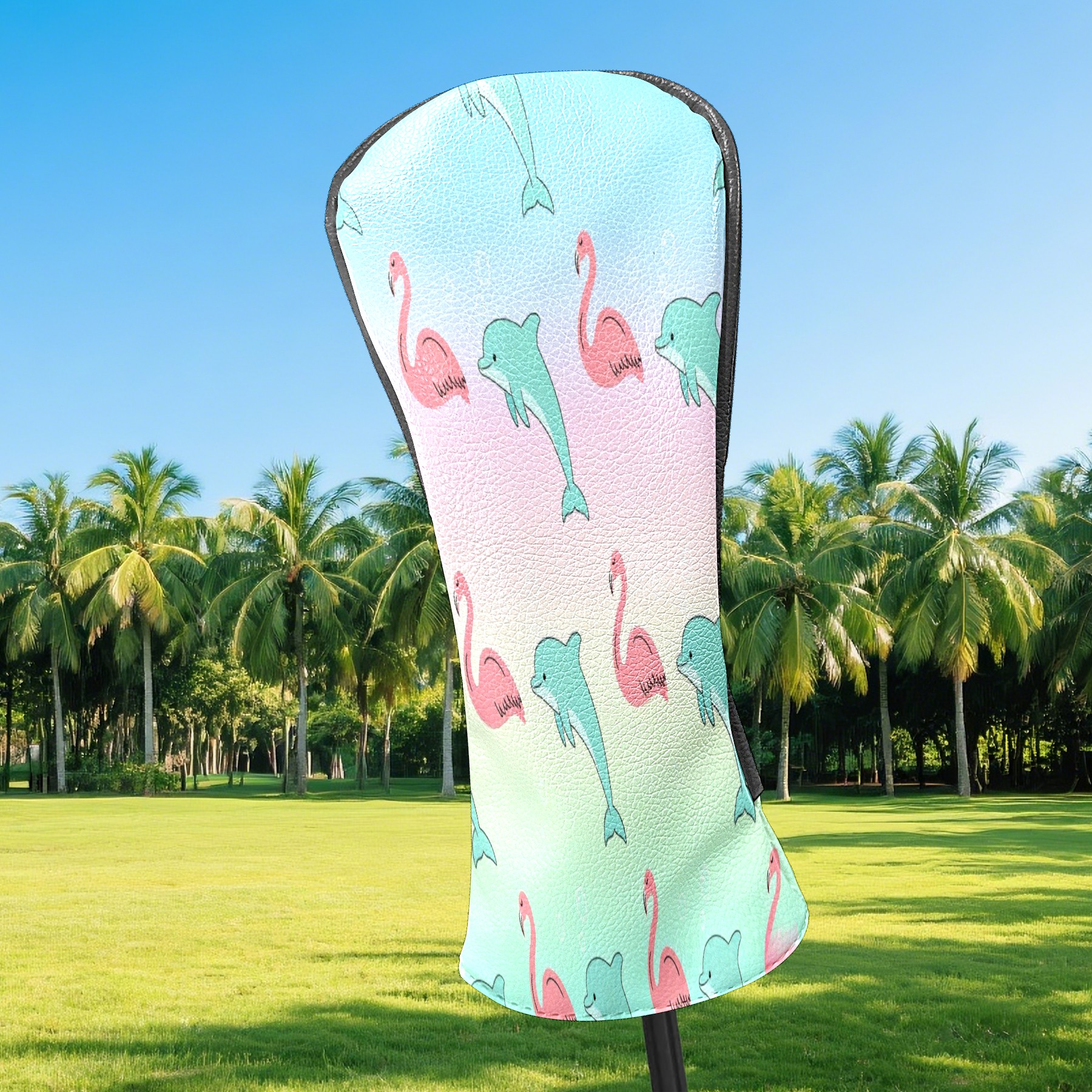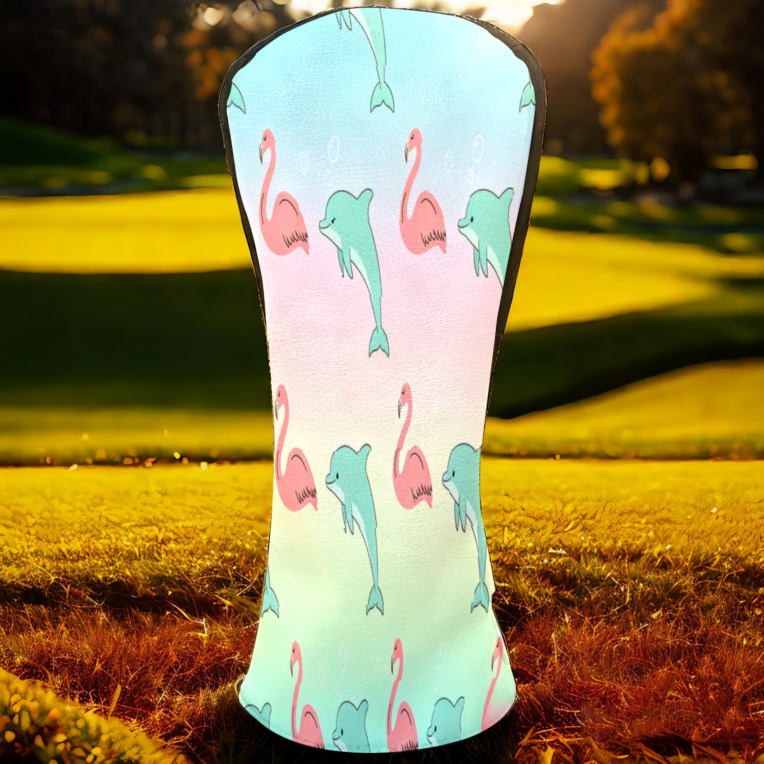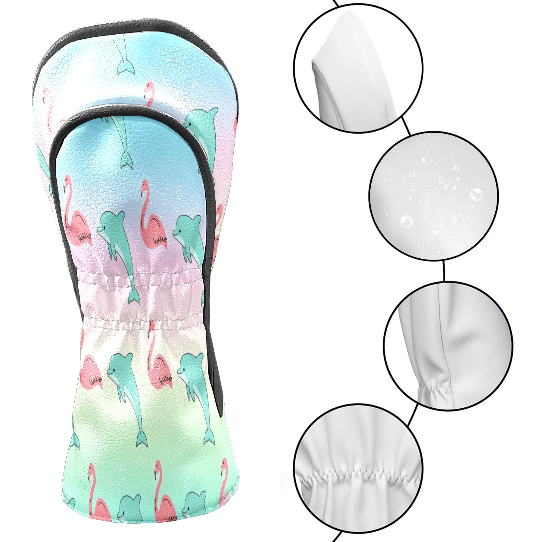 Golf Club Head Cover Waterproof Leather for Driver & Fairway Wood, Driver Headcovers, Golf Accessories for Men Women, Anti-Scratch, Golf Gift for Golfers, 1/3/5 Wood Cover Pink Dolphins & Flamingos