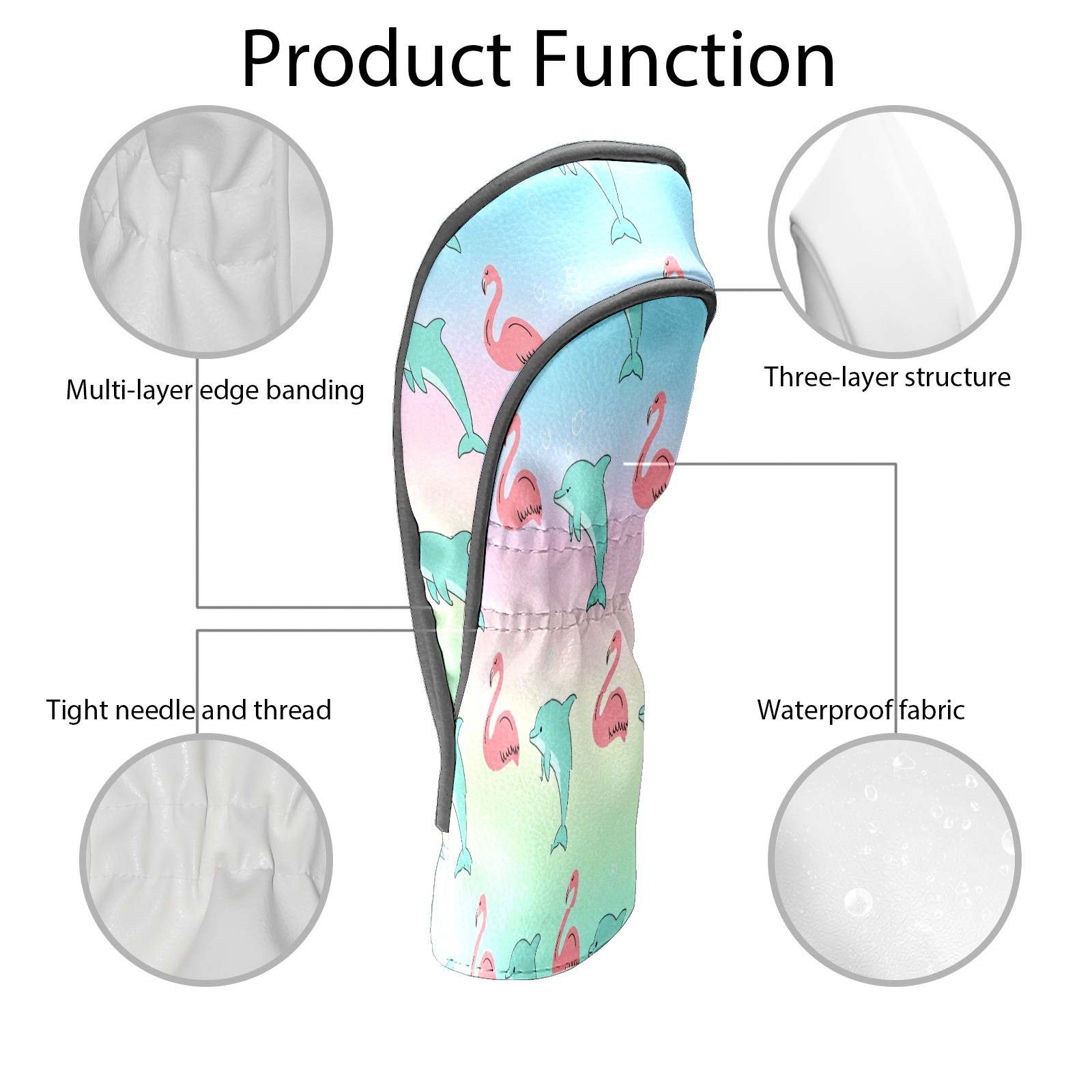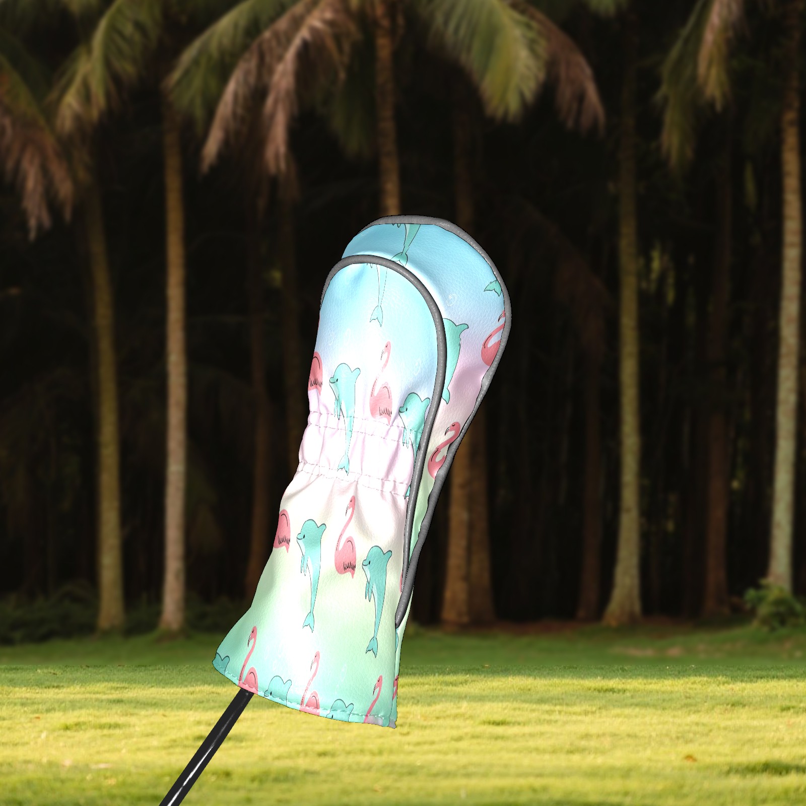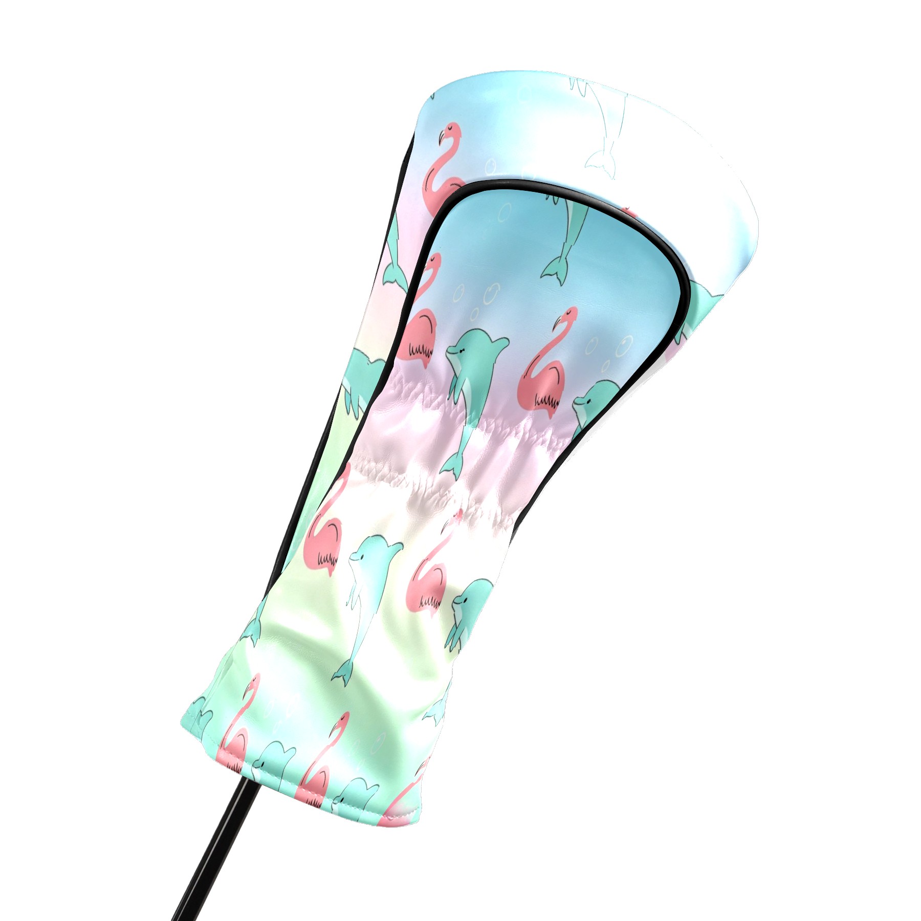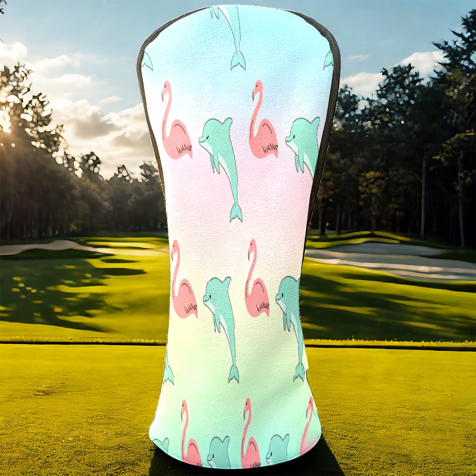 Golf Club Head Cover Waterproof Leather for Driver & Fairway Wood, Driver Headcovers, Golf Accessories for Men Women, Anti-Scratch, Golf Gift for Golfers, 1/3/5 Wood Cover Pink Dolphins & Flamingos