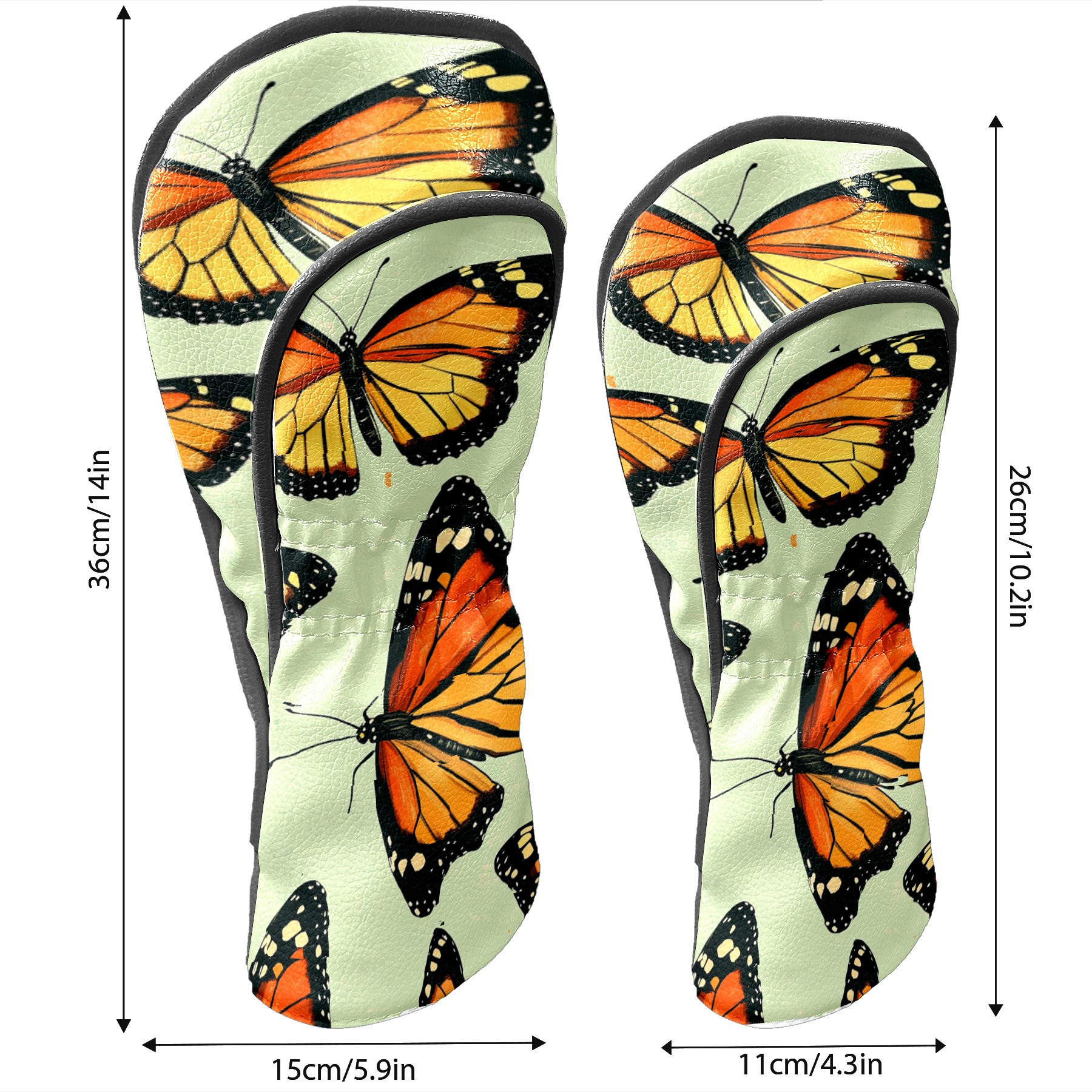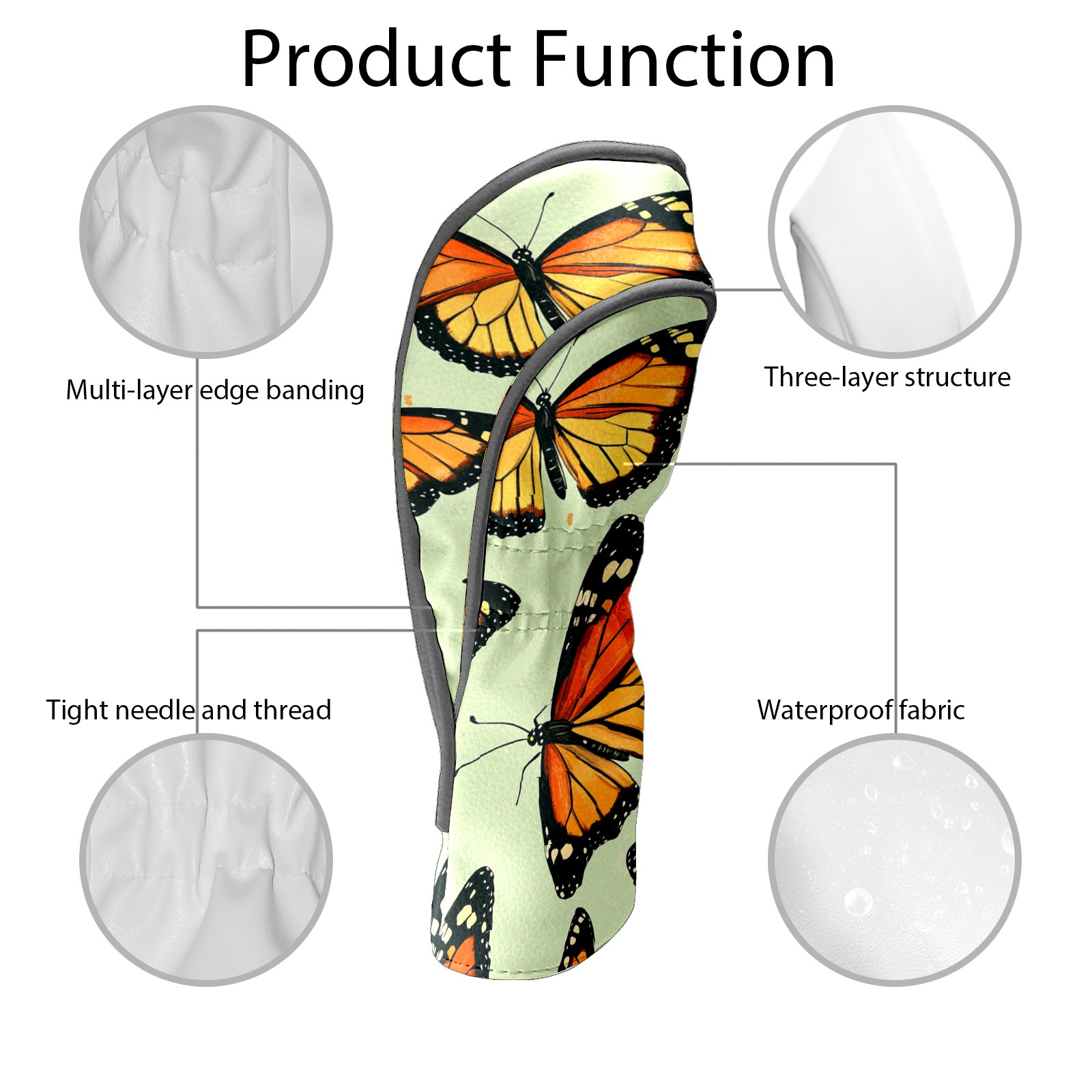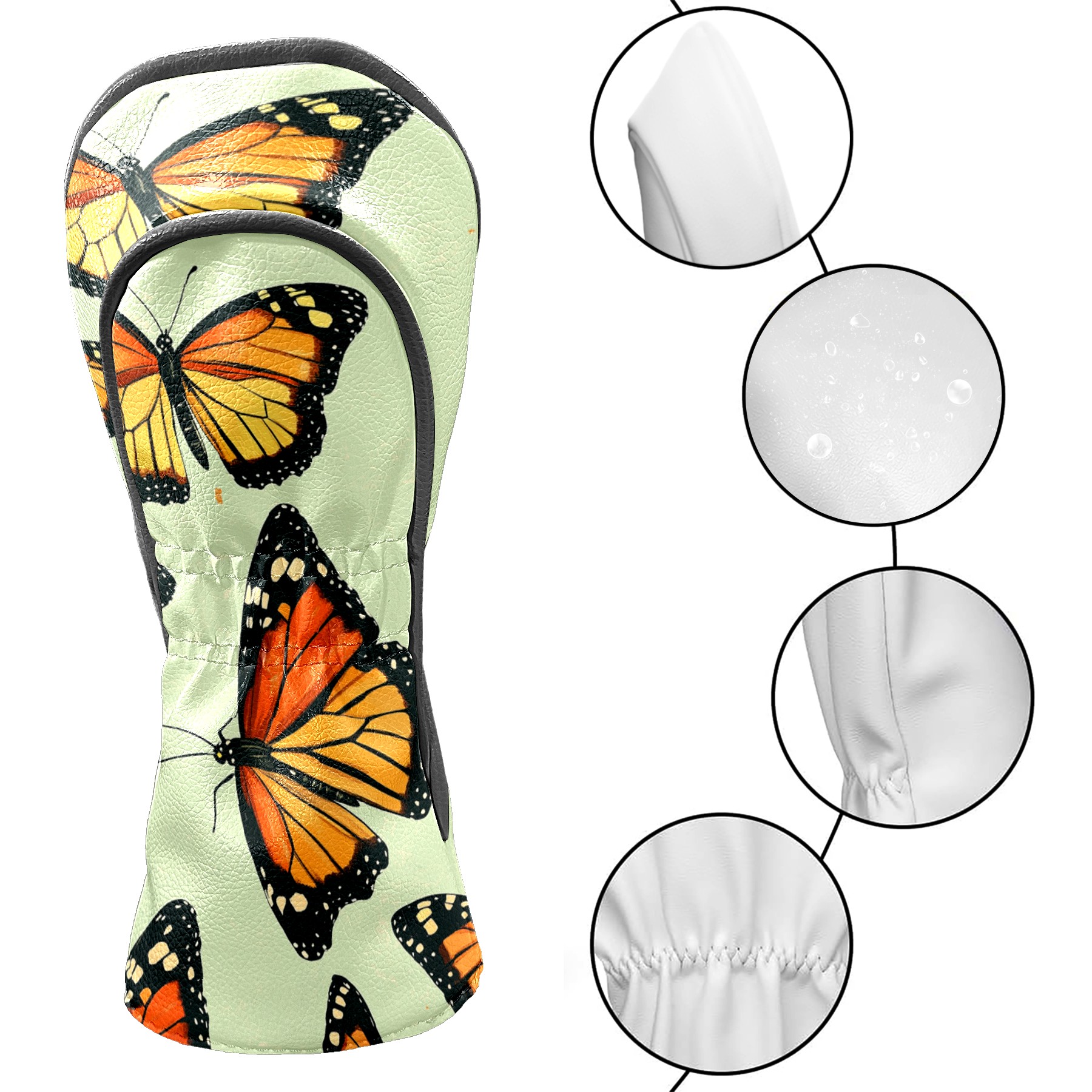 Golf Club Head Cover Waterproof Leather for Driver & Fairway Wood, Driver Headcovers, Golf Accessories for Men Women, Anti-Scratch, Golf Gift for Golfers, 1/3/5 Wood Cover Butterfly Pattern