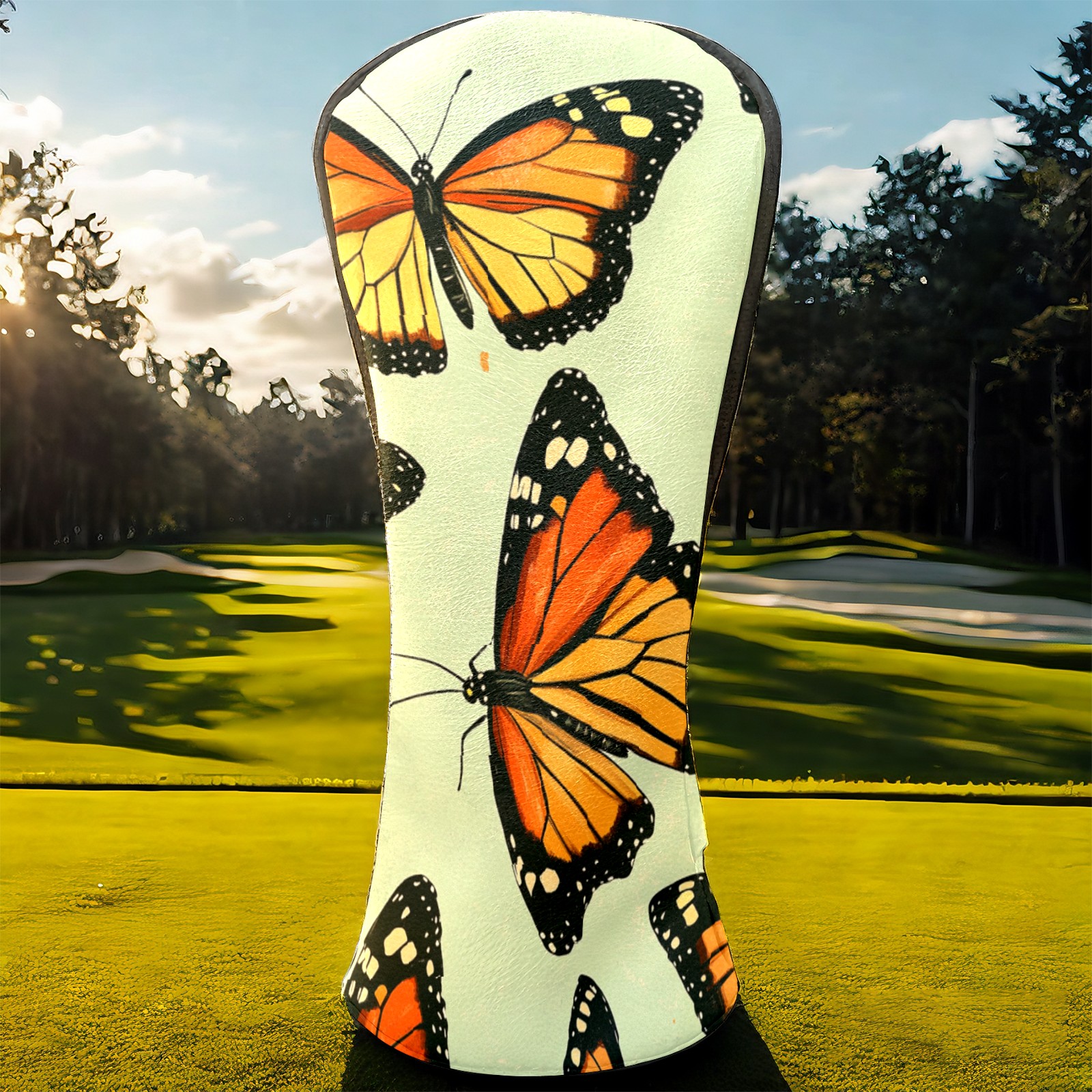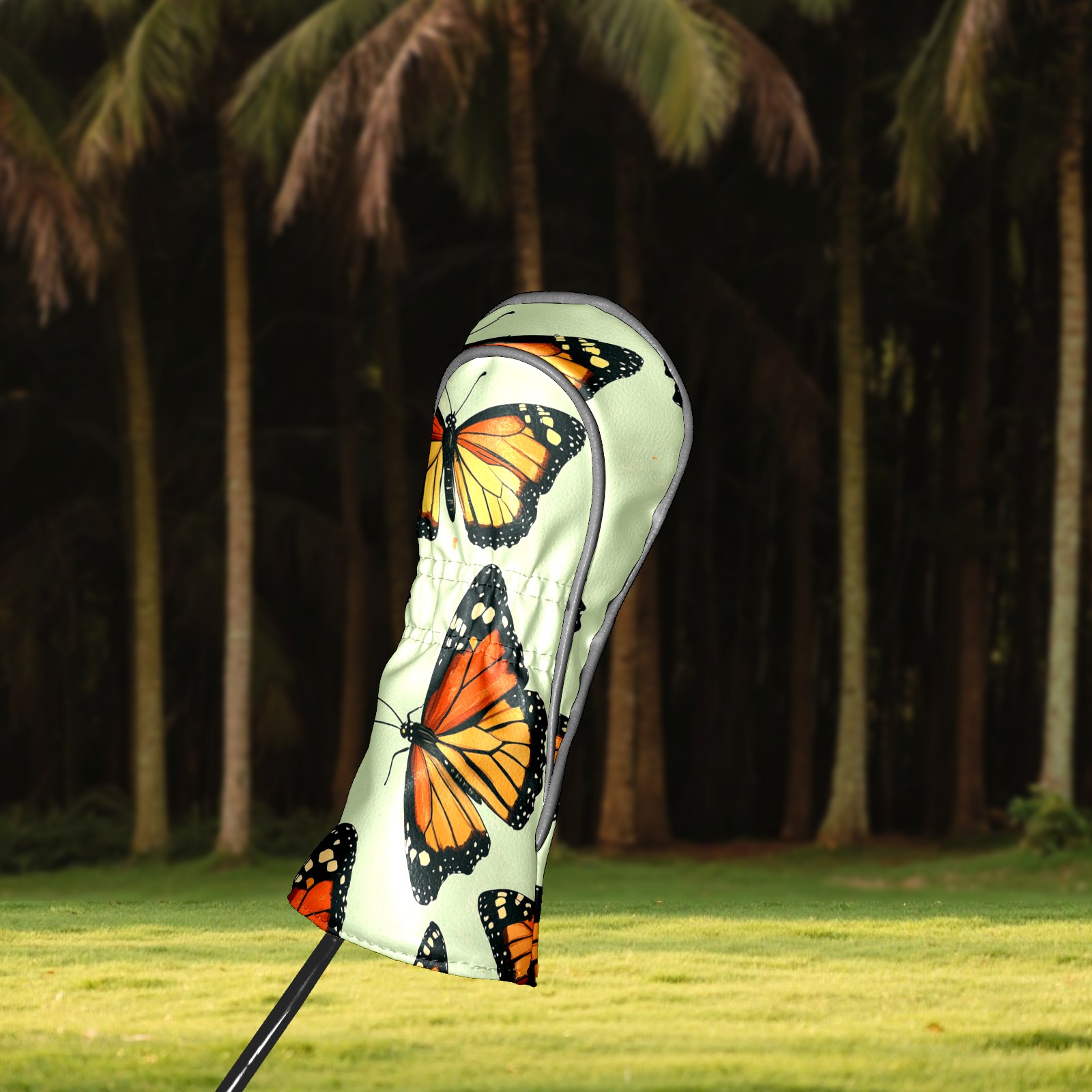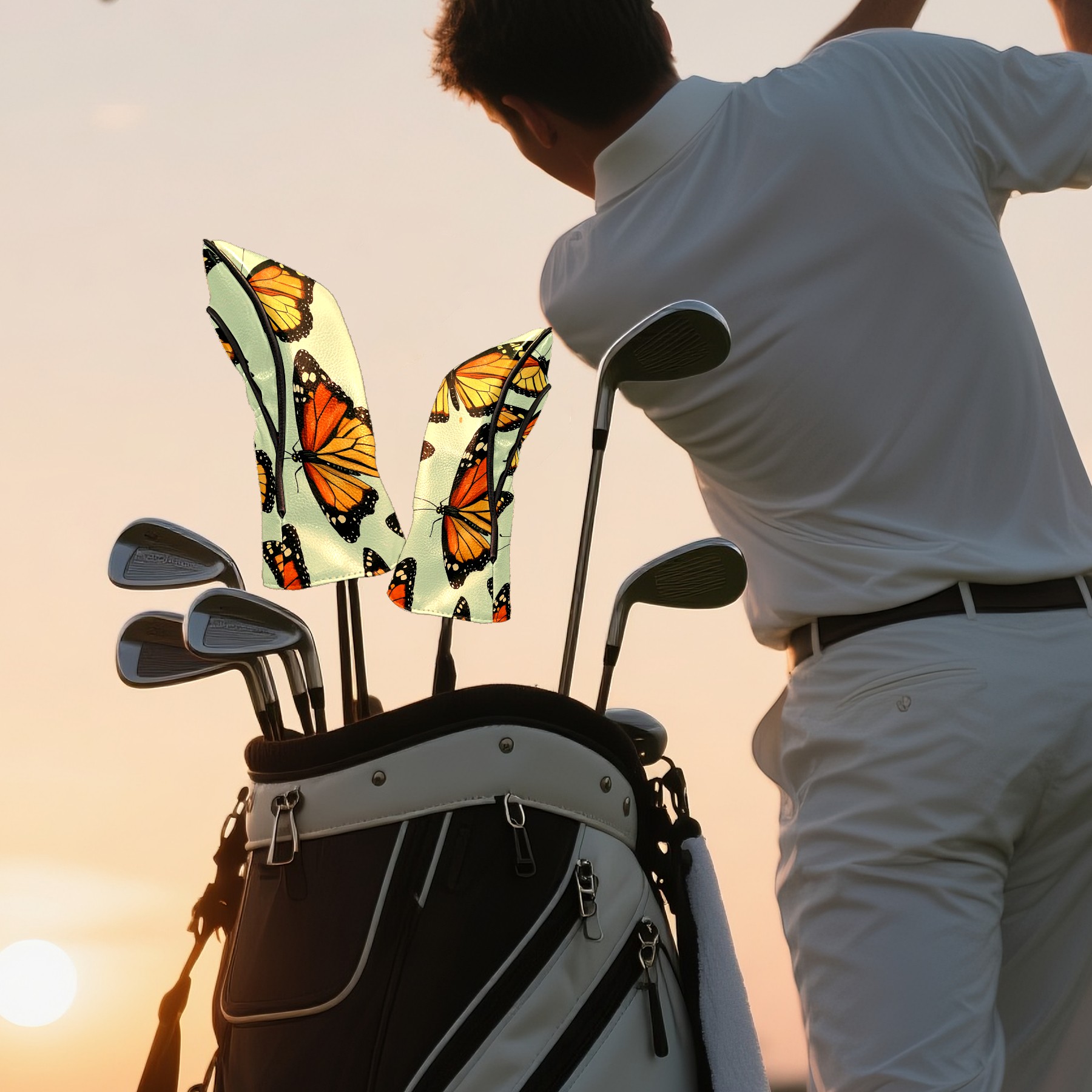 Golf Club Head Cover Waterproof Leather for Driver & Fairway Wood, Driver Headcovers, Golf Accessories for Men Women, Anti-Scratch, Golf Gift for Golfers, 1/3/5 Wood Cover Butterfly Pattern