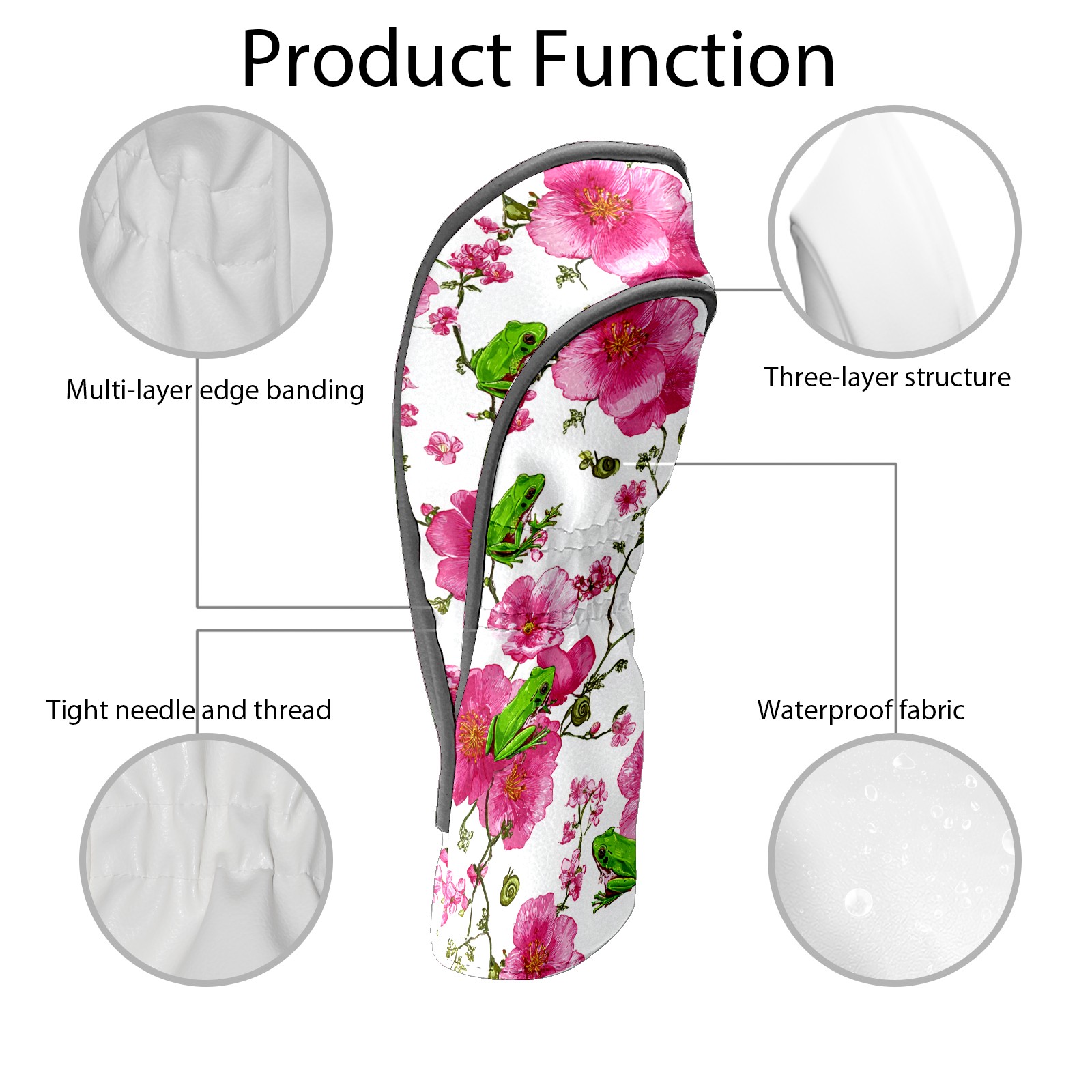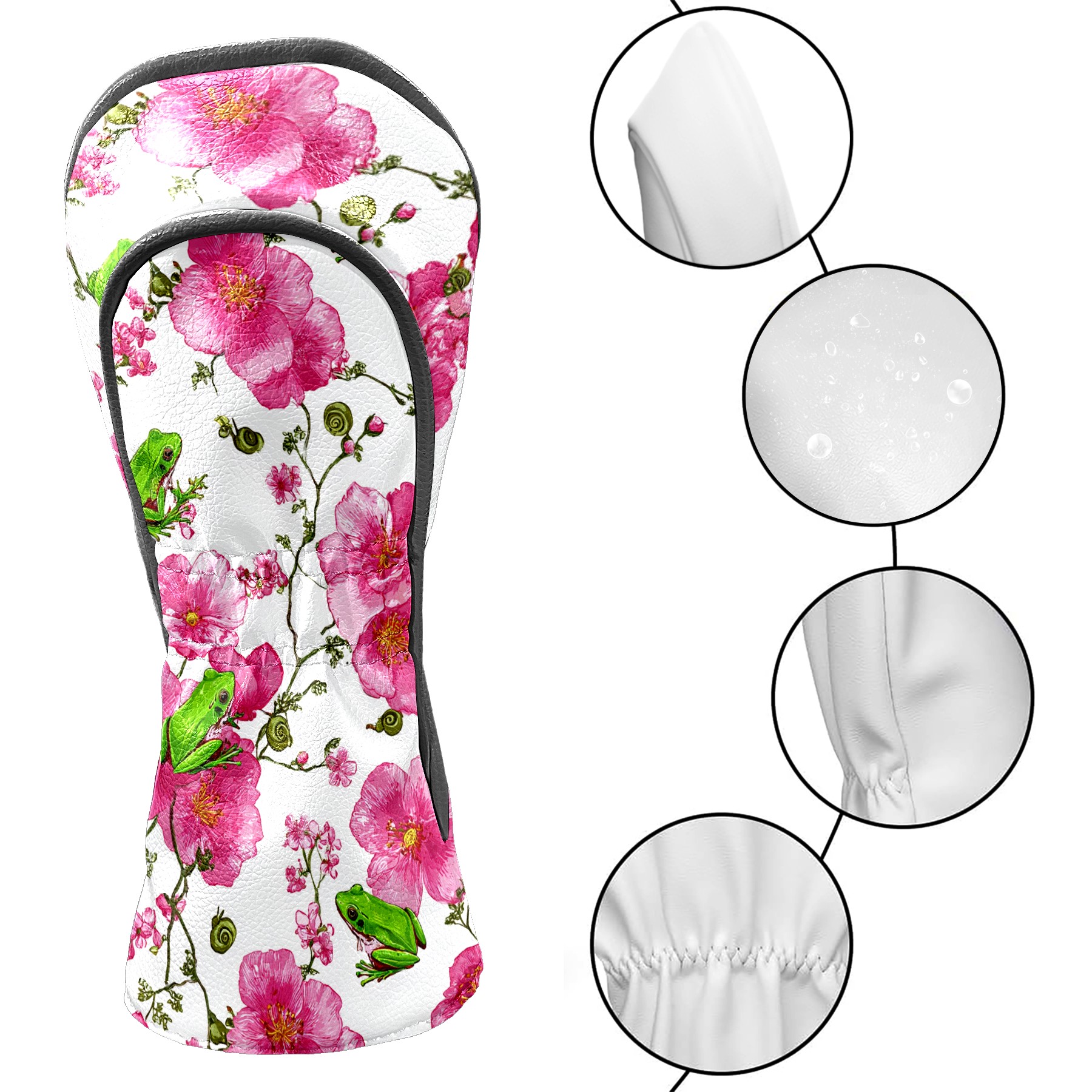 Golf Club Head Cover Waterproof Leather for Driver & Fairway Wood, Driver Headcovers, Golf Accessories for Men Women, Anti-Scratch, Golf Gift for Golfers, 1/3/5 Wood Cover Romantic Flower Pink