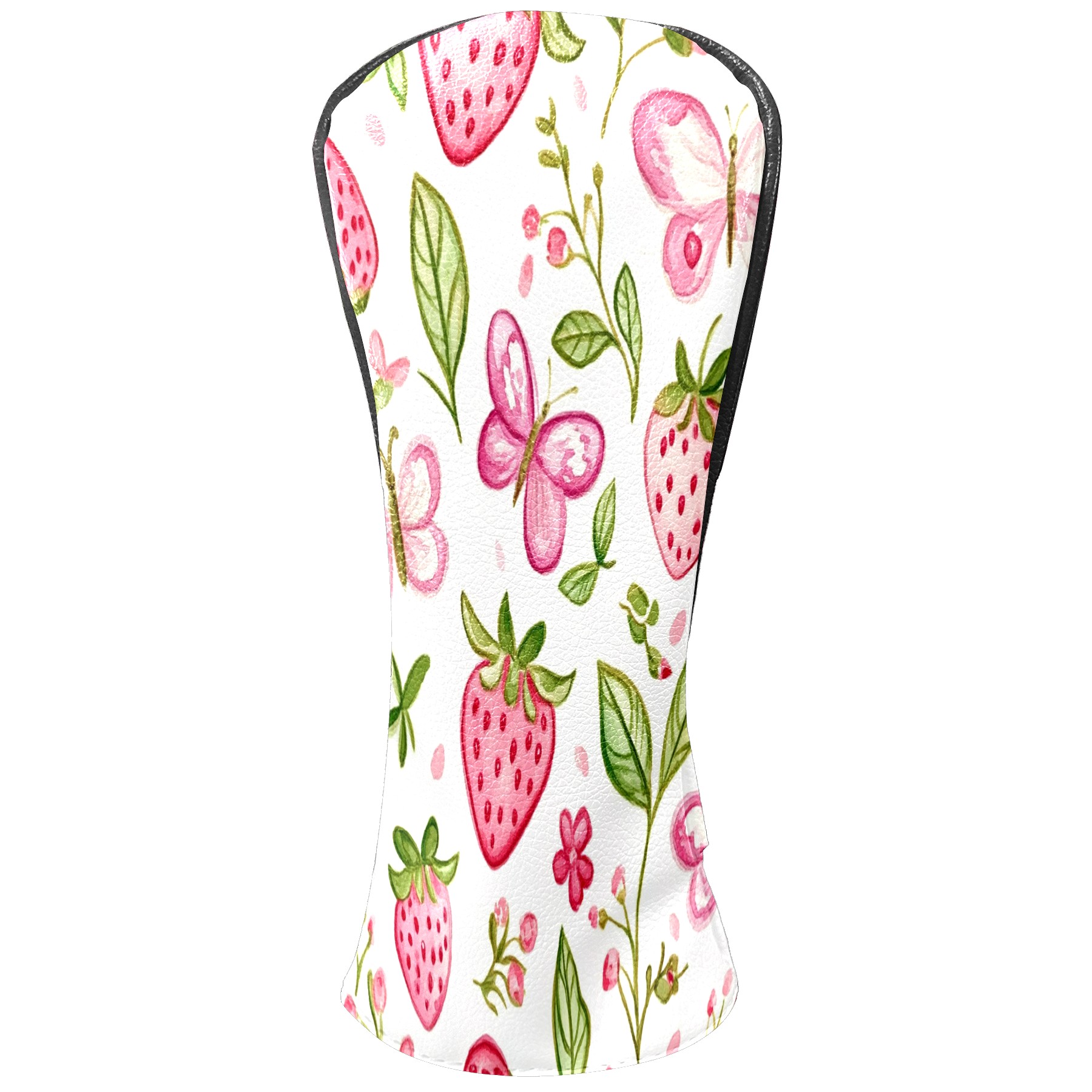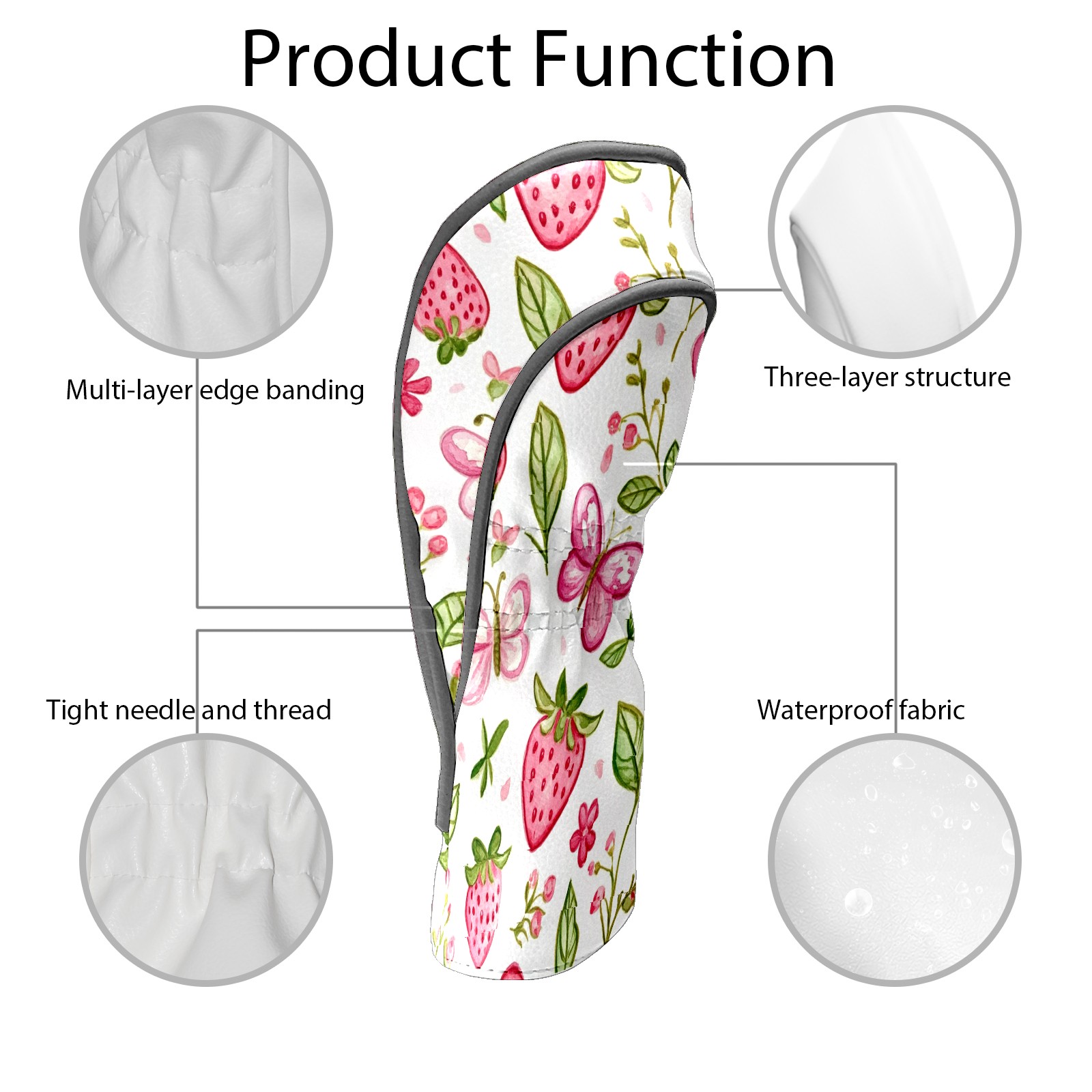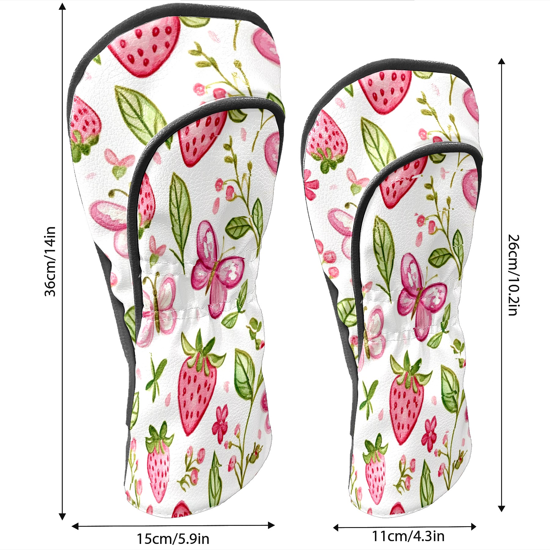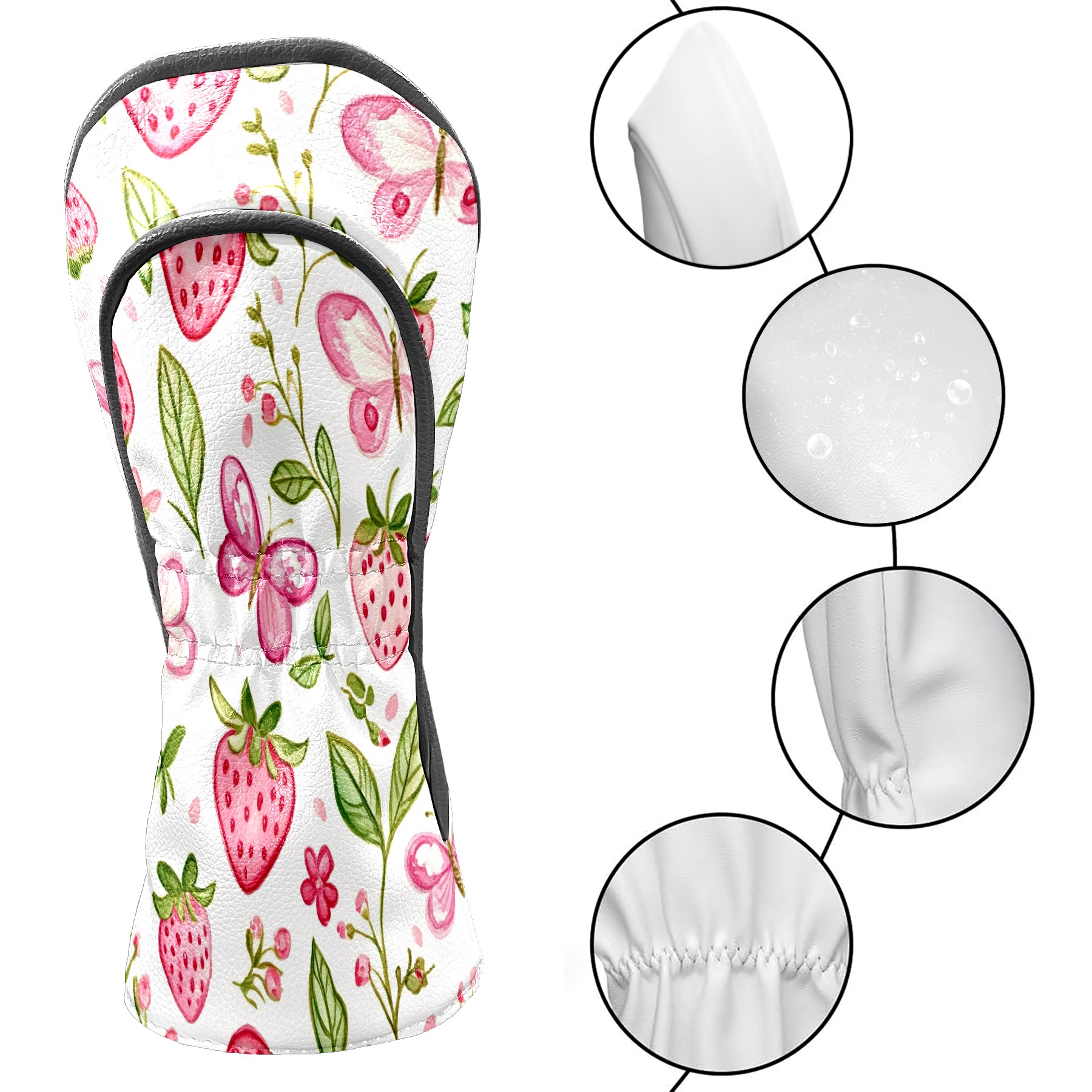 Golf Club Head Cover Waterproof Leather for Driver & Fairway Wood, Driver Headcovers, Golf Accessories for Men Women, Anti-Scratch, Golf Gift for Golfers, 1/3/5 Wood Cover Pink Strawberry And Butterfly