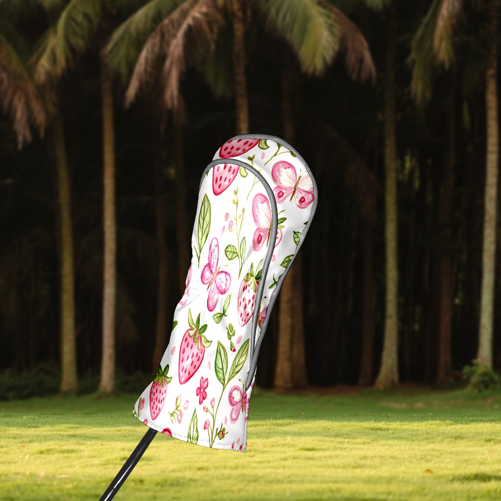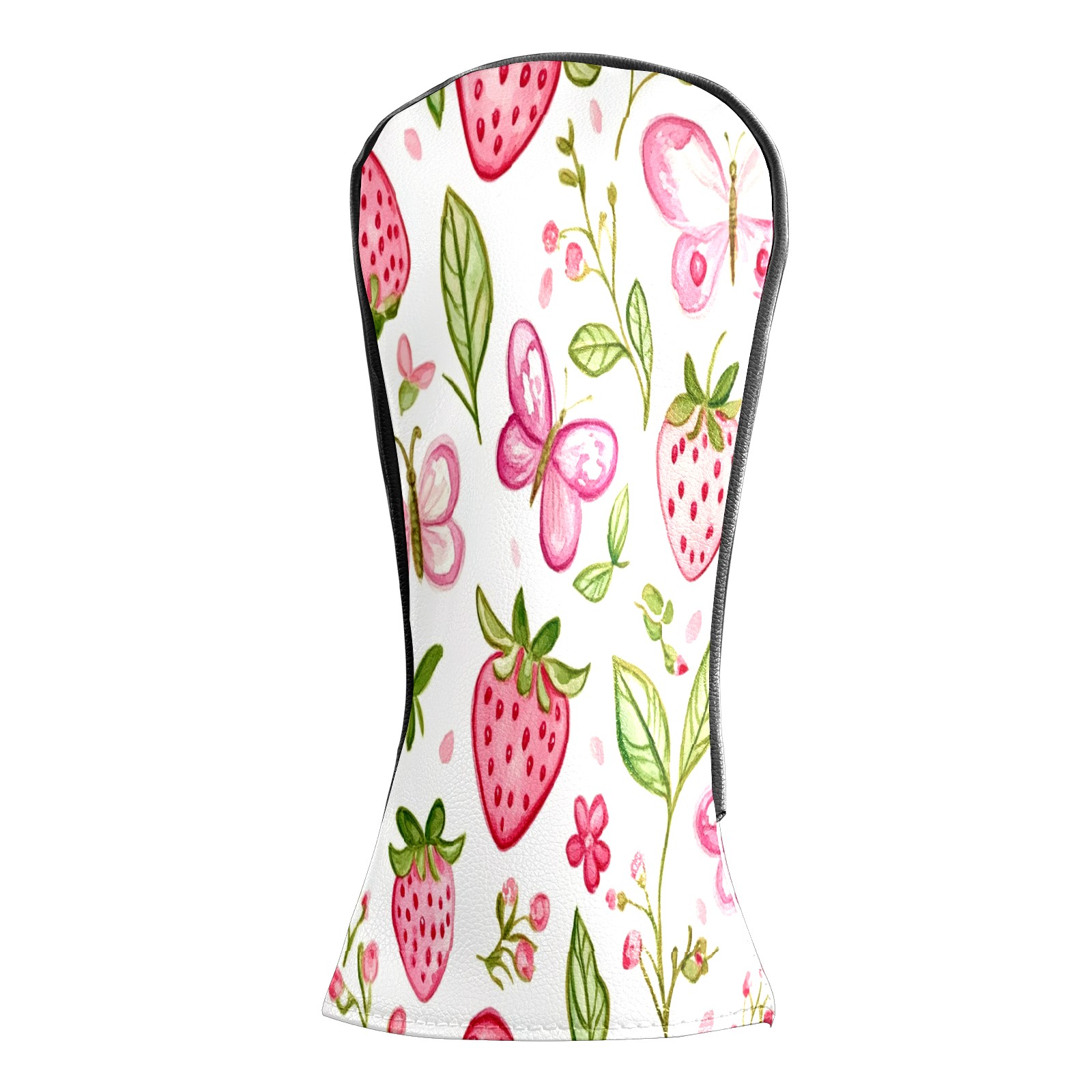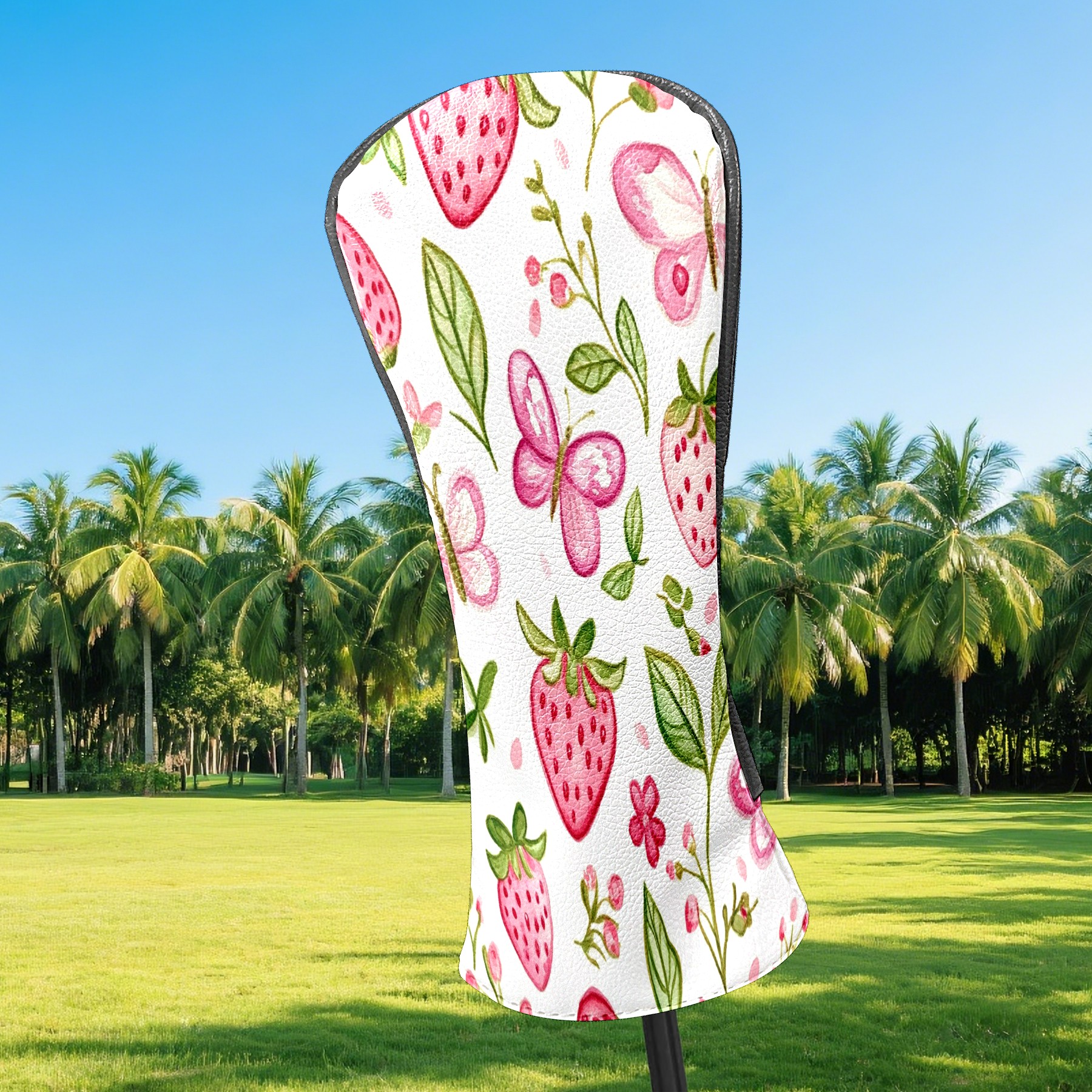 Golf Club Head Cover Waterproof Leather for Driver & Fairway Wood, Driver Headcovers, Golf Accessories for Men Women, Anti-Scratch, Golf Gift for Golfers, 1/3/5 Wood Cover Pink Strawberry And Butterfly