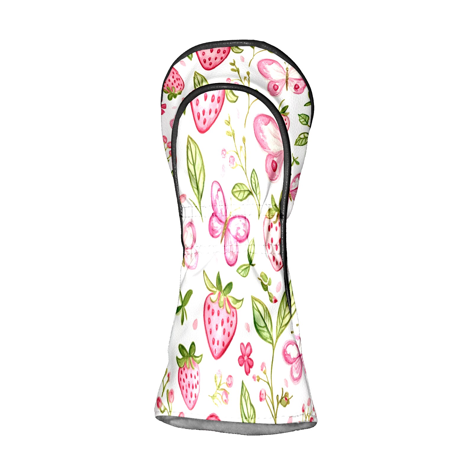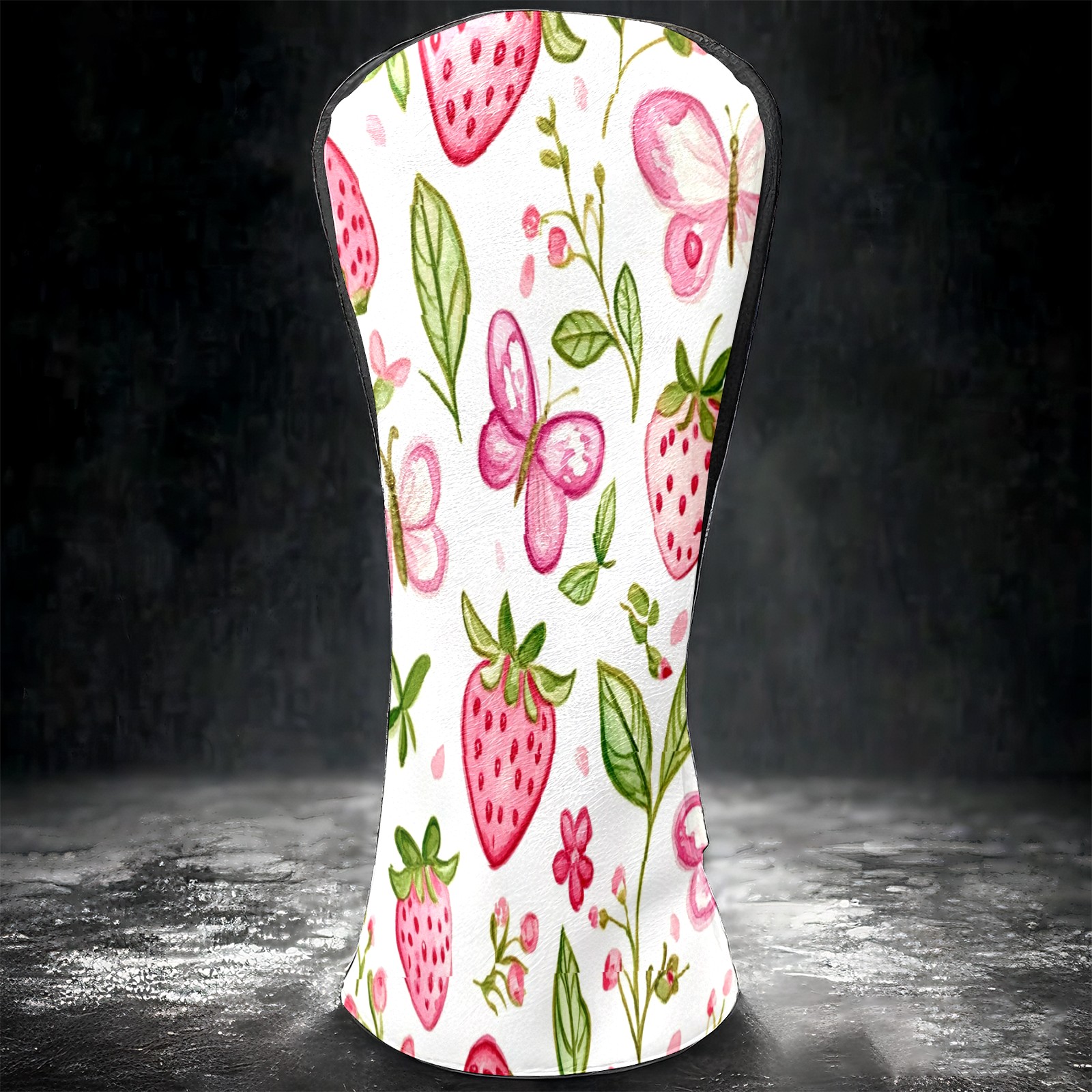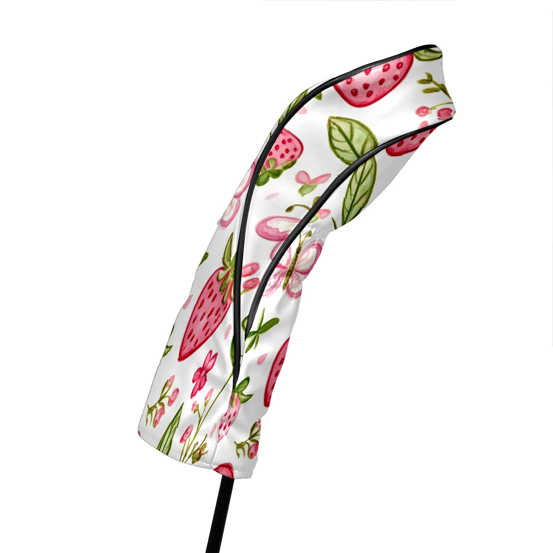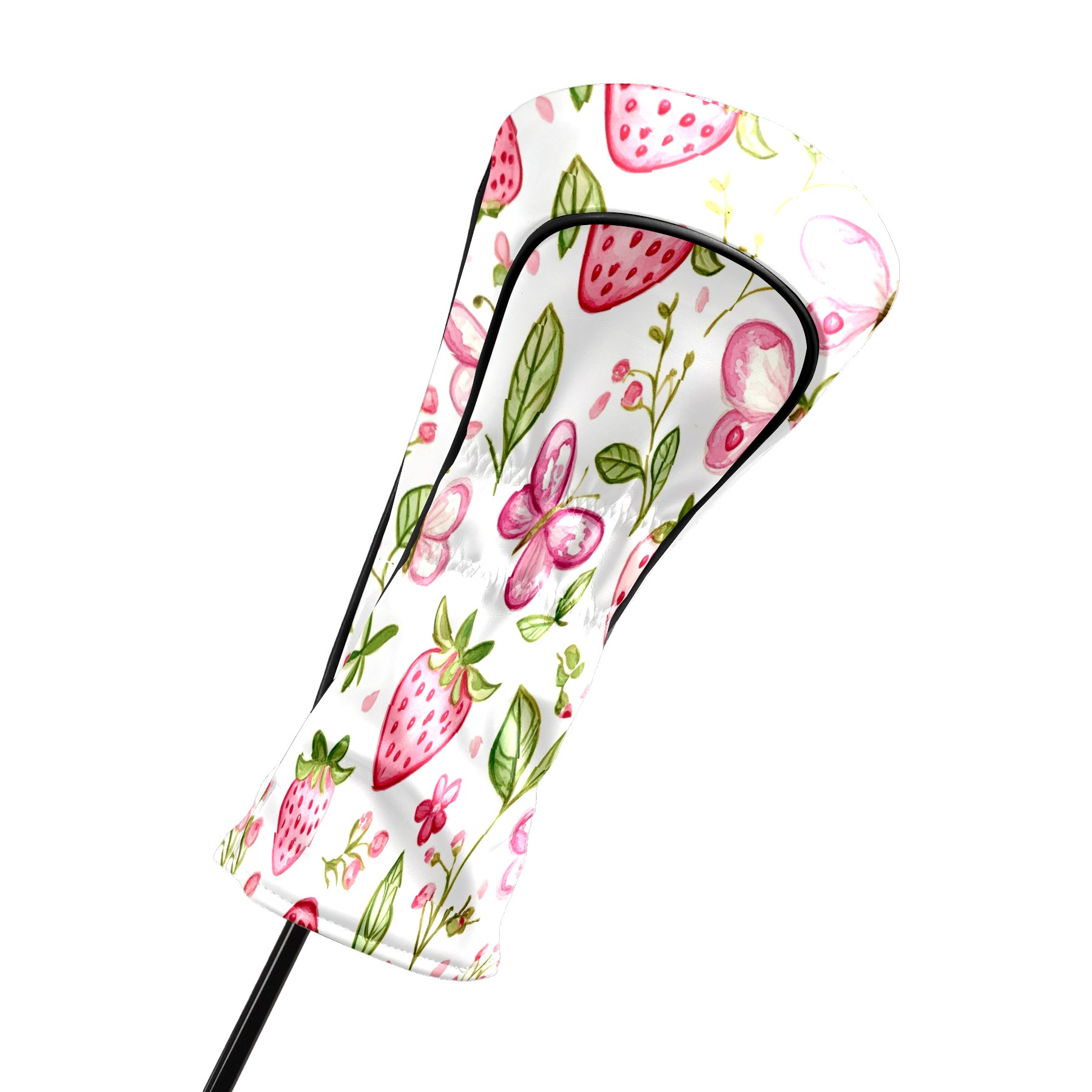 Golf Club Head Cover Waterproof Leather for Driver & Fairway Wood, Driver Headcovers, Golf Accessories for Men Women, Anti-Scratch, Golf Gift for Golfers, 1/3/5 Wood Cover Pink Strawberry And Butterfly