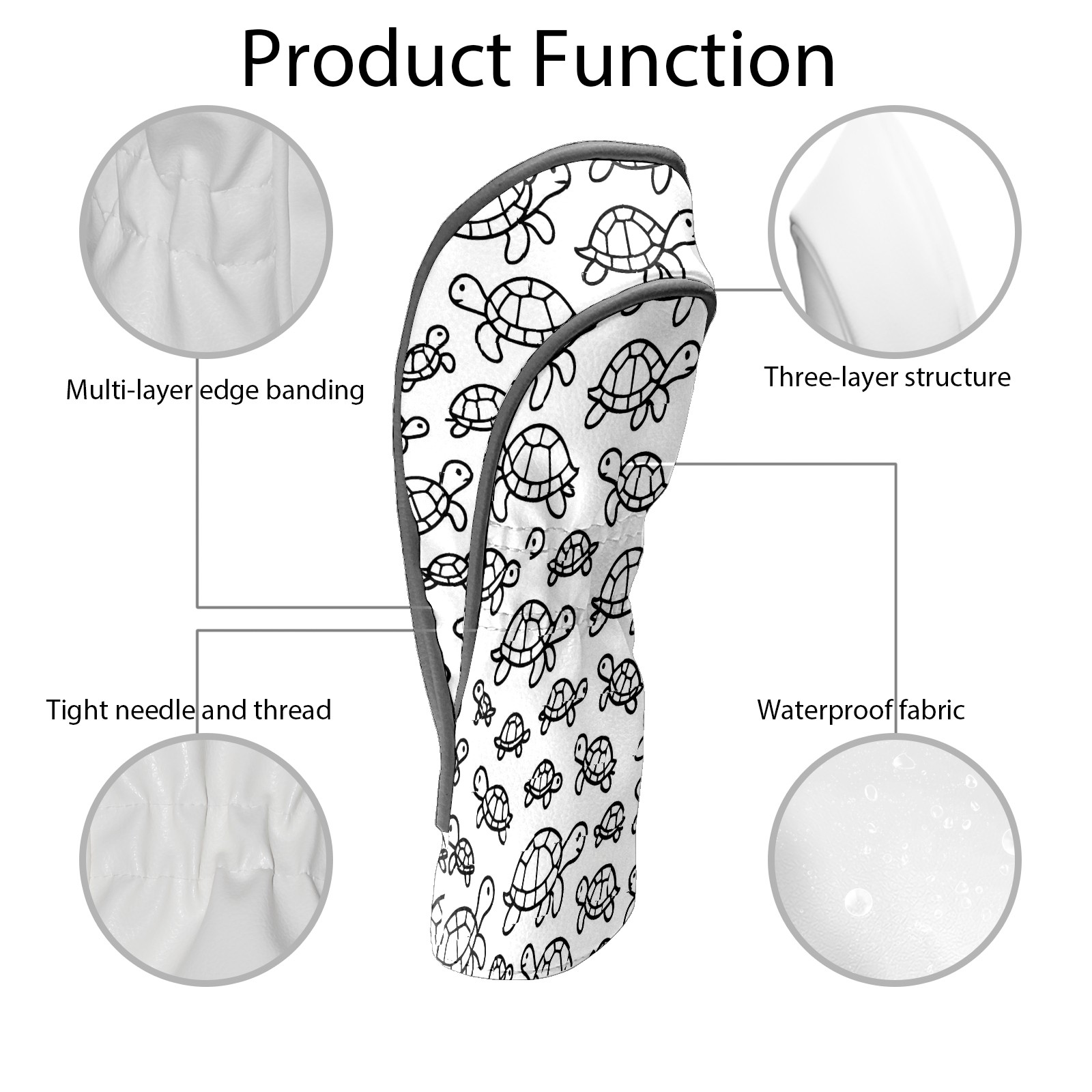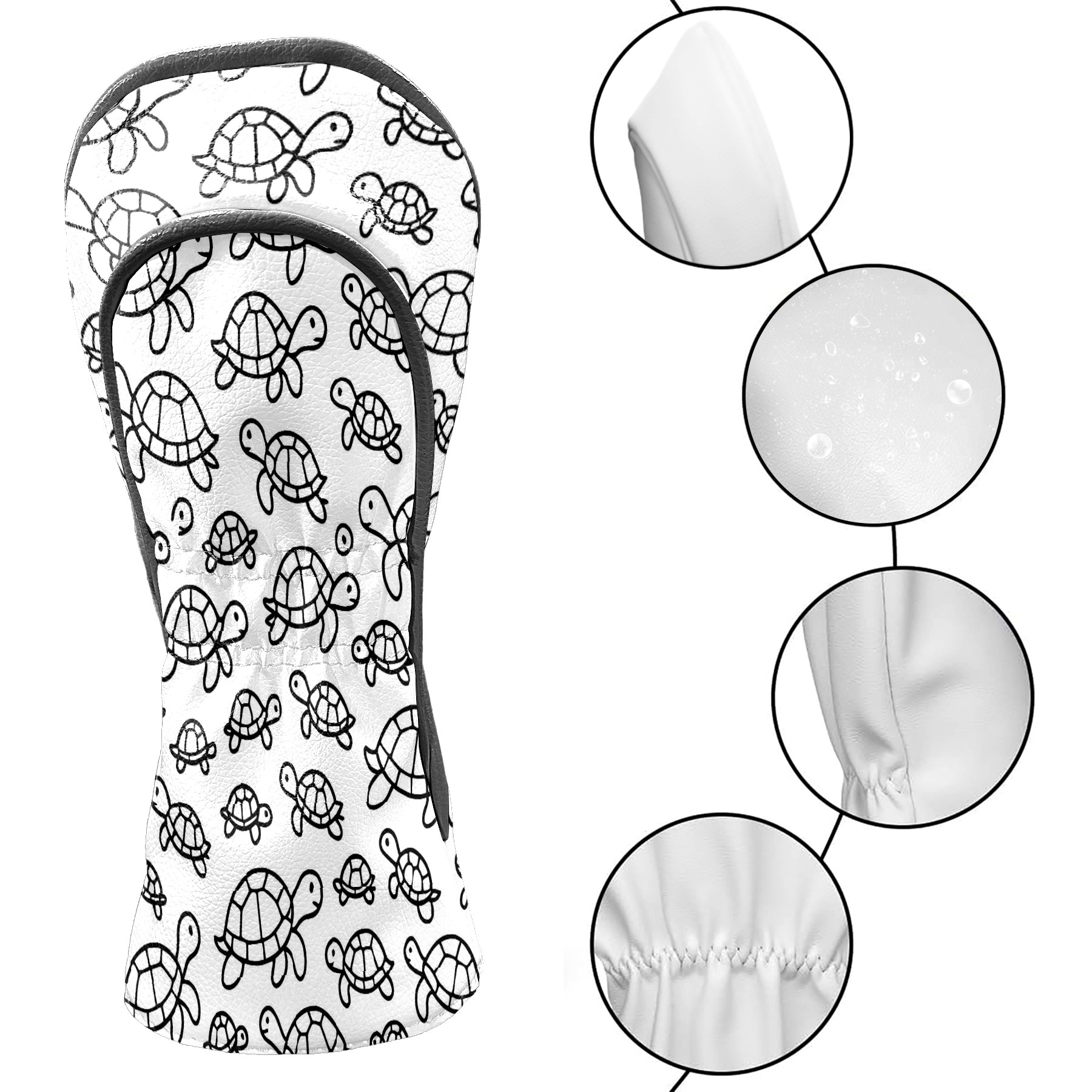Golf Club Head Cover Waterproof Leather for Driver & Fairway Wood, Driver Headcovers, Golf Accessories for Men Women, Anti-Scratch, Golf Gift for Golfers, 1/3/5 Wood Cover Minimalist Turtle White