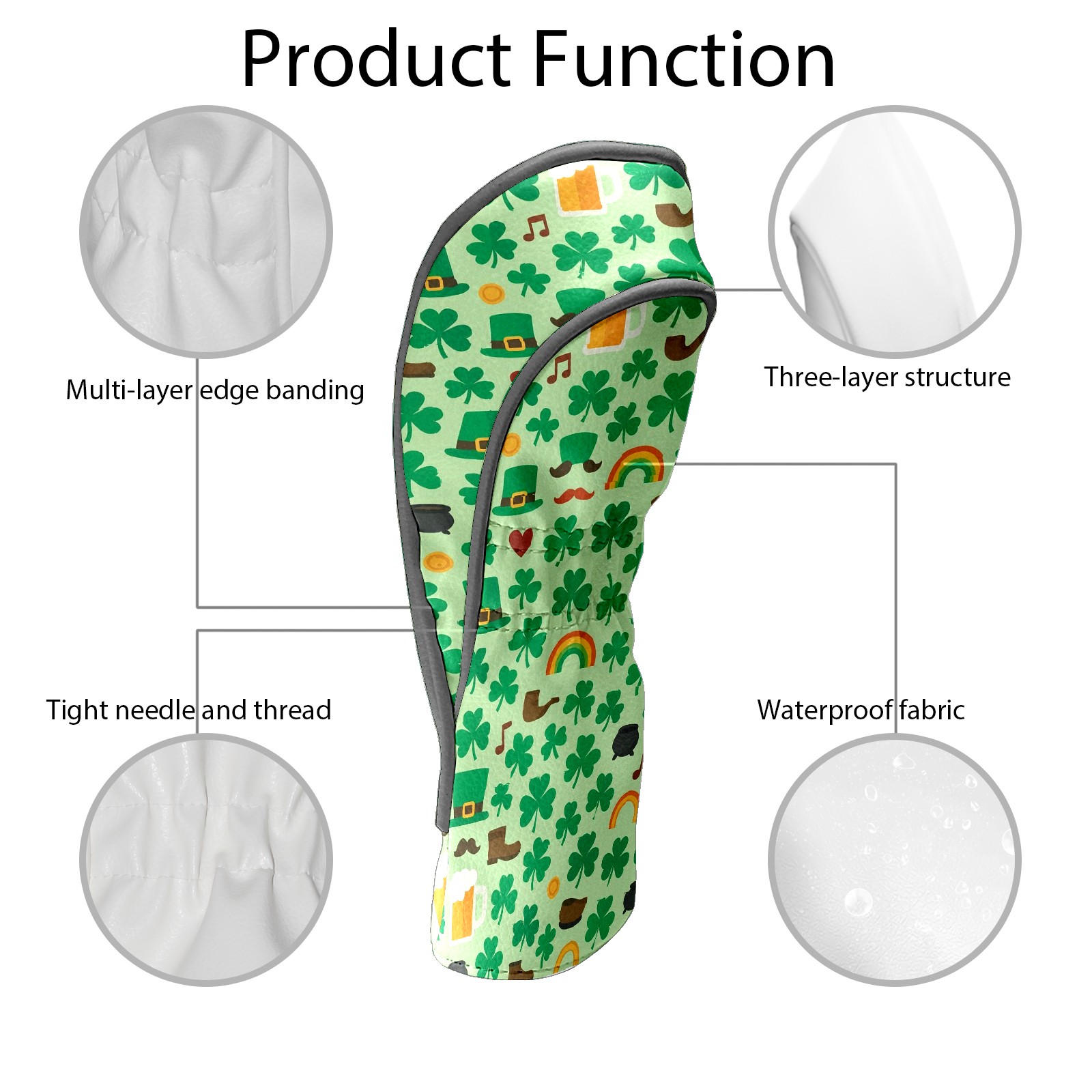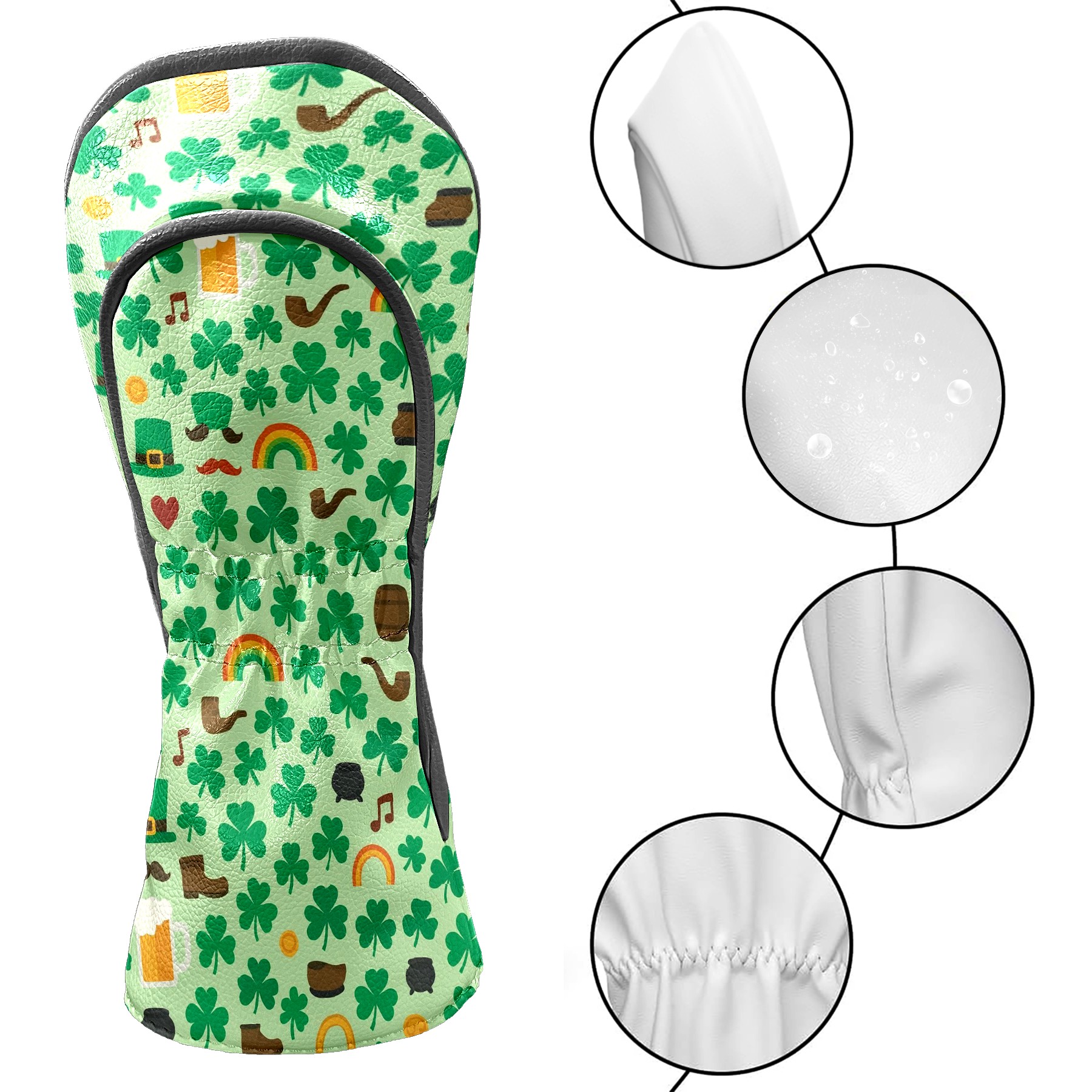 Golf Club Head Cover Waterproof Leather for Driver & Fairway Wood, Driver Headcovers, Golf Accessories for Men Women, Anti-Scratch, Golf Gift for Golfers, 1/3/5 Wood Cover Lucky Clover Green