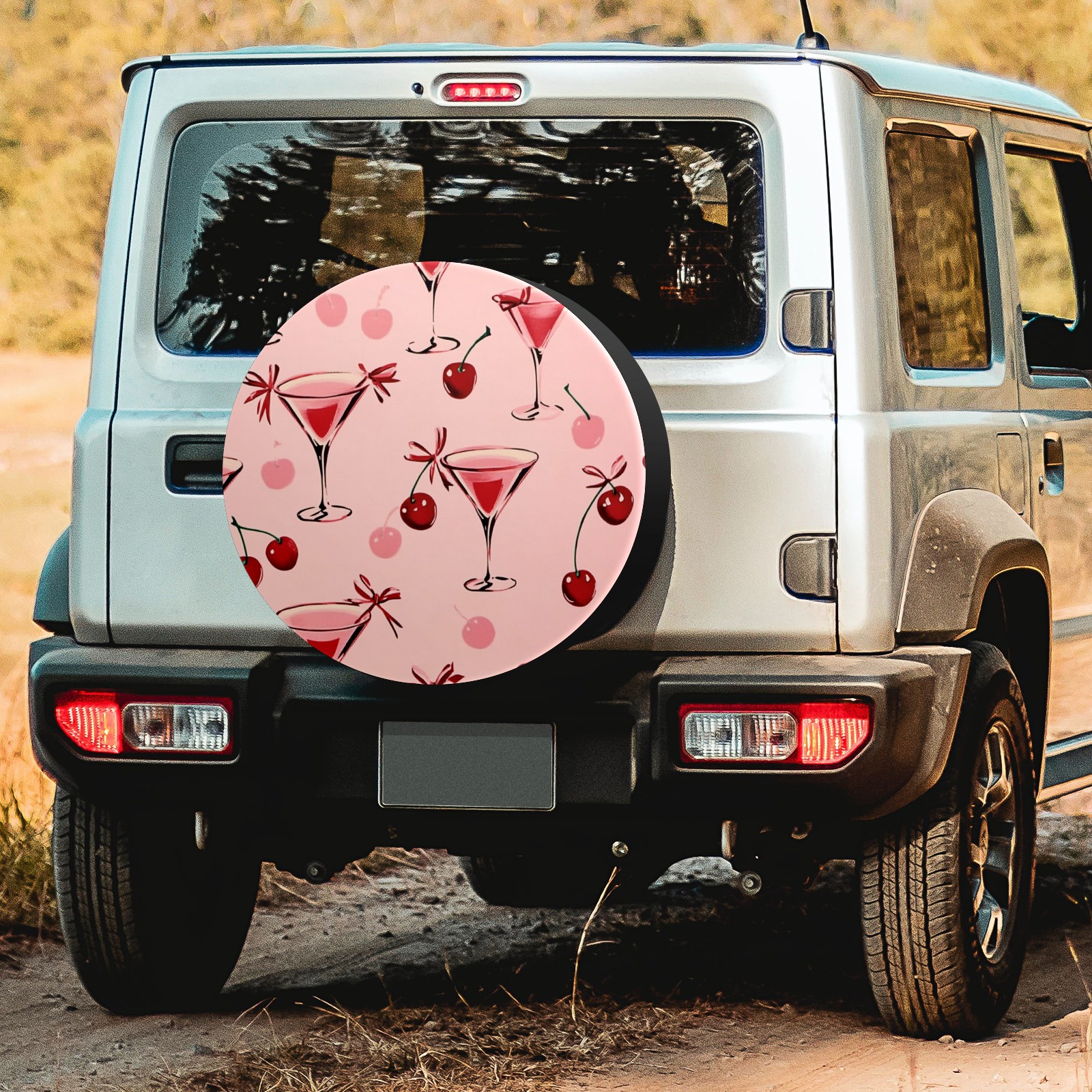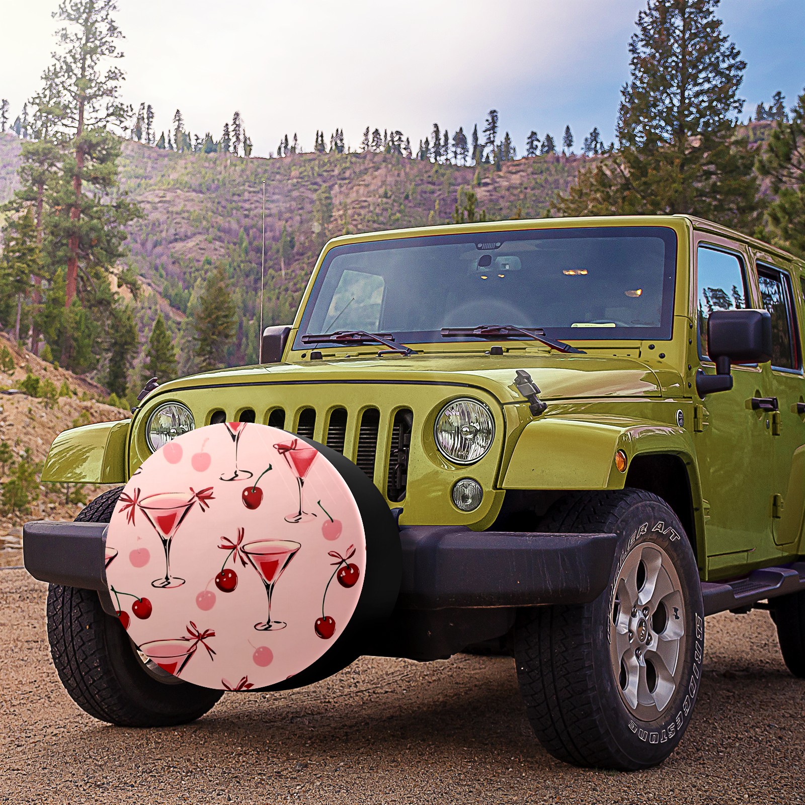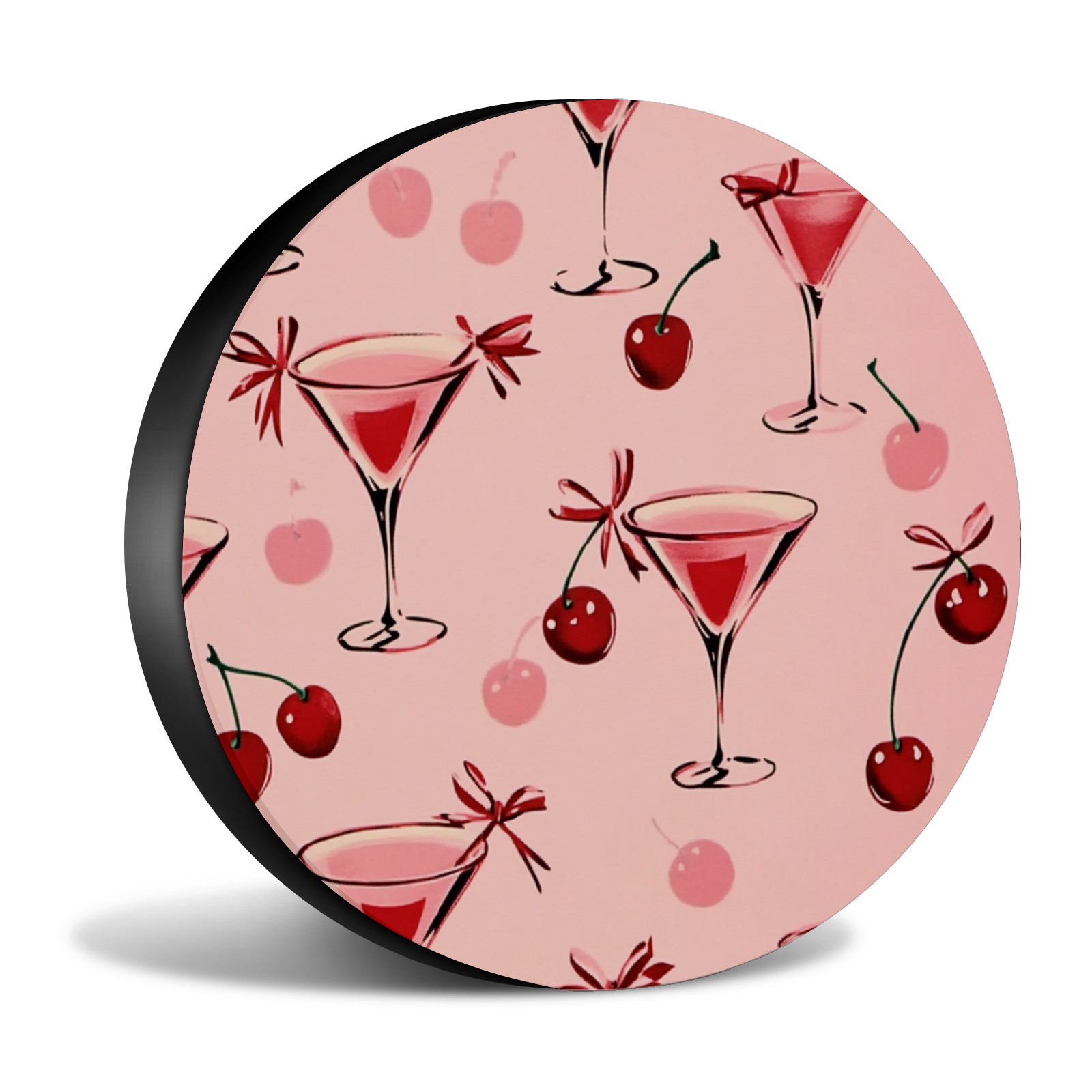 Red Cherries And Glasses Spare Tire Cover, Waterproof Wheel Protector Universal Fits for Truck SUV RV Trailer Camper (14 Inch)