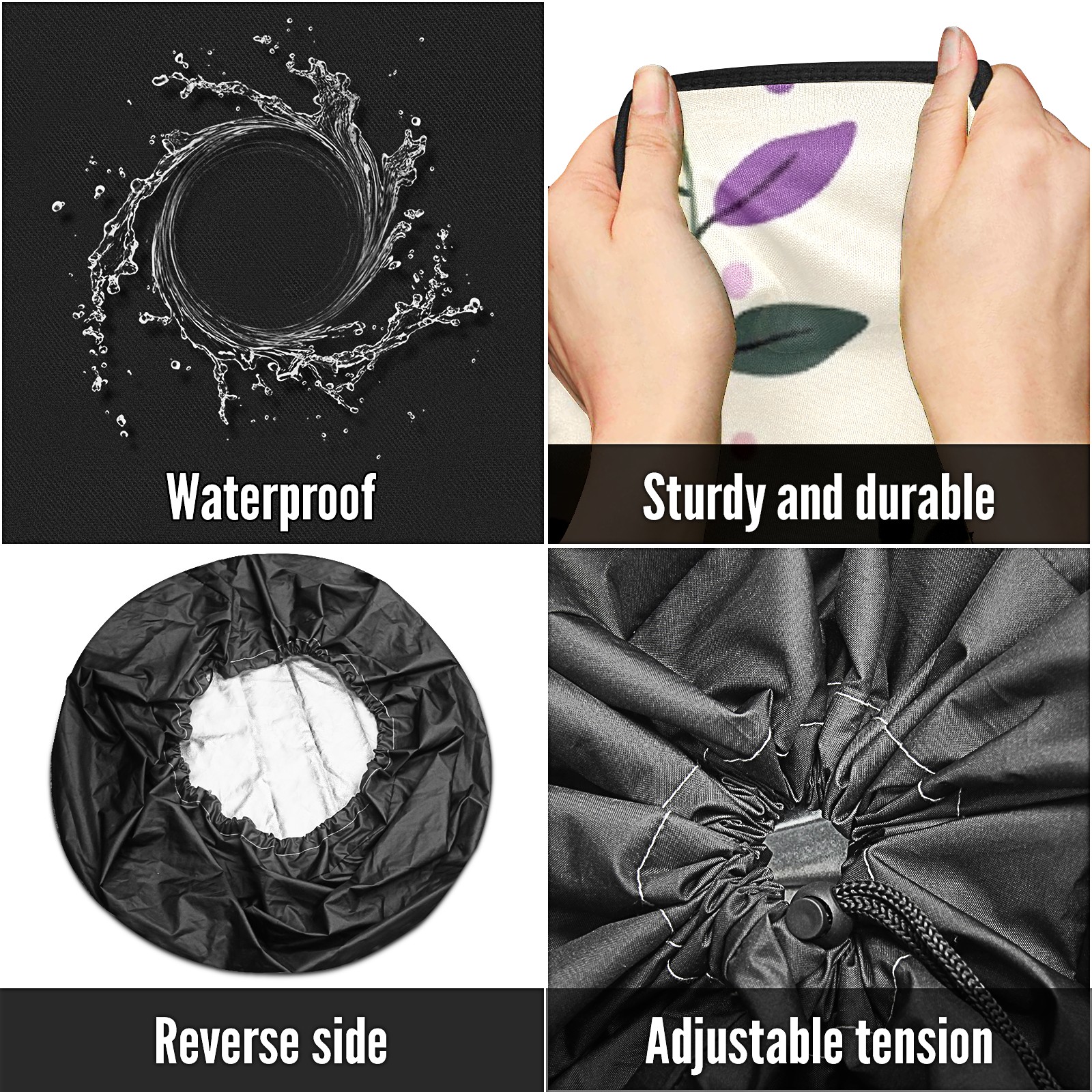 • <p>Keep your spare tire protected and your vehicle looking sharp with our universal Tire Cover. Designed with a sleek single-sided print and classic black sides, this rugged cover is made from high-quality polyester fabric that is fully waterproof. The adjustable nylon rope ensures a secure, custom fit for any tire, helping to maintain a clean and professional appearance for your vehicle.</p>
