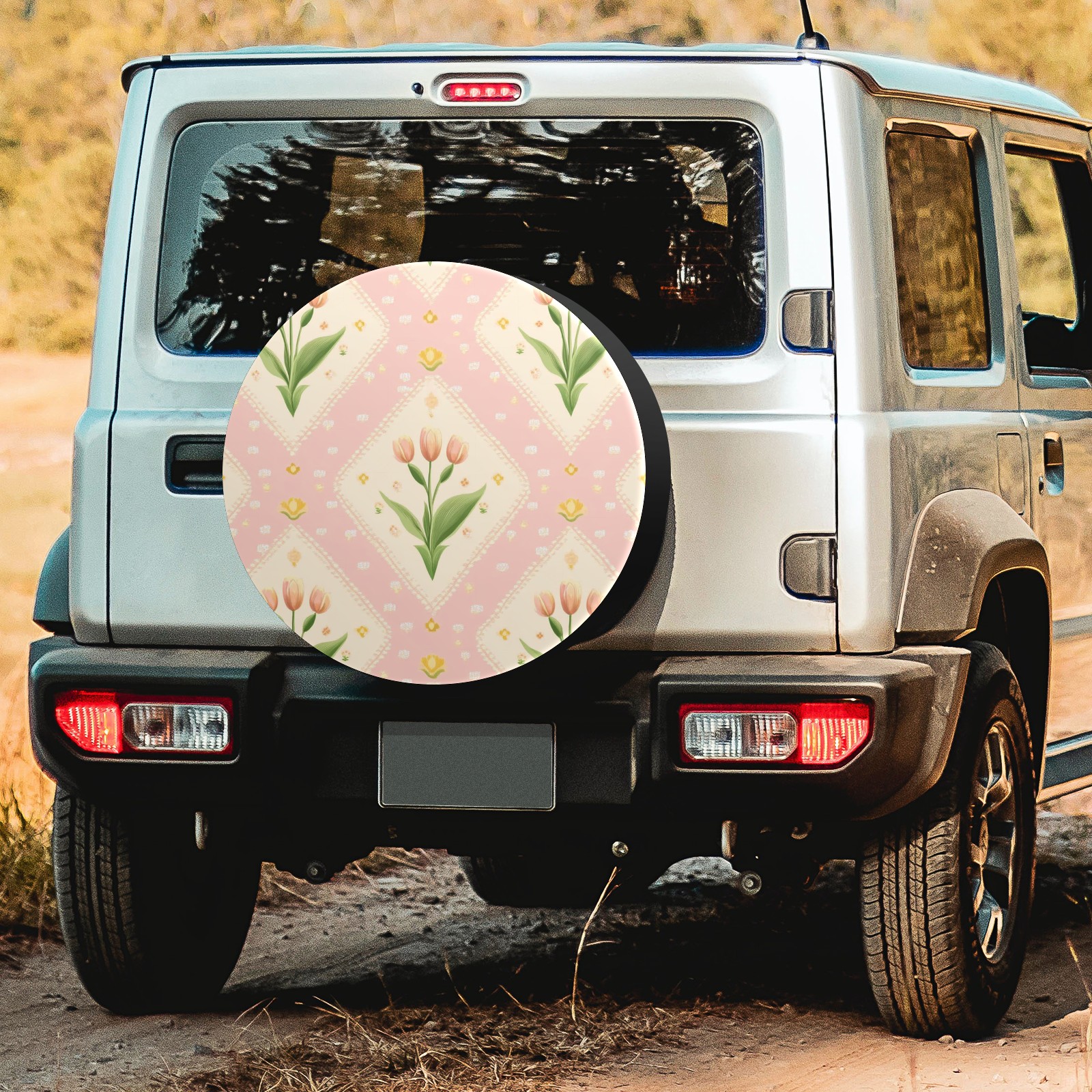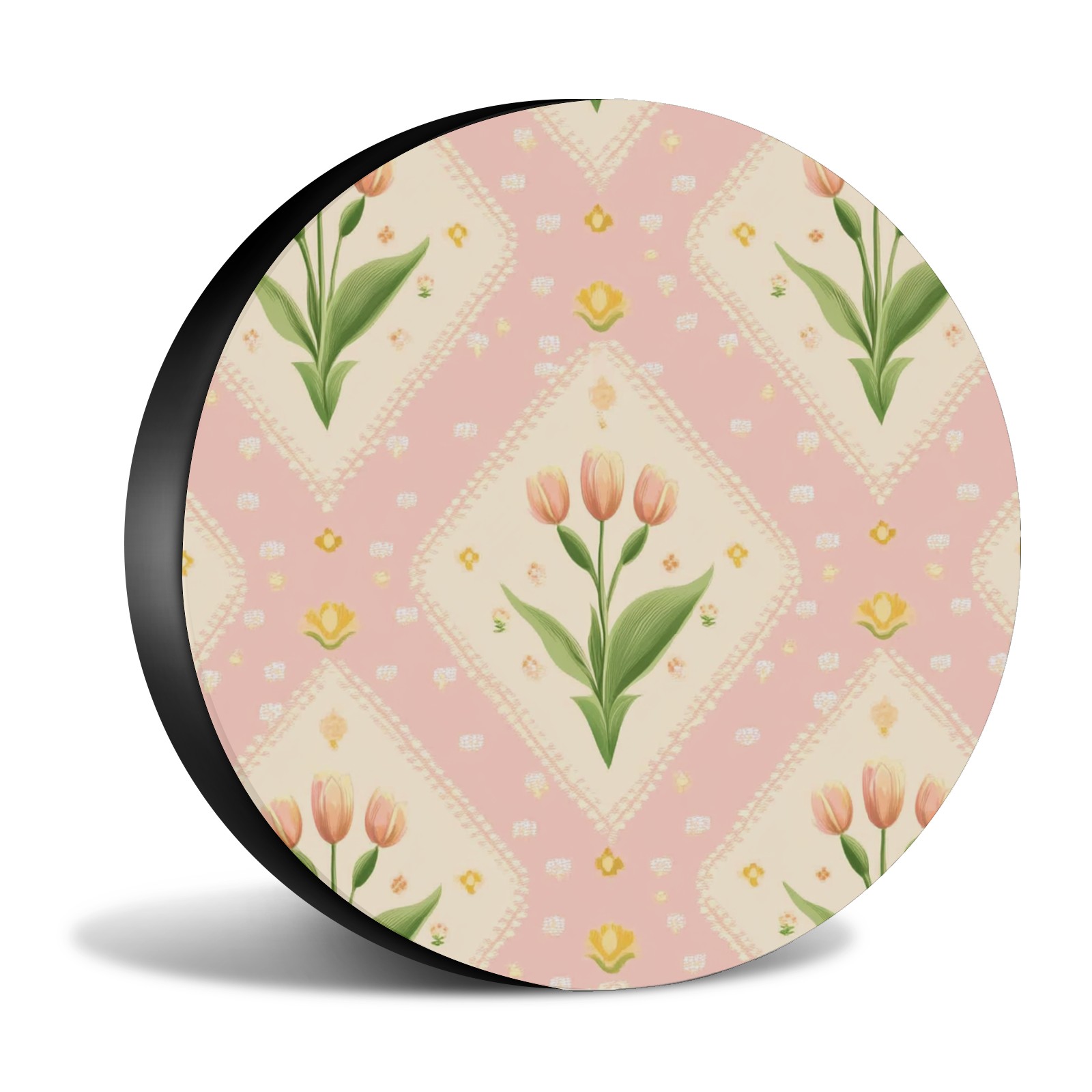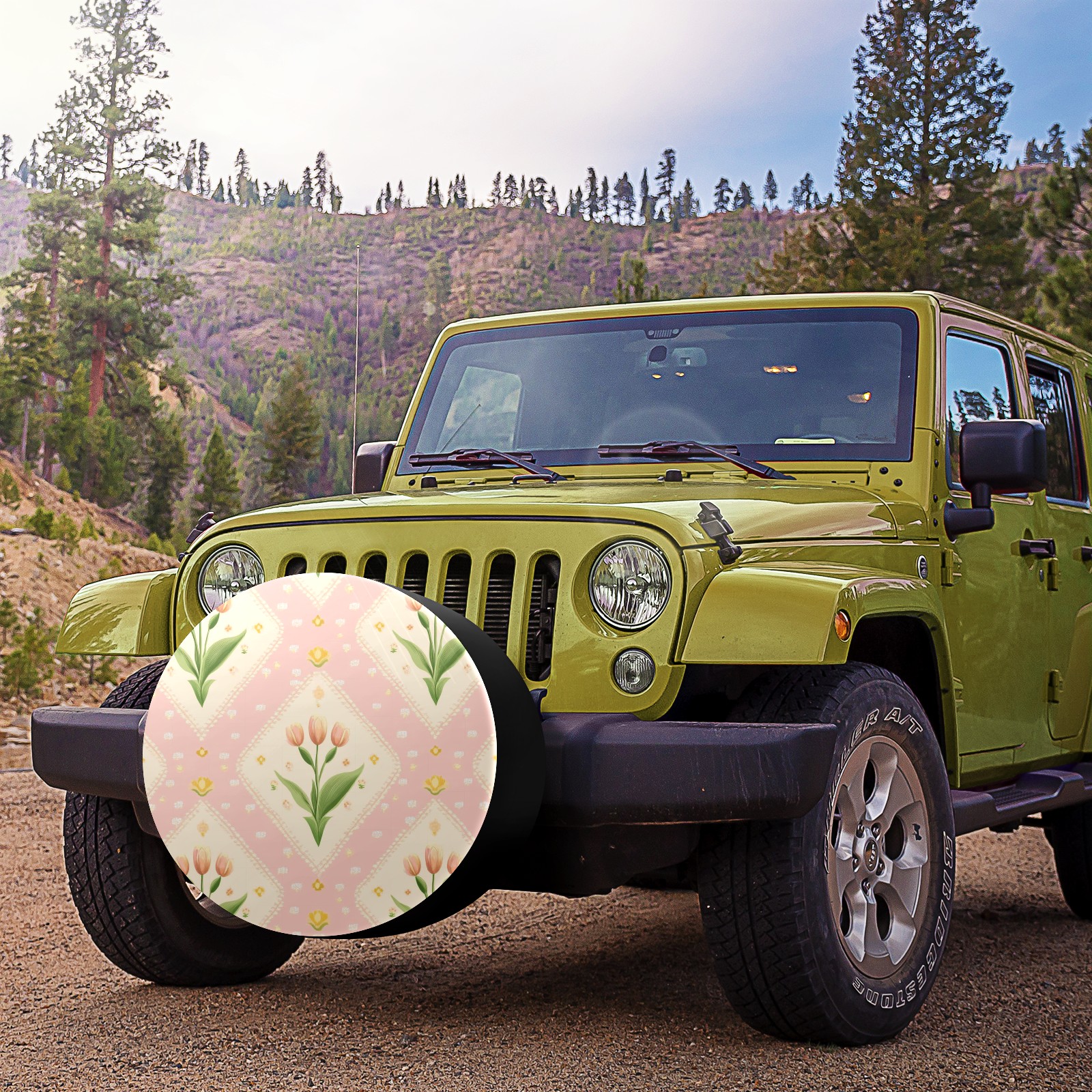 Small Tulips Spare Tire Cover, Waterproof Wheel Protector Universal Fits for Truck SUV RV Trailer Camper (14 Inch)