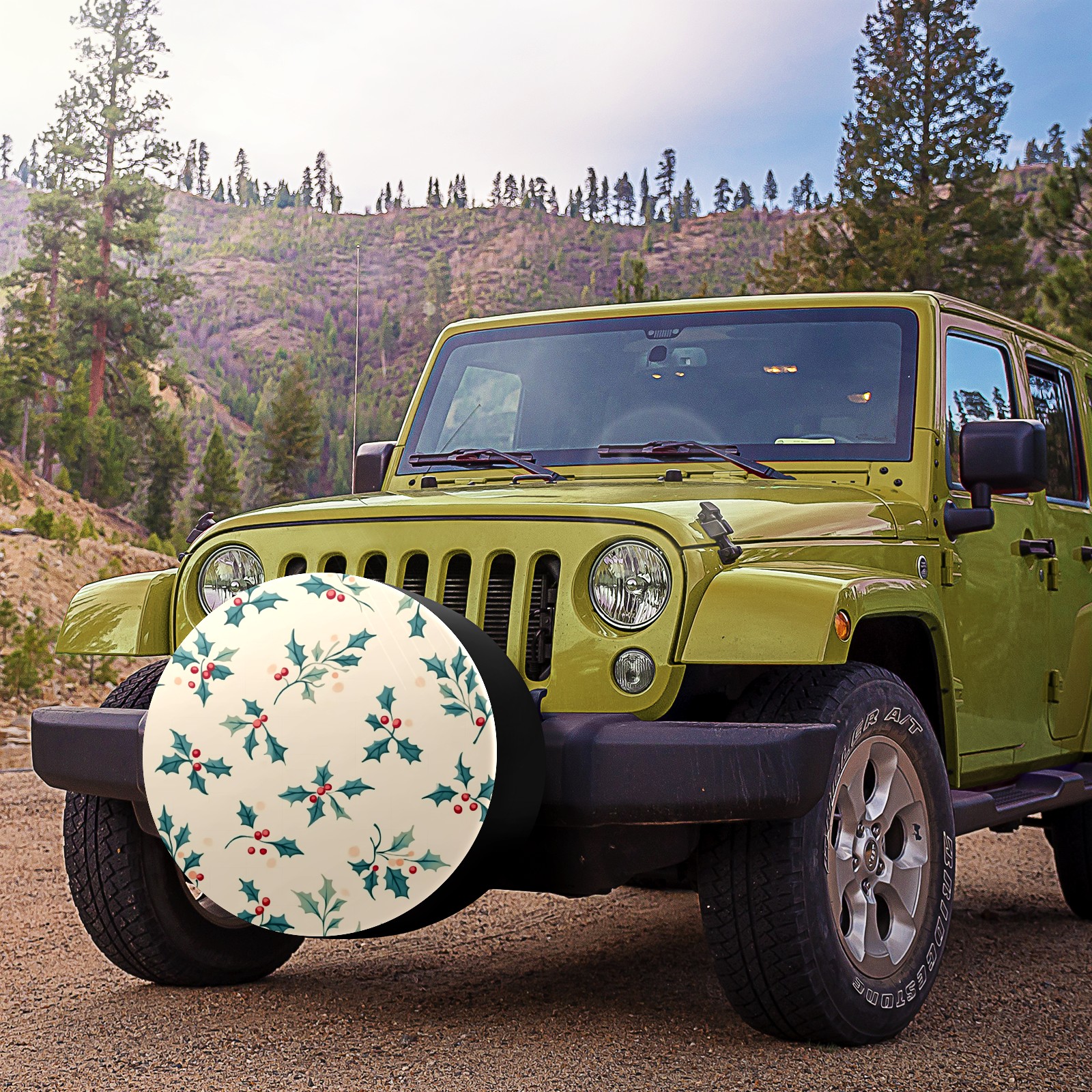 Small Holly Leaves Spare Tire Cover, Waterproof Wheel Protector Universal Fits for Truck SUV RV Trailer Camper (14 Inch)