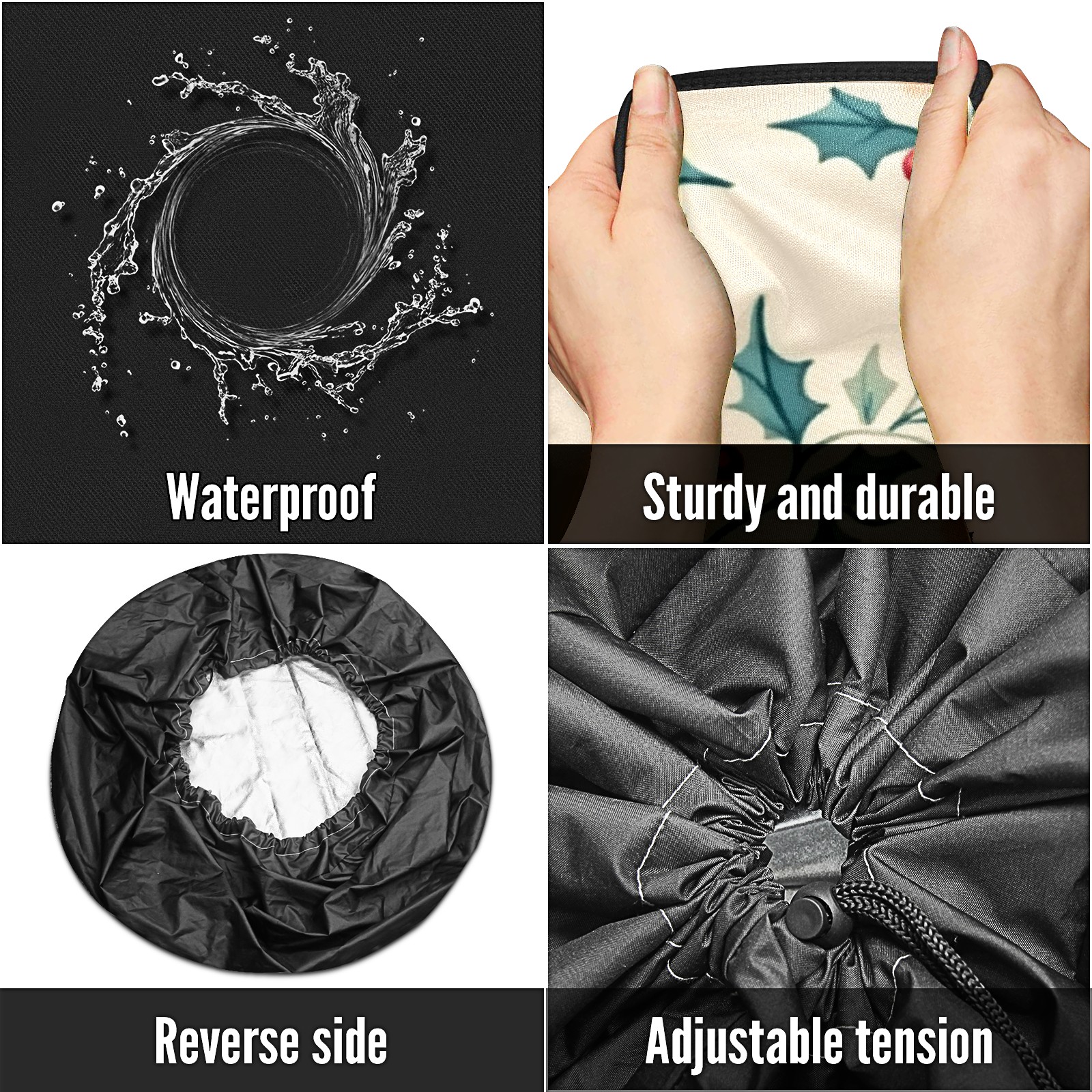 • <p>Keep your spare tire protected and your vehicle looking sharp with our universal Tire Cover. Designed with a sleek single-sided print and classic black sides, this rugged cover is made from high-quality polyester fabric that is fully waterproof. The adjustable nylon rope ensures a secure, custom fit for any tire, helping to maintain a clean and professional appearance for your vehicle.</p>