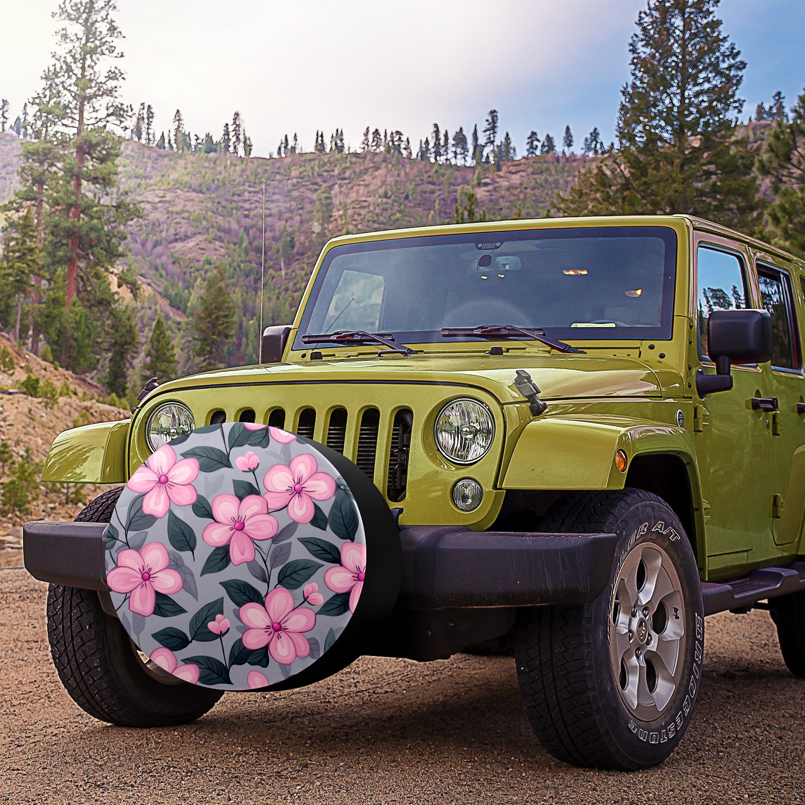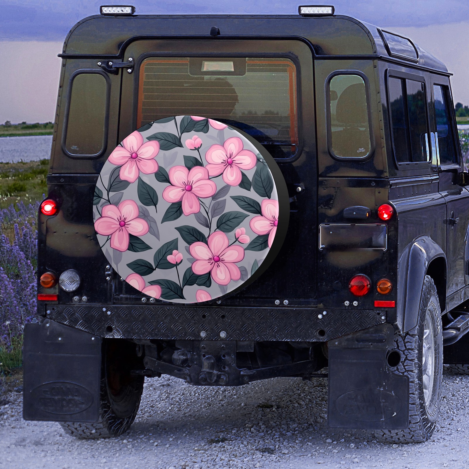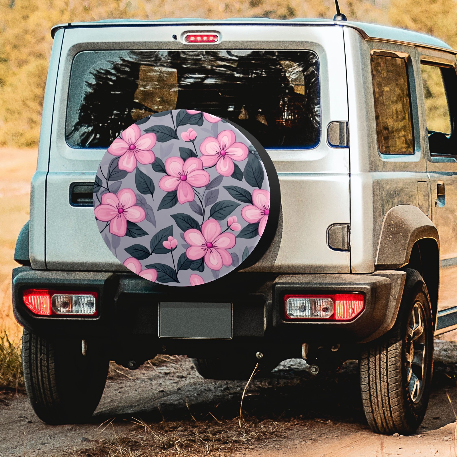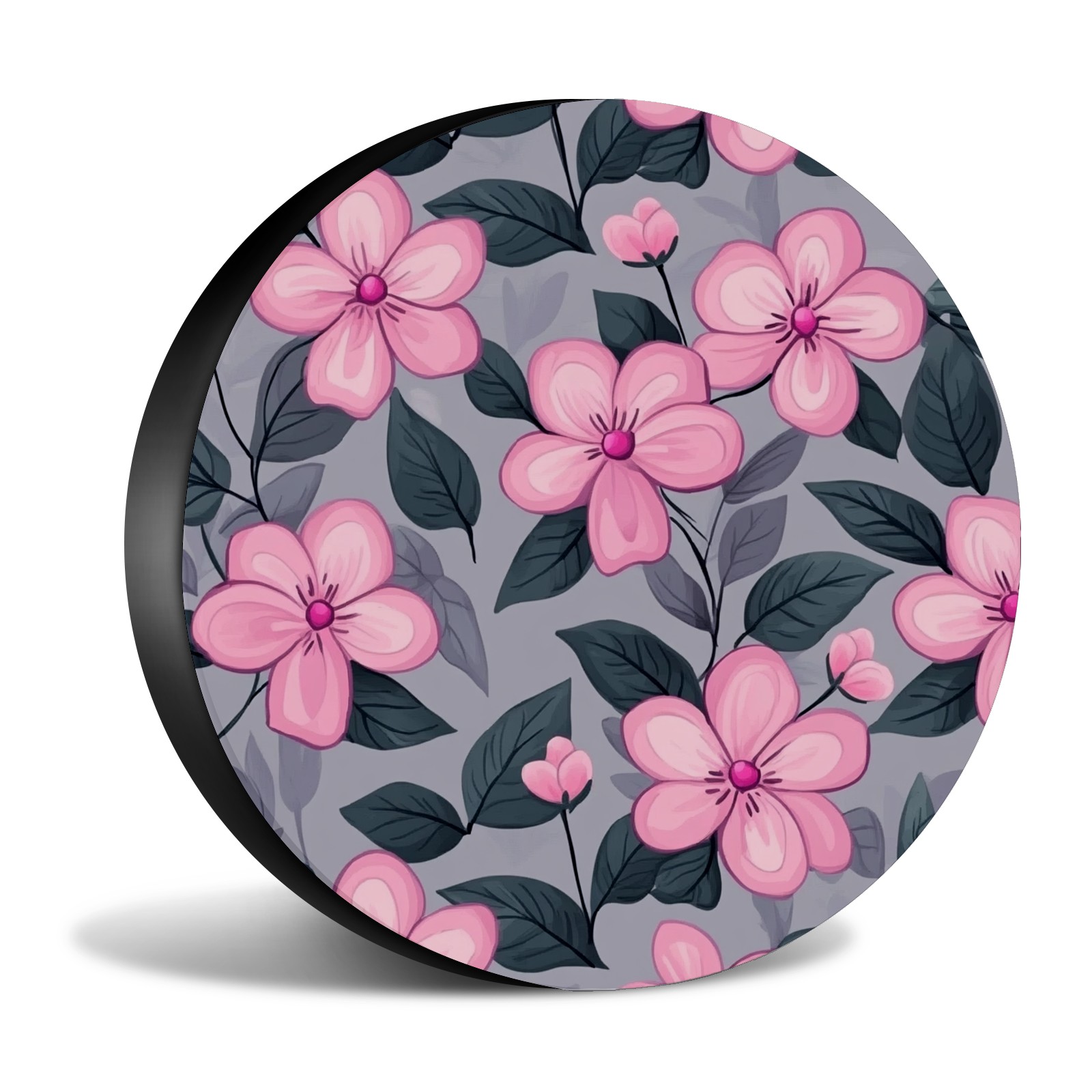 Pink Flowers Spare Tire Cover, Waterproof Wheel Protector Universal Fits for Truck SUV RV Trailer Camper (14 Inch)