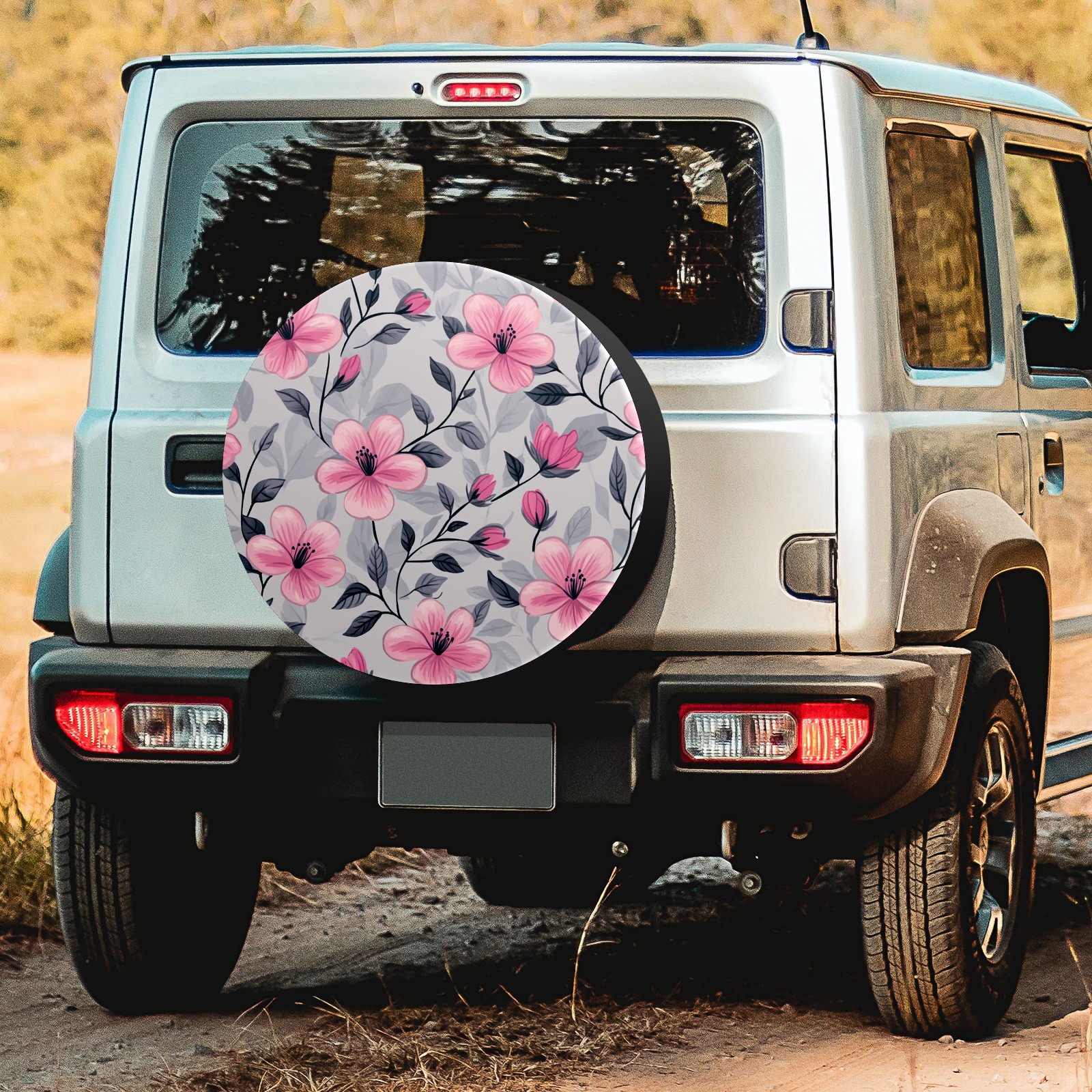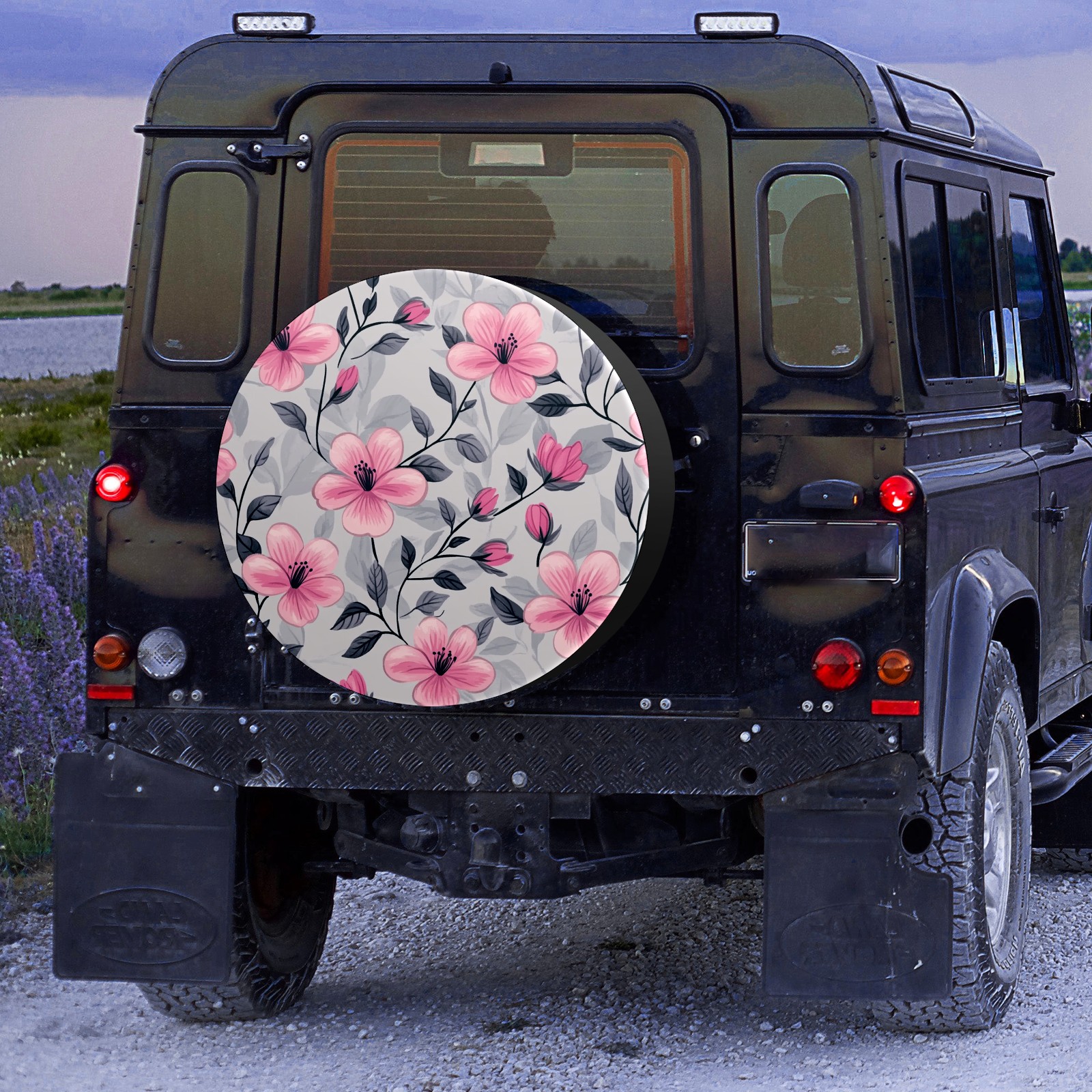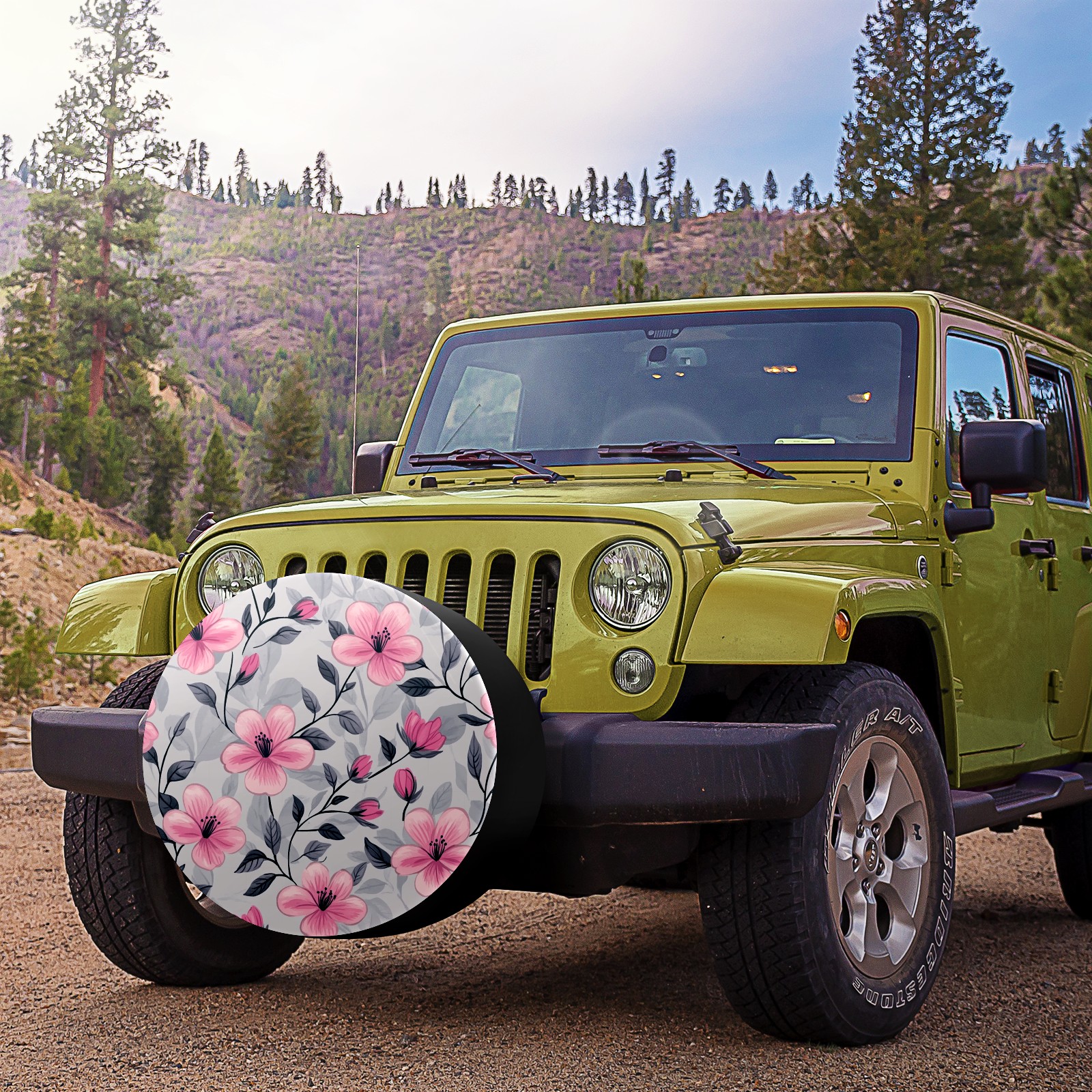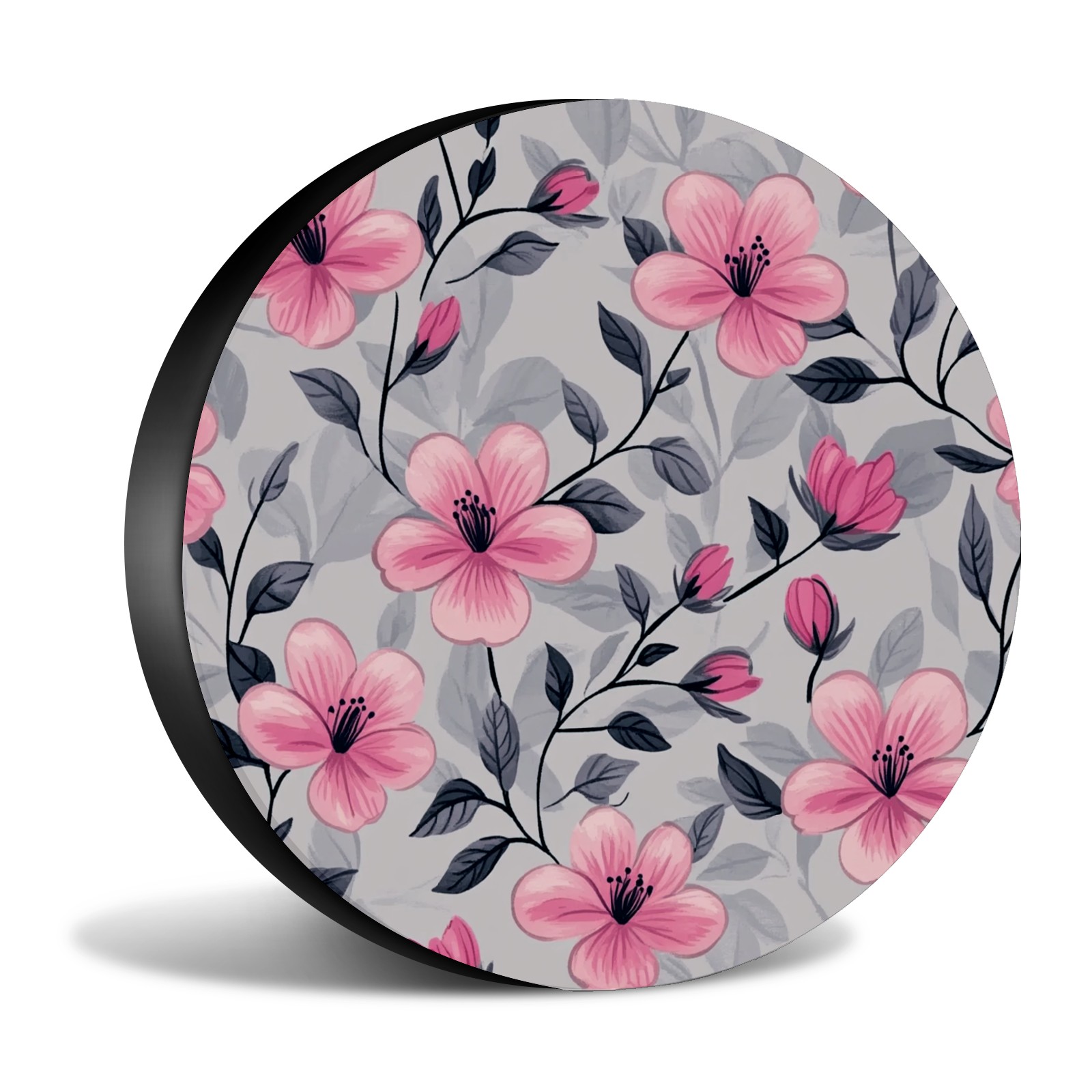 Pink Flowers And Leaves Spare Tire Cover, Waterproof Wheel Protector Universal Fits for Truck SUV RV Trailer Camper (14 Inch)
