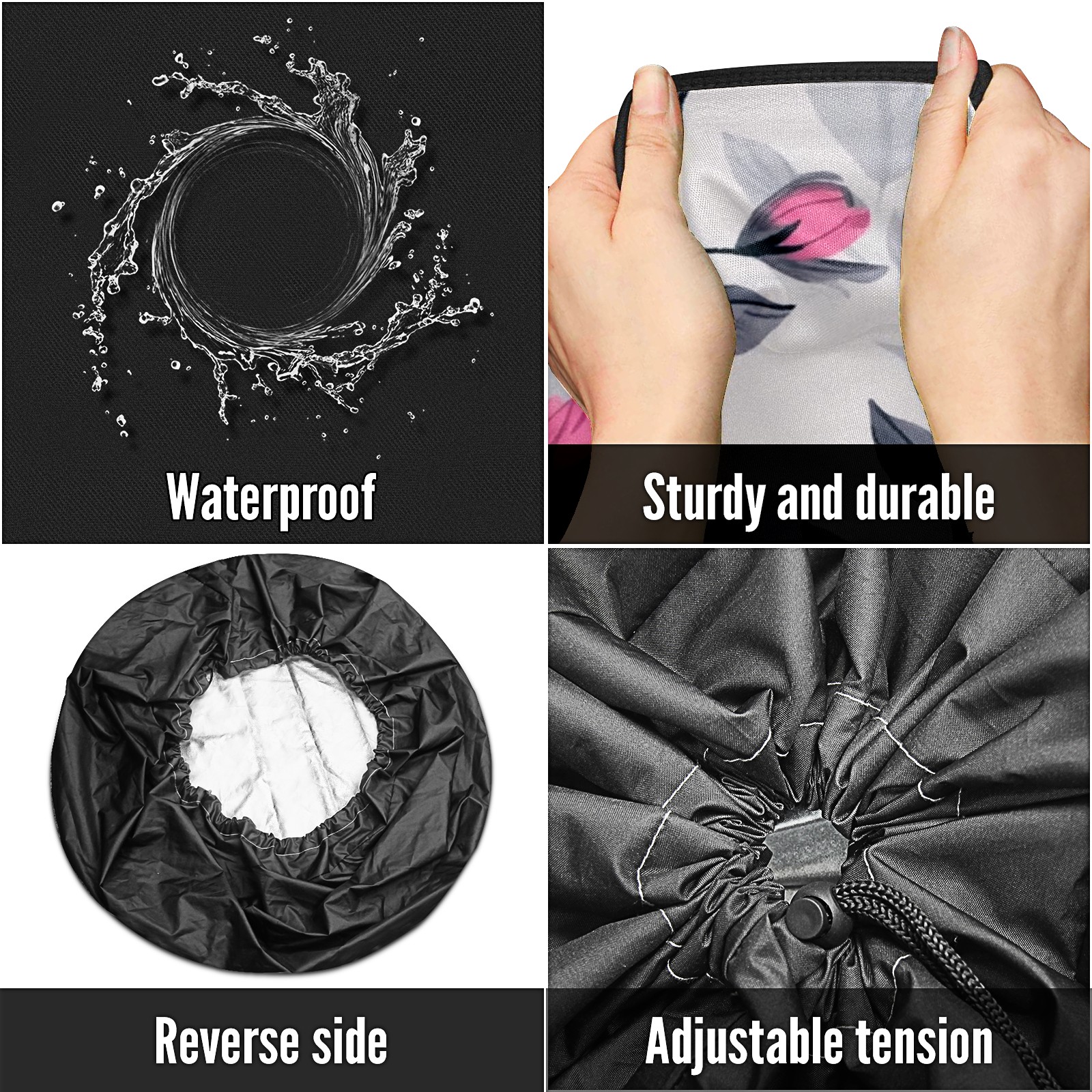 • <p>Keep your spare tire protected and your vehicle looking sharp with our universal Tire Cover. Designed with a sleek single-sided print and classic black sides, this rugged cover is made from high-quality polyester fabric that is fully waterproof. The adjustable nylon rope ensures a secure, custom fit for any tire, helping to maintain a clean and professional appearance for your vehicle.</p>