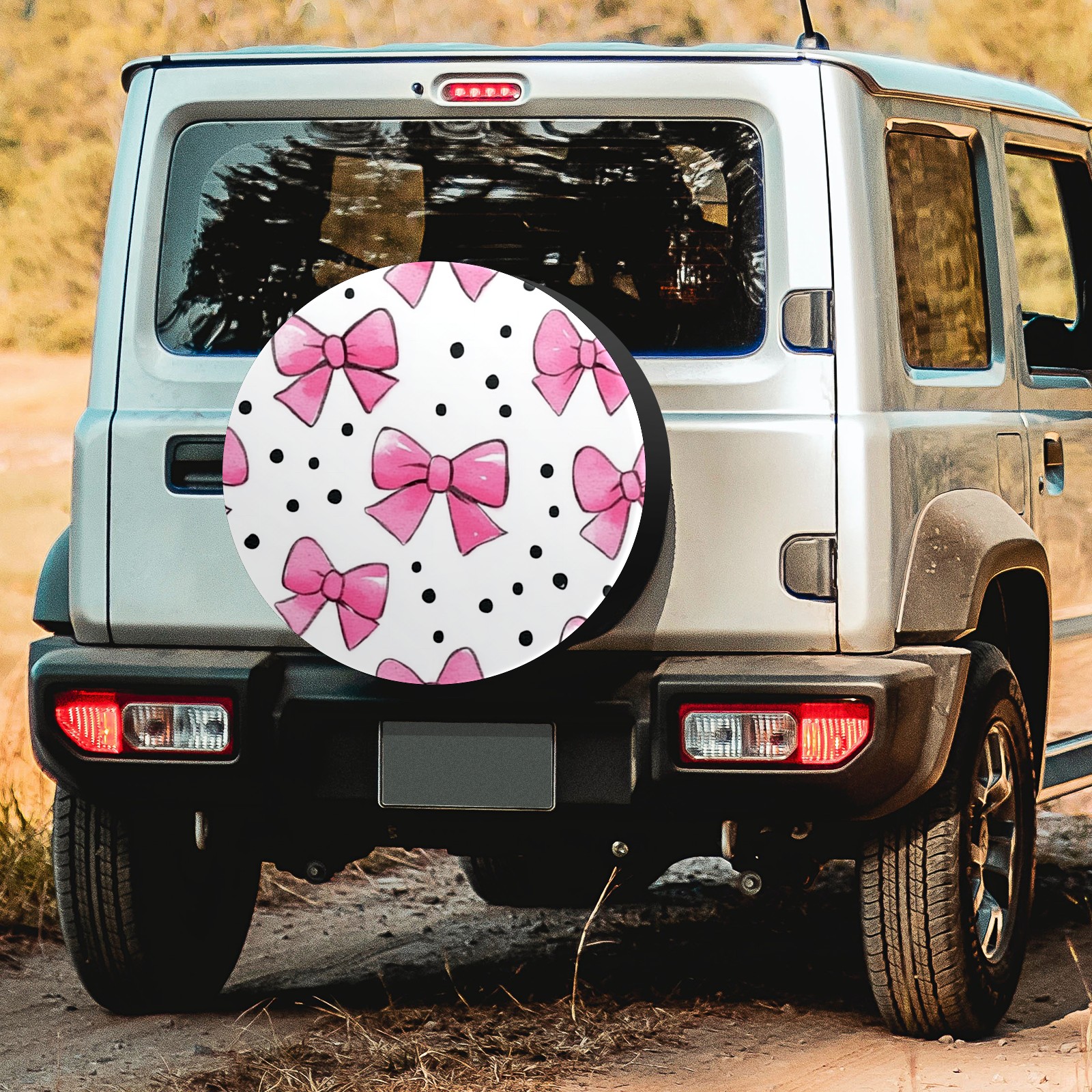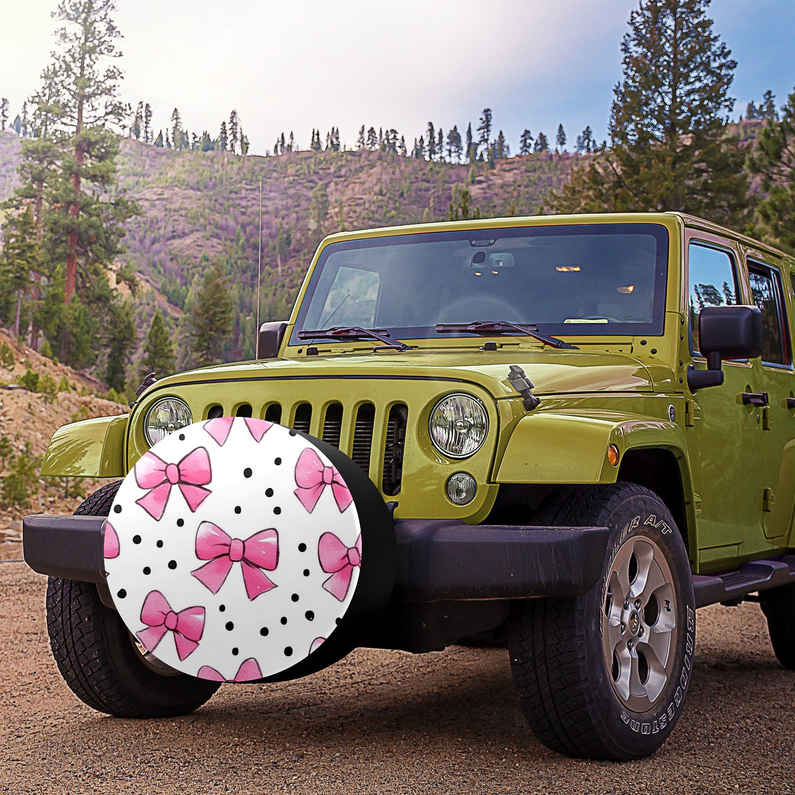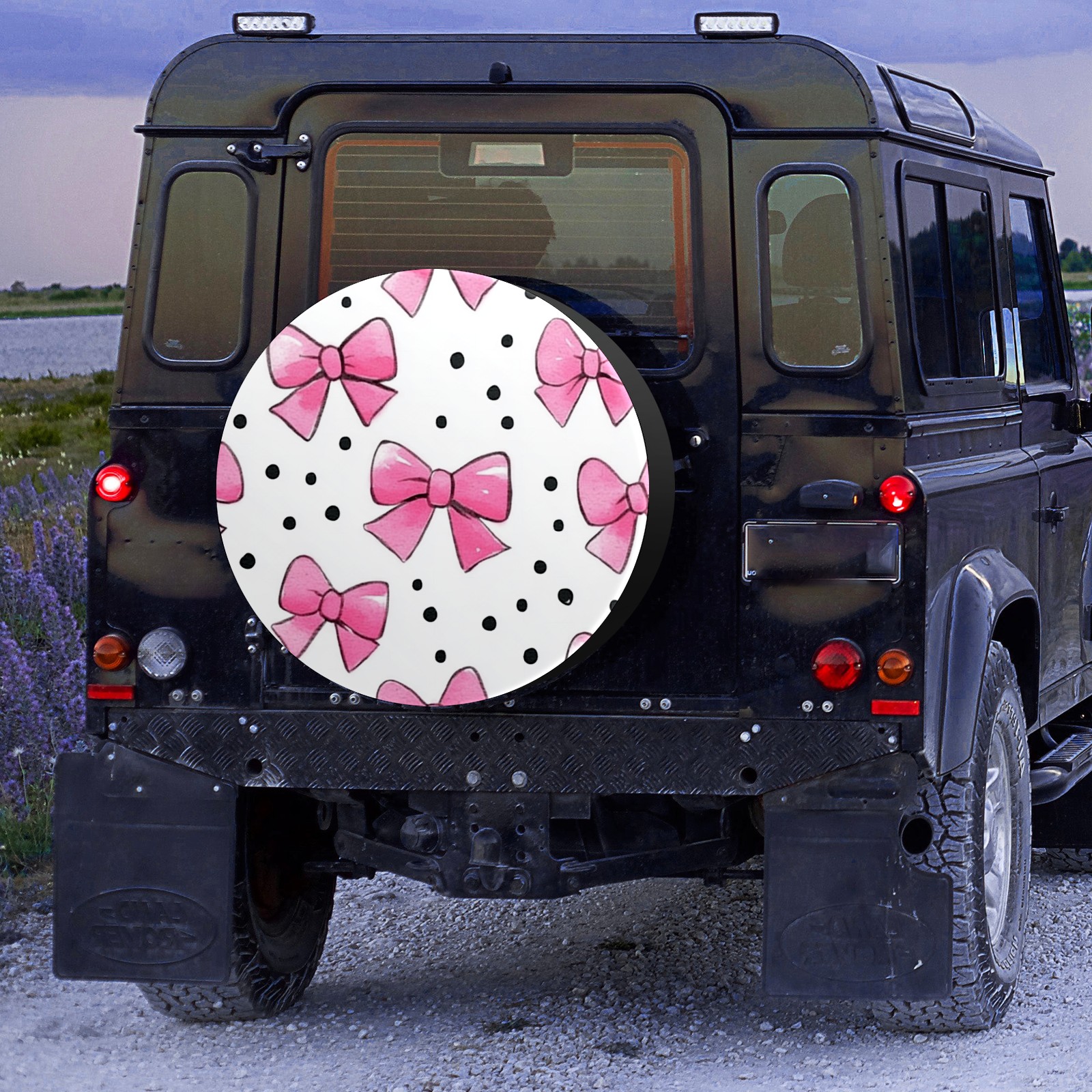 Pink Bows And Black Dots Spare Tire Cover, Waterproof Wheel Protector Universal Fits for Truck SUV RV Trailer Camper (14 Inch)