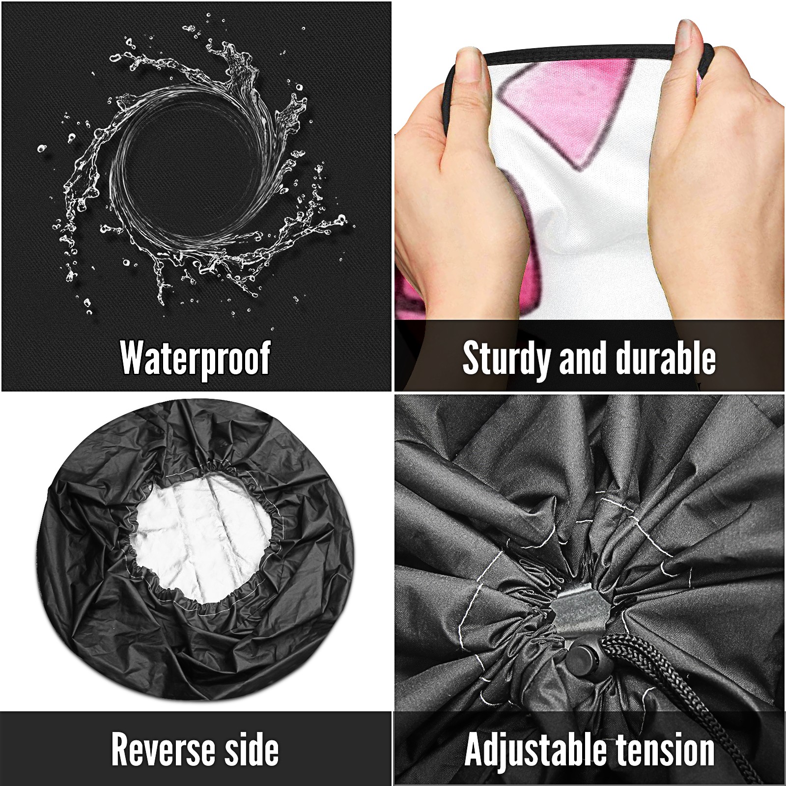 • <p>Keep your spare tire protected and your vehicle looking sharp with our universal Tire Cover. Designed with a sleek single-sided print and classic black sides, this rugged cover is made from high-quality polyester fabric that is fully waterproof. The adjustable nylon rope ensures a secure, custom fit for any tire, helping to maintain a clean and professional appearance for your vehicle.</p>
