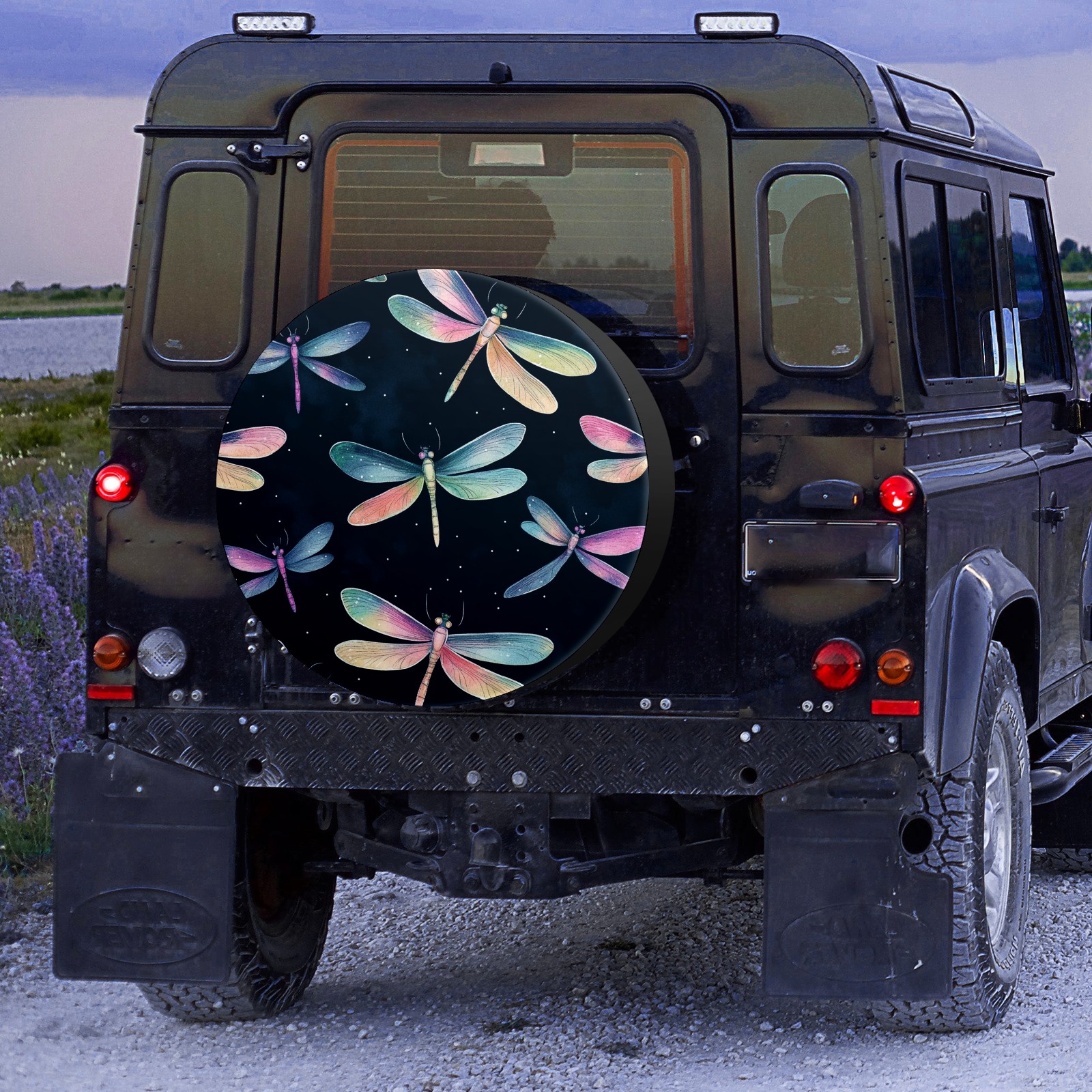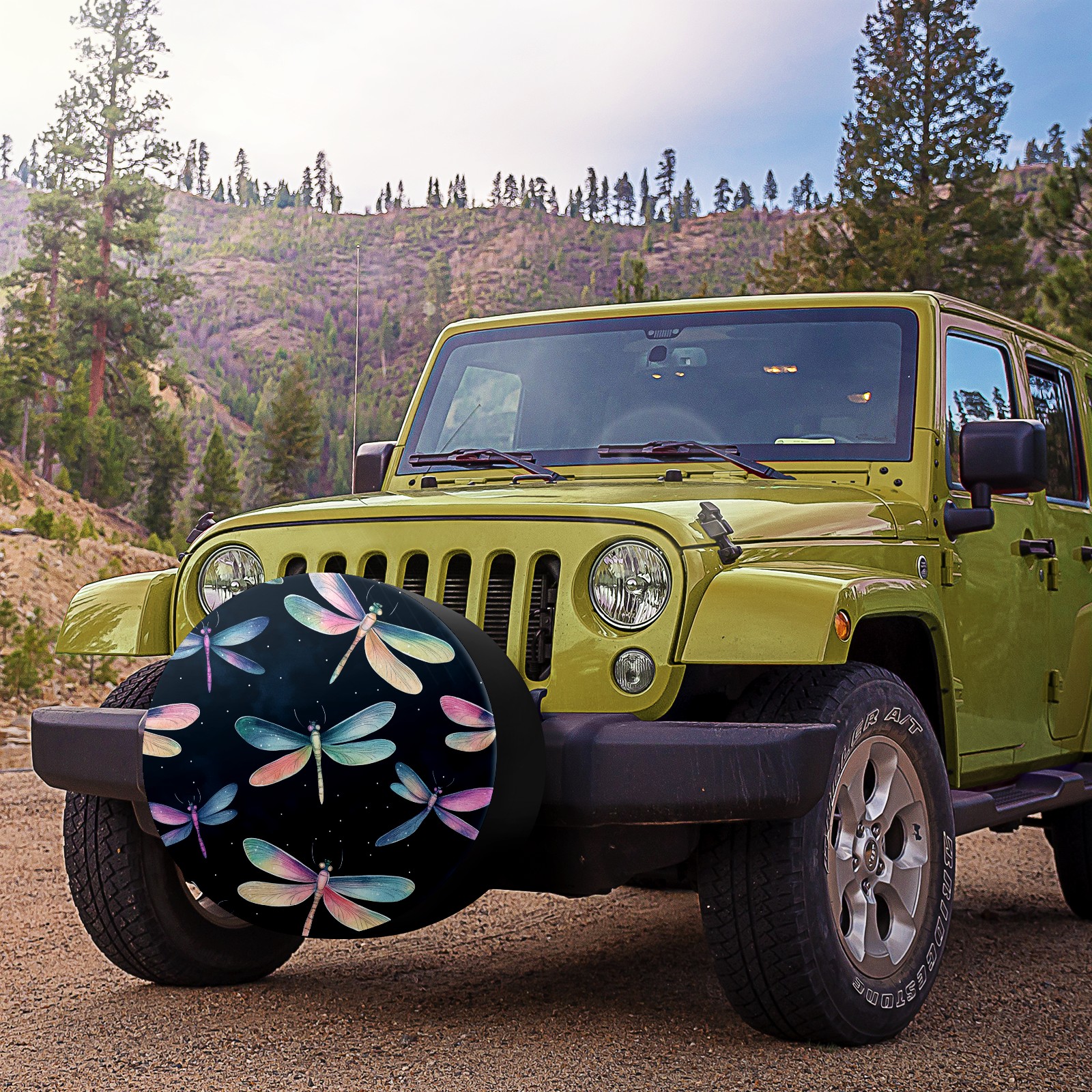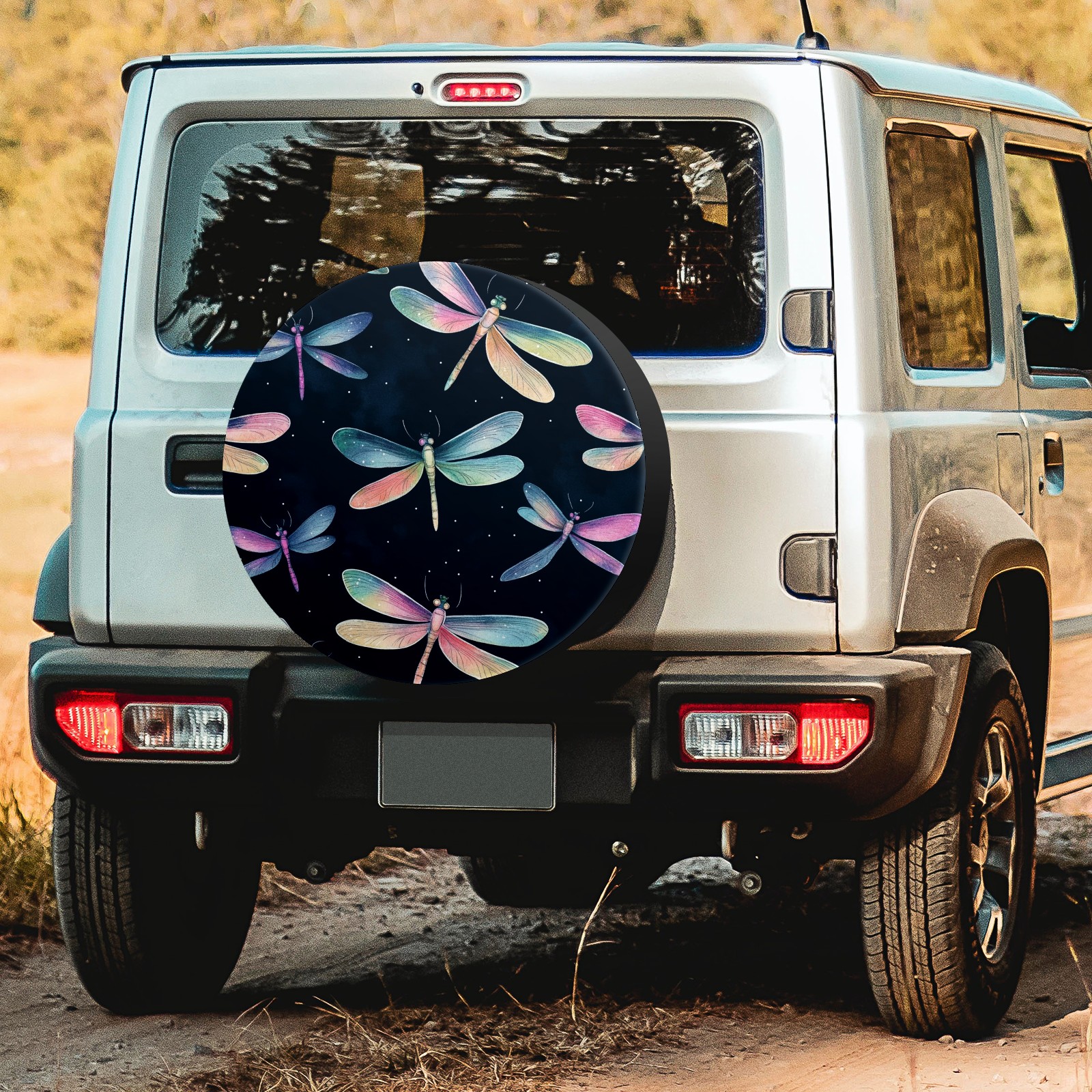 Iridescent Dragonflies Spare Tire Cover, Waterproof Wheel Protector Universal Fits for Truck SUV RV Trailer Camper (14 Inch)