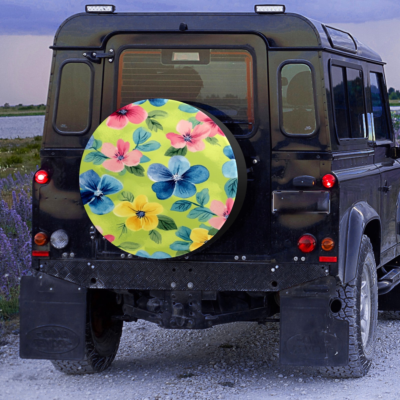Watercolor Flowers Spare Tire Cover, Waterproof Wheel Protector Universal Fits for Truck SUV RV Trailer Camper (14 Inch)