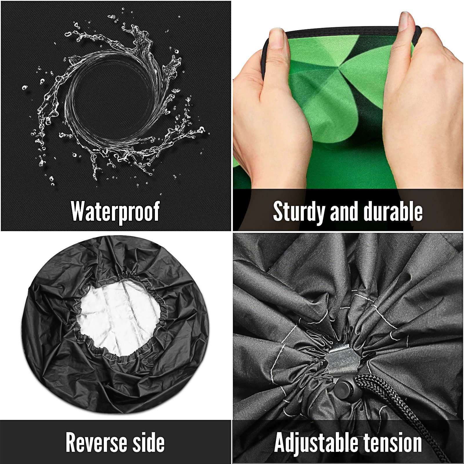 • <p>Keep your spare tire protected and your vehicle looking sharp with our universal Tire Cover. Designed with a sleek single-sided print and classic black sides, this rugged cover is made from high-quality polyester fabric that is fully waterproof. The adjustable nylon rope ensures a secure, custom fit for any tire, helping to maintain a clean and professional appearance for your vehicle.</p>