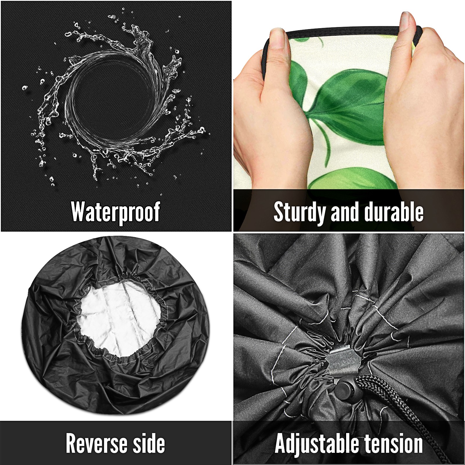 • <p>Keep your spare tire protected and your vehicle looking sharp with our universal Tire Cover. Designed with a sleek single-sided print and classic black sides, this rugged cover is made from high-quality polyester fabric that is fully waterproof. The adjustable nylon rope ensures a secure, custom fit for any tire, helping to maintain a clean and professional appearance for your vehicle.</p>