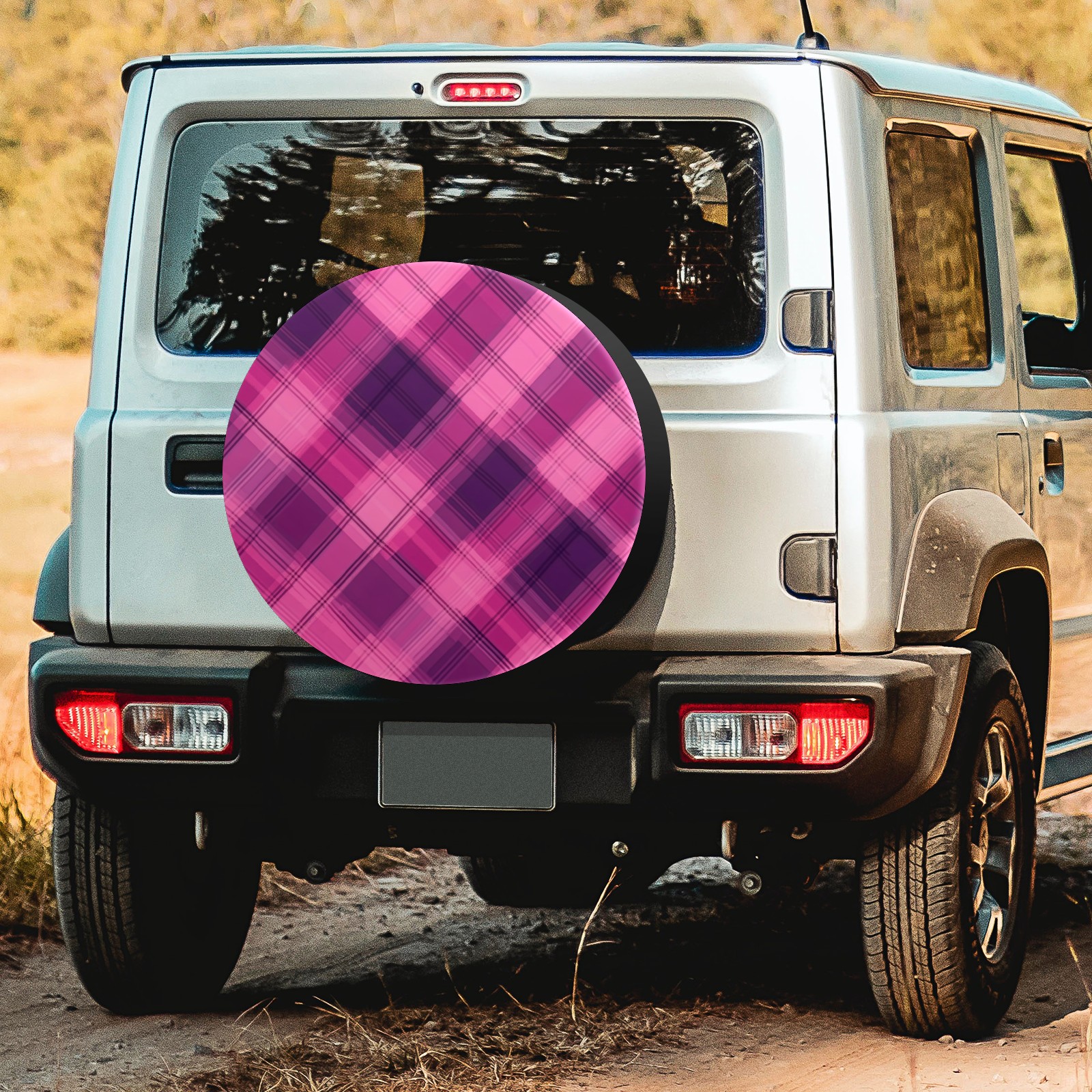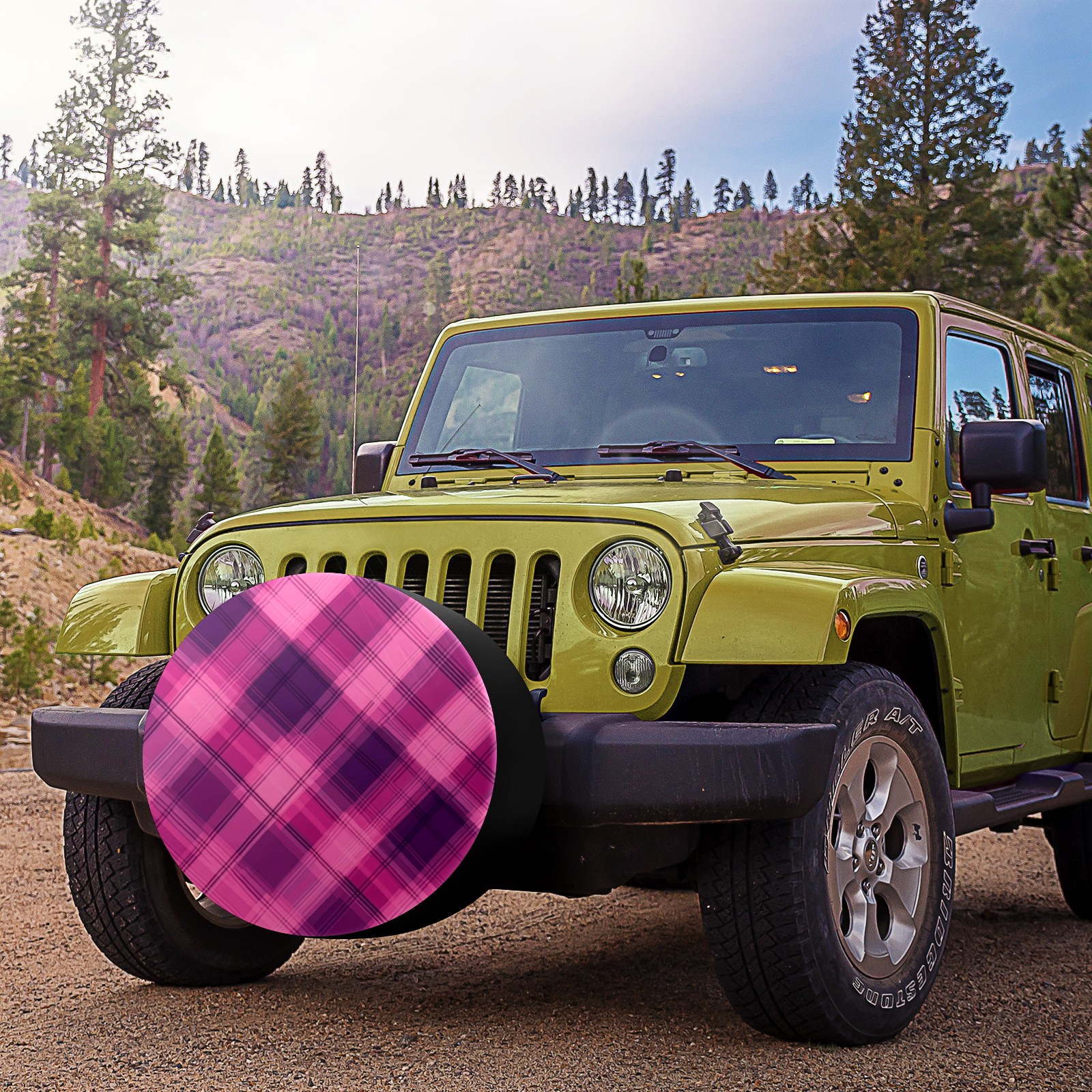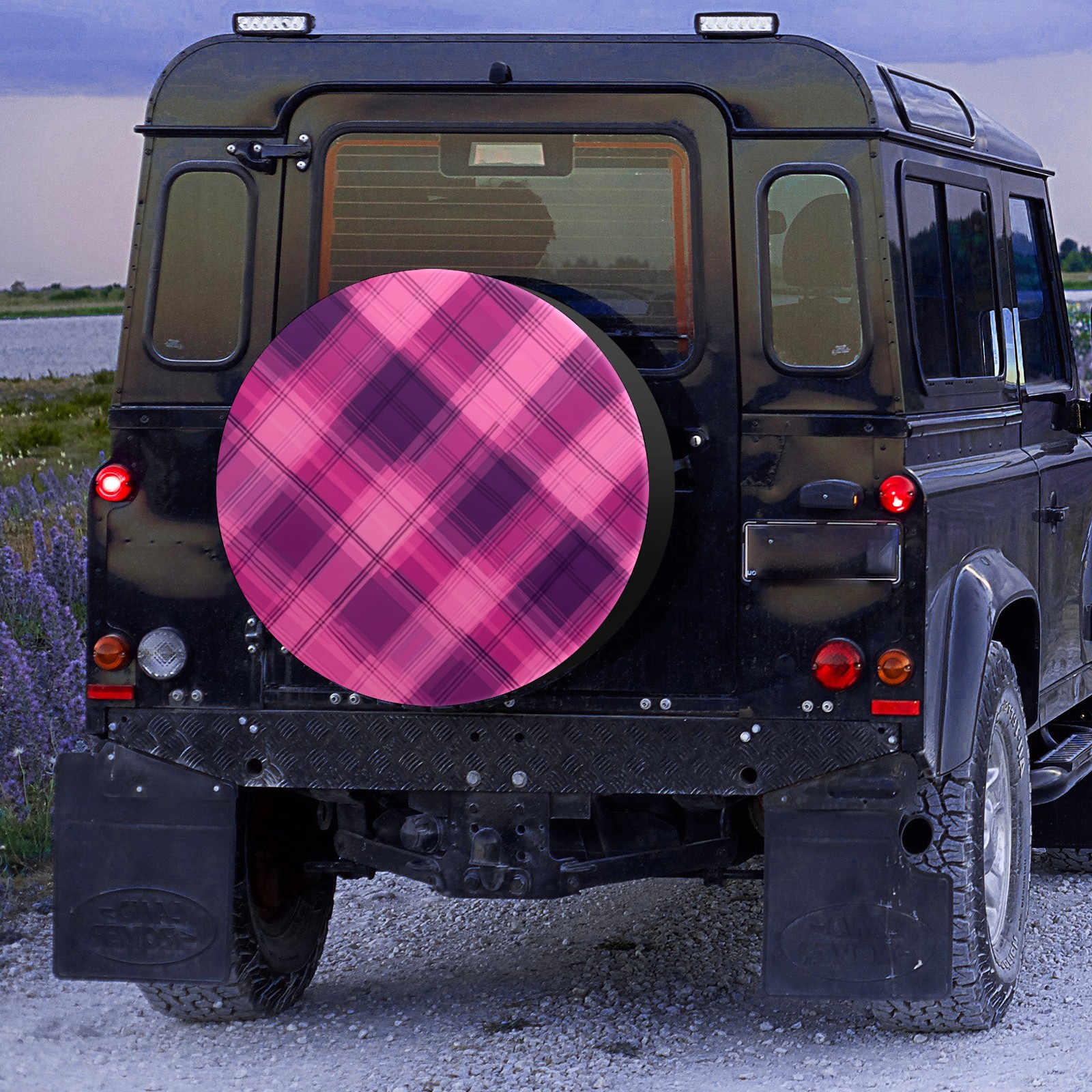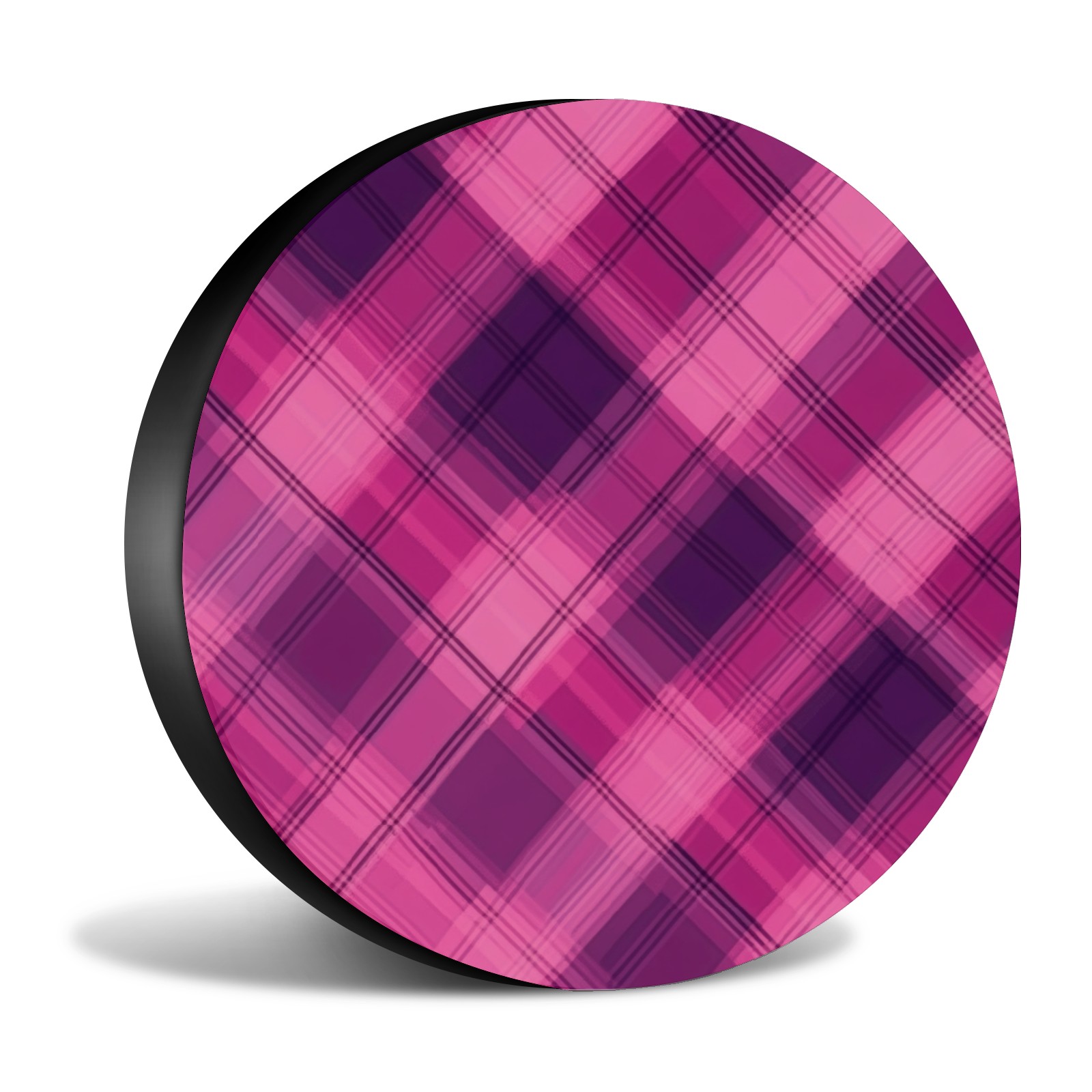 Pink And Purple Checkered Spare Tire Cover, Waterproof Wheel Protector Universal Fits for Truck SUV RV Trailer Camper (14 Inch)