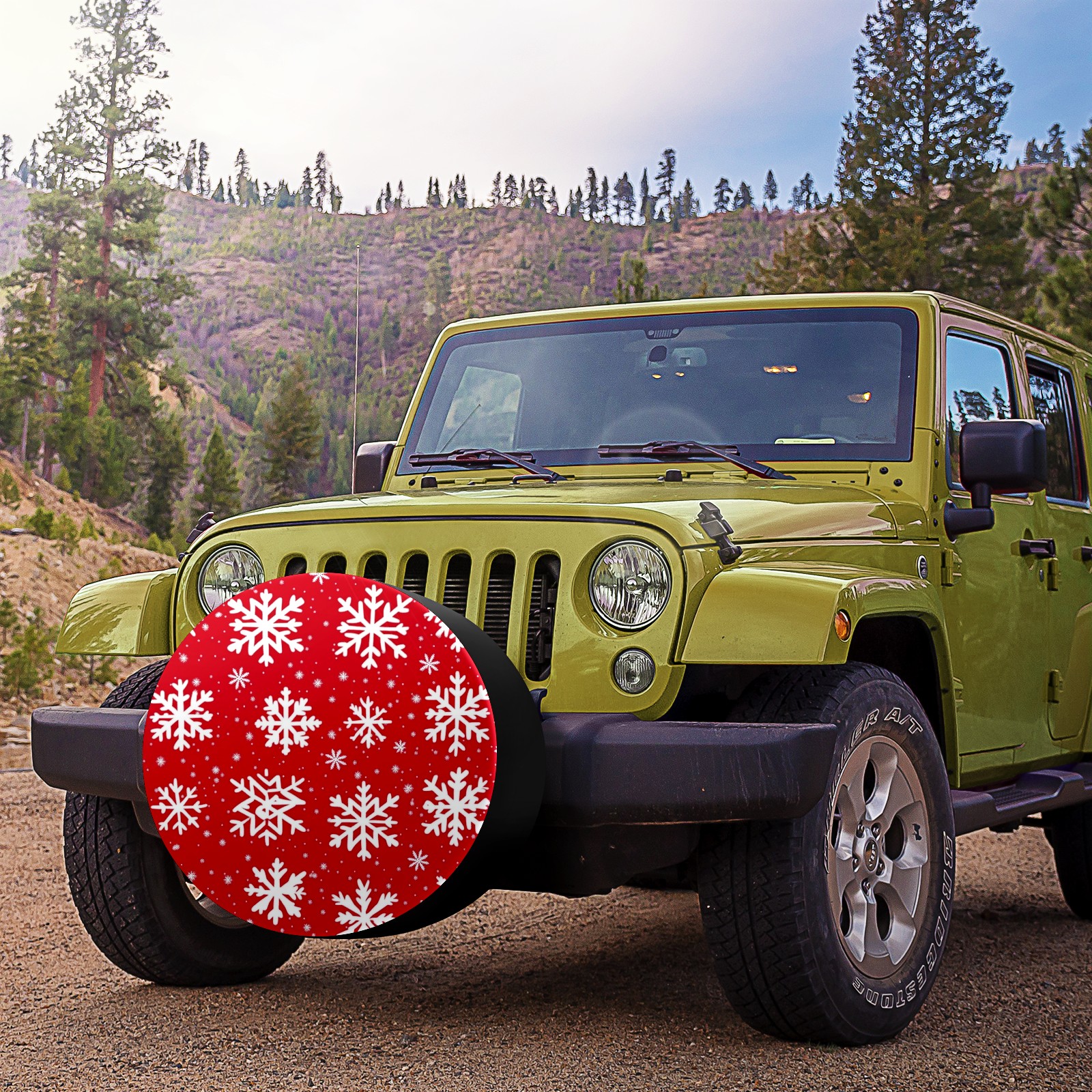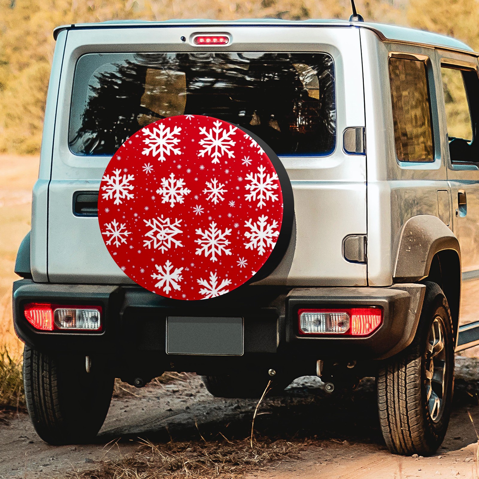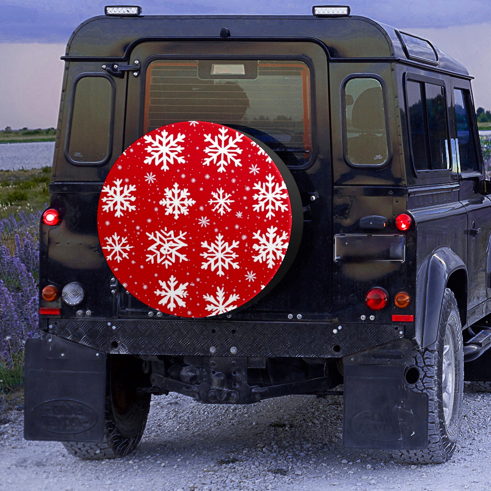 White Snowflakes Spare Tire Cover, Waterproof Wheel Protector Universal Fits for Truck SUV RV Trailer Camper (14 Inch)