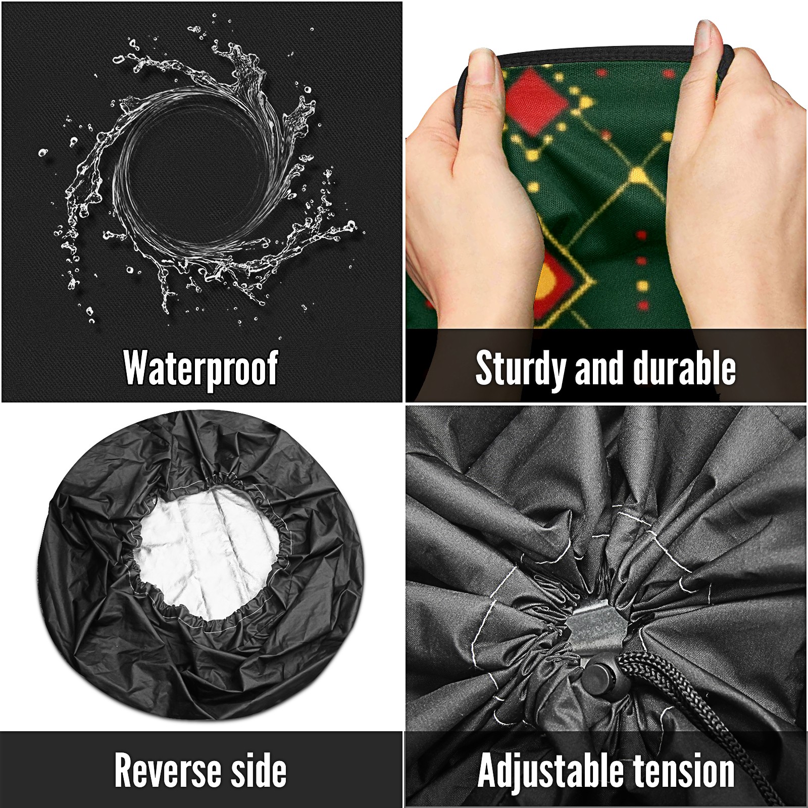 • <p>Keep your spare tire protected and your vehicle looking sharp with our universal Tire Cover. Designed with a sleek single-sided print and classic black sides, this rugged cover is made from high-quality polyester fabric that is fully waterproof. The adjustable nylon rope ensures a secure, custom fit for any tire, helping to maintain a clean and professional appearance for your vehicle.</p>