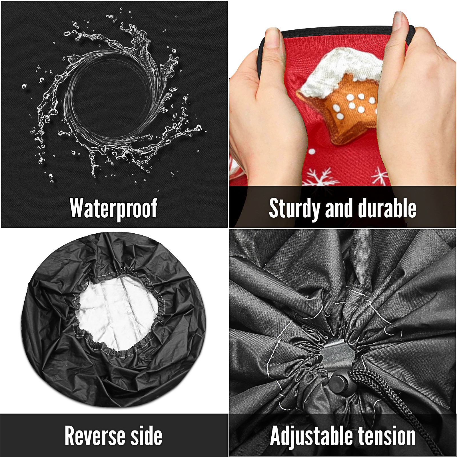 • <p>Keep your spare tire protected and your vehicle looking sharp with our universal Tire Cover. Designed with a sleek single-sided print and classic black sides, this rugged cover is made from high-quality polyester fabric that is fully waterproof. The adjustable nylon rope ensures a secure, custom fit for any tire, helping to maintain a clean and professional appearance for your vehicle.</p>