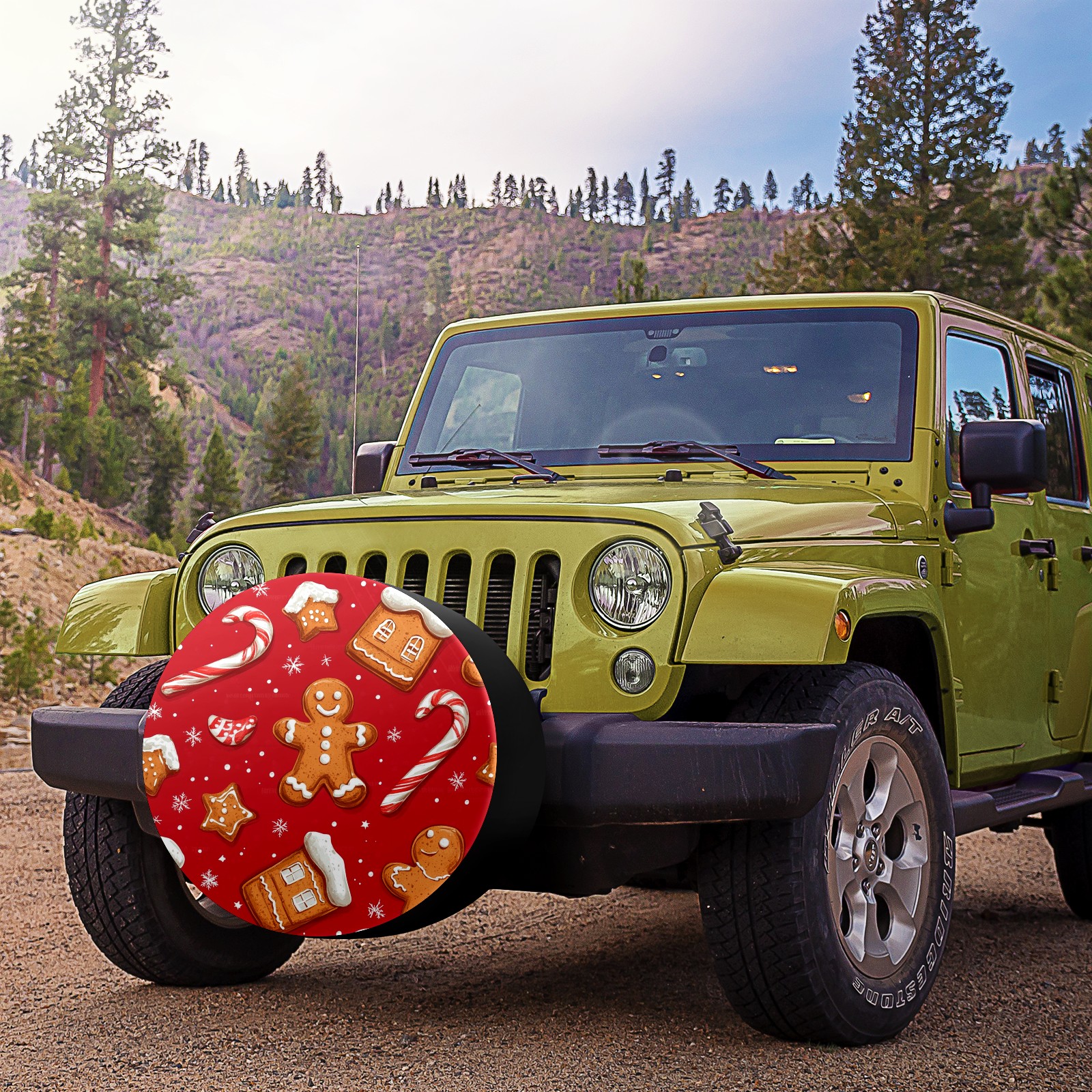 Cookies And Candy Cane Spare Tire Cover, Waterproof Wheel Protector Universal Fits for Truck SUV RV Trailer Camper (14 Inch)