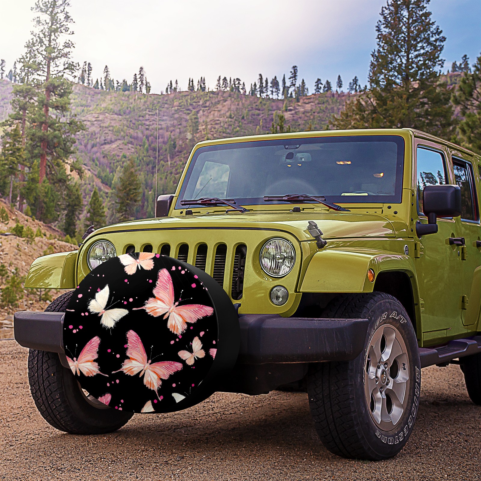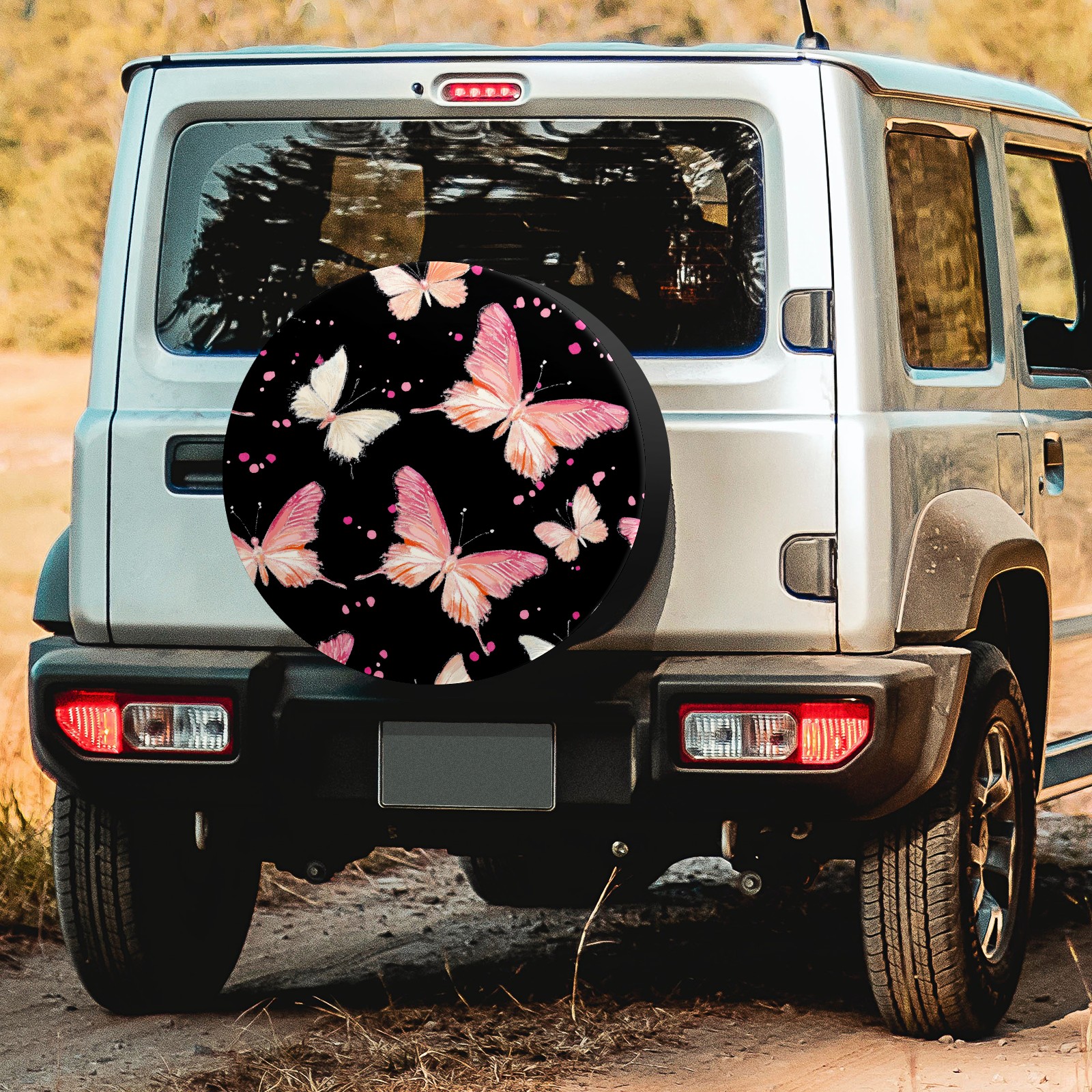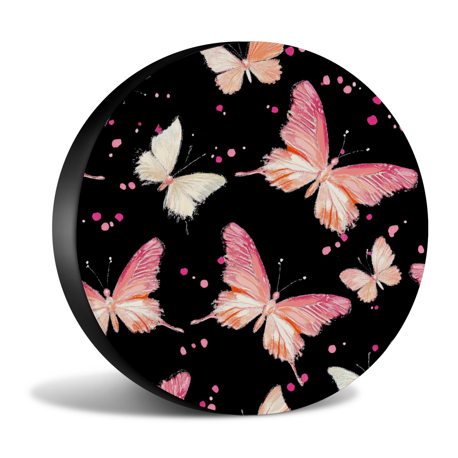 Pink And White Butterflies Spare Tire Cover, Waterproof Wheel Protector Universal Fits for Truck SUV RV Trailer Camper (14 Inch)